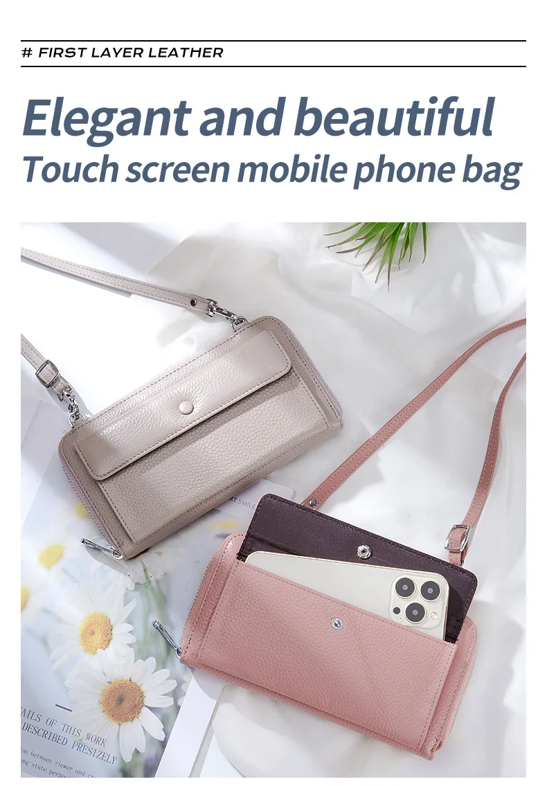 Genuine Leather Mini Touch Screen Phone Bag Ladies Crossbody Bag Mobile Phone Purse Handbag Women Casual Small Shoulder Bag
