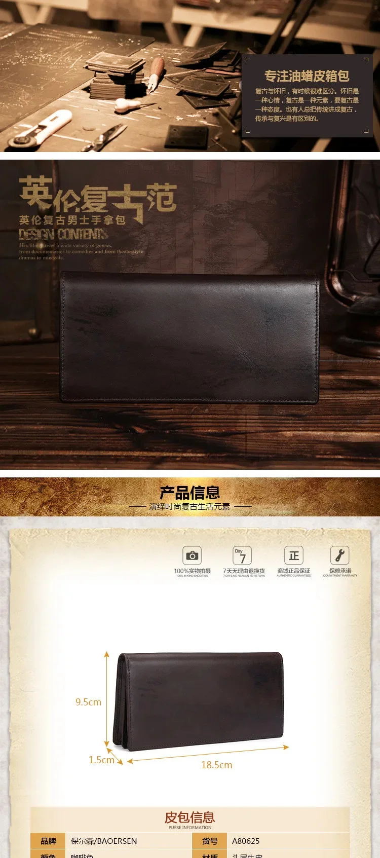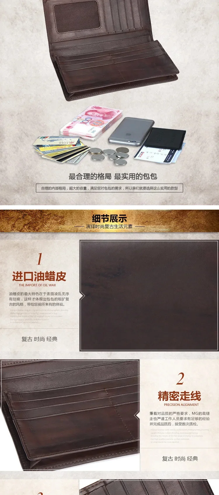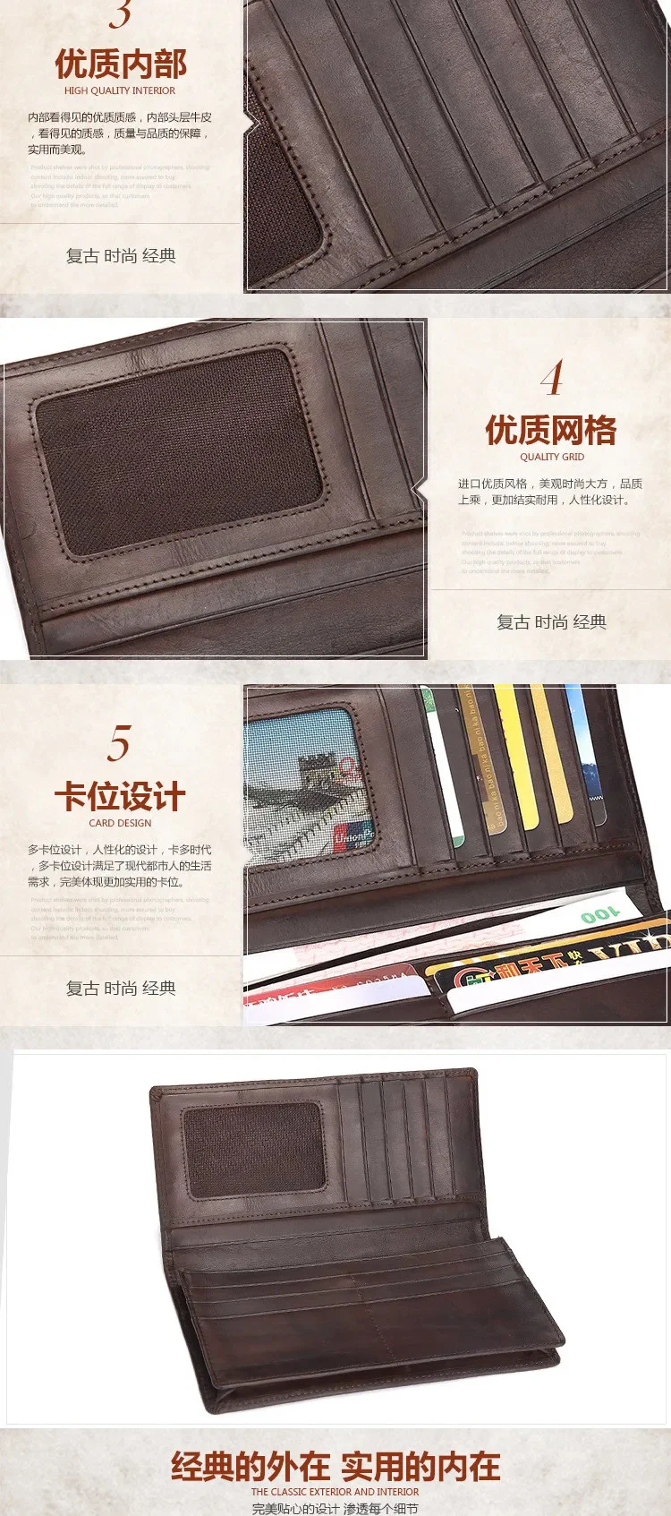 Genuine Leather Wallet Long Purse for Men Designer Casual Male Real Cowhide Bifold Coin Pocket Card Holder Clutch Money Bag