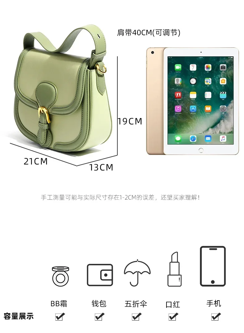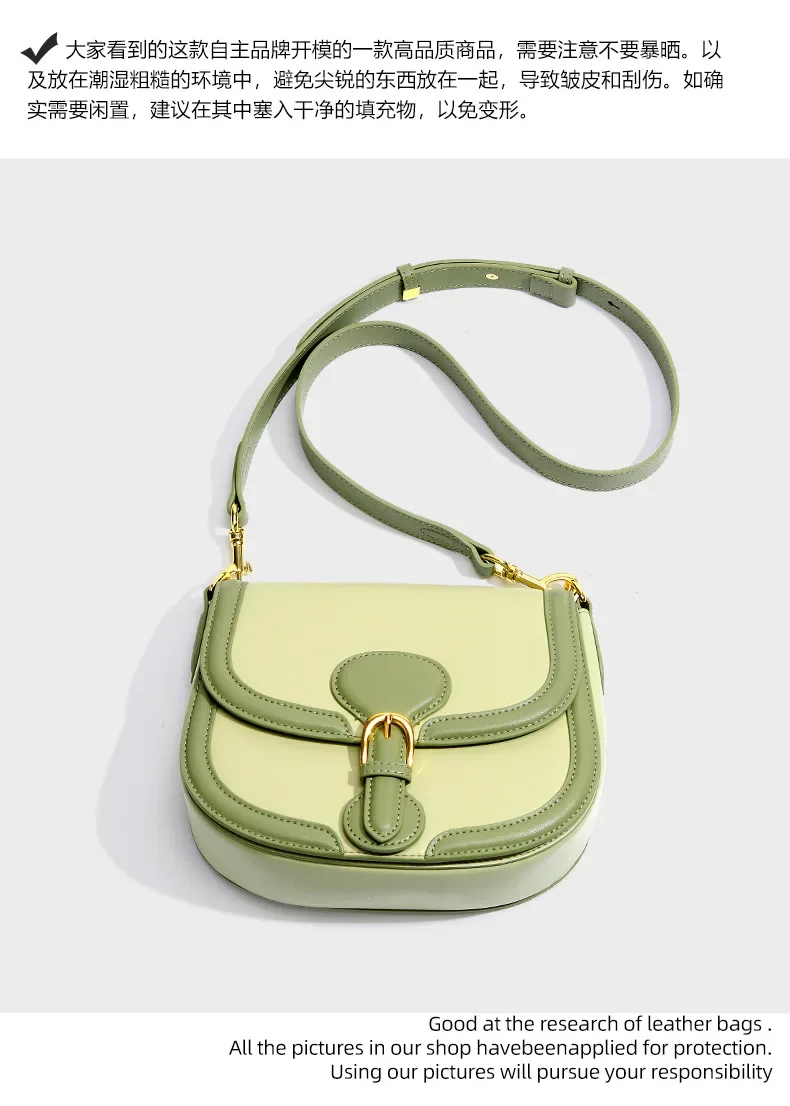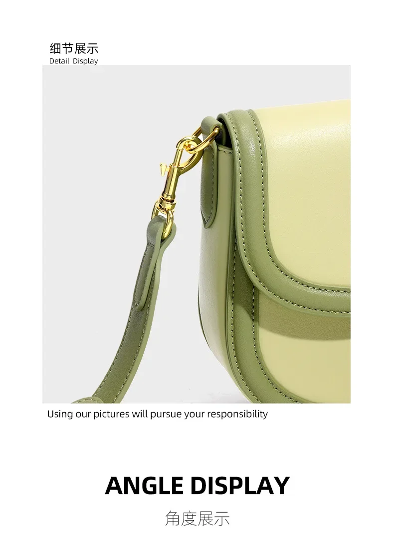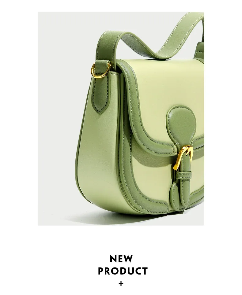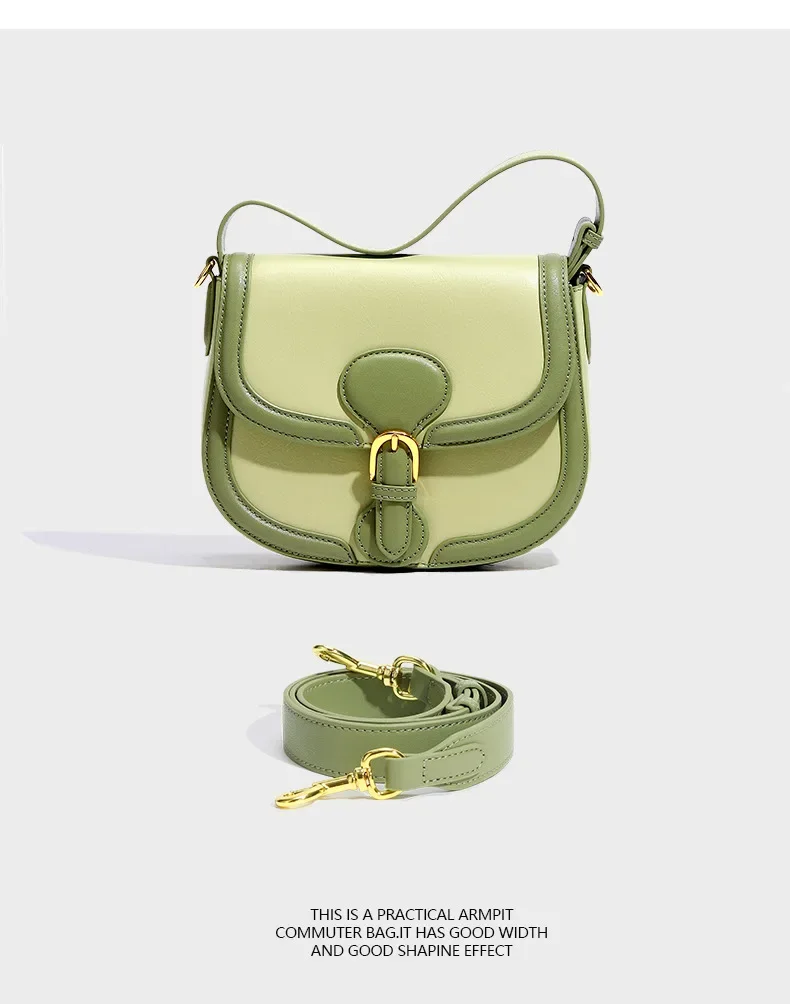 Genuine Leather Women's Bag 2024 New Olive Green Niche Simple Cowhide Bag Shoulder Luxury Designer Handbag Crossbody Bags