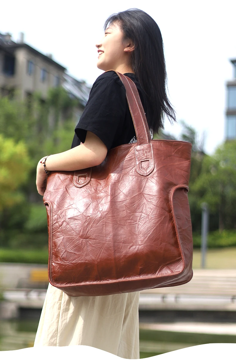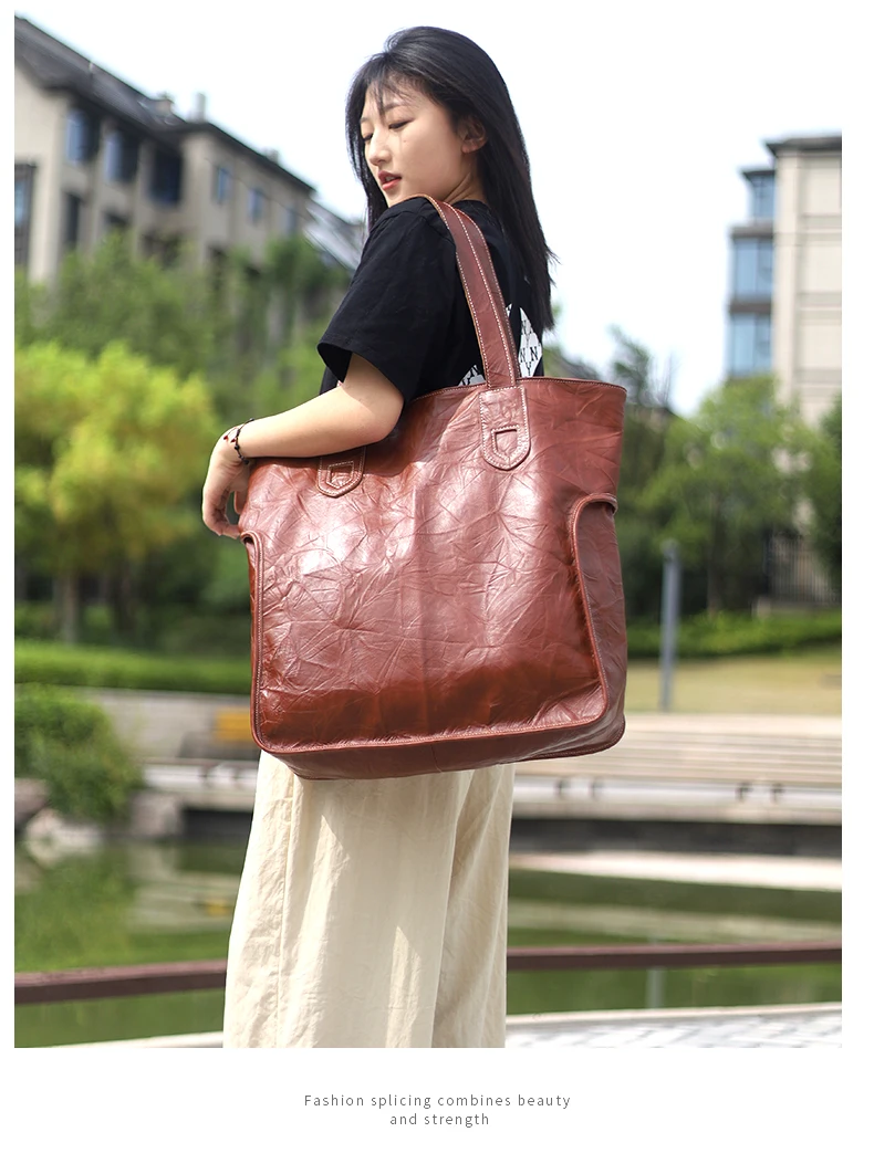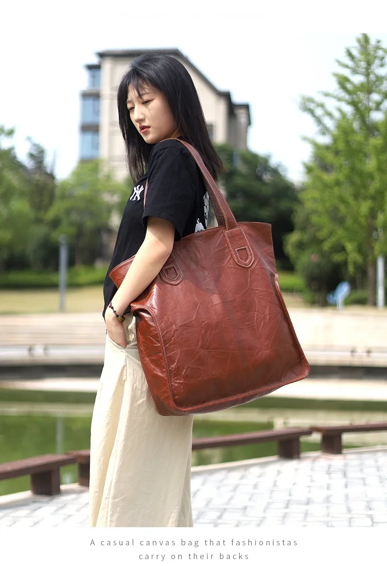 Style: shoulder bag Genuine Leather Women's Tote Bag Plus Size Large Capacity Handbags 2023 New Travel Commuter Bag Real Soft Schoolbags