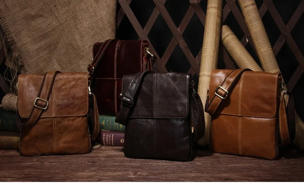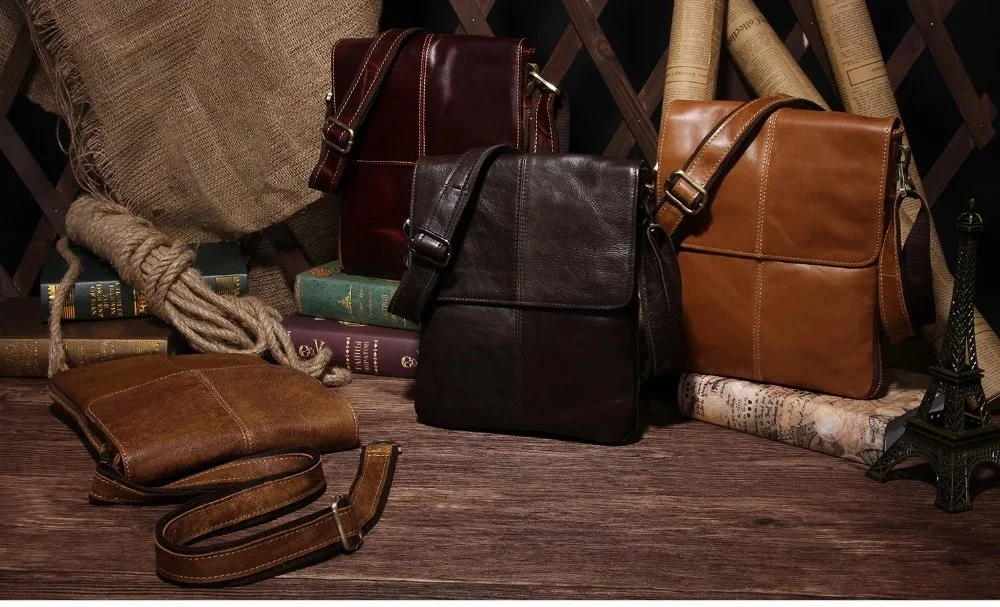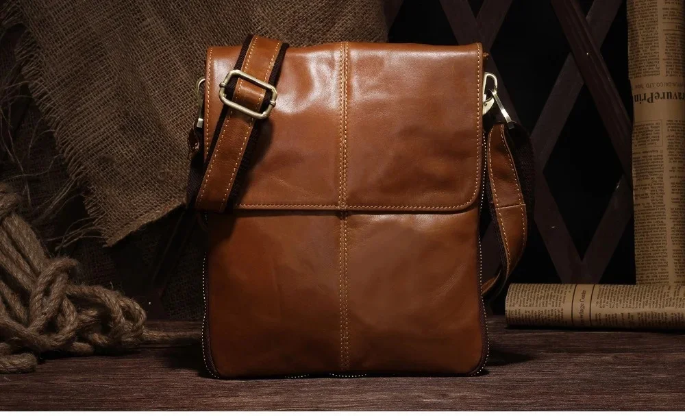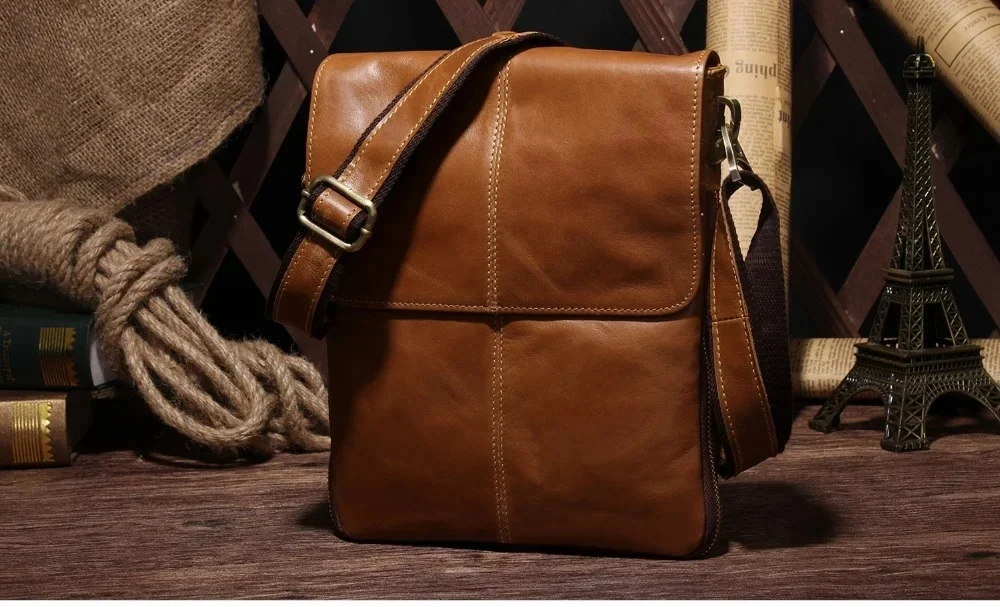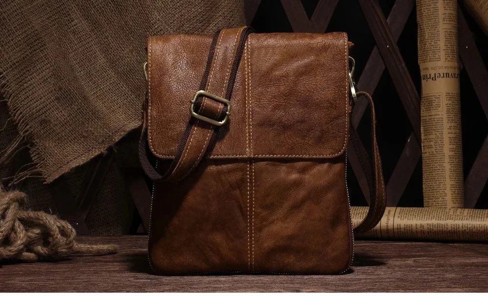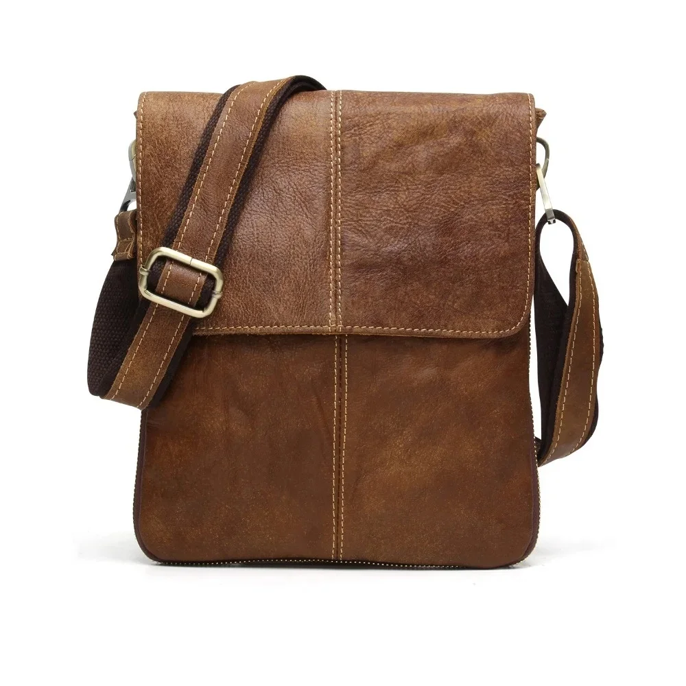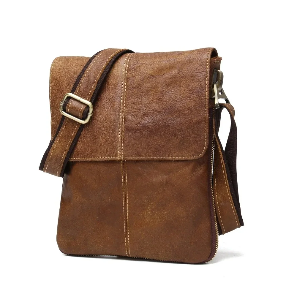 Genuine s Male Cowhide Flap Casual Shoulder Crossbody bag Handbags Messenger Small Men Leather Bag 8613