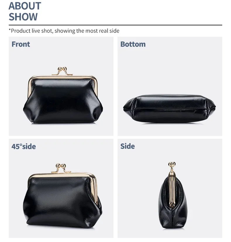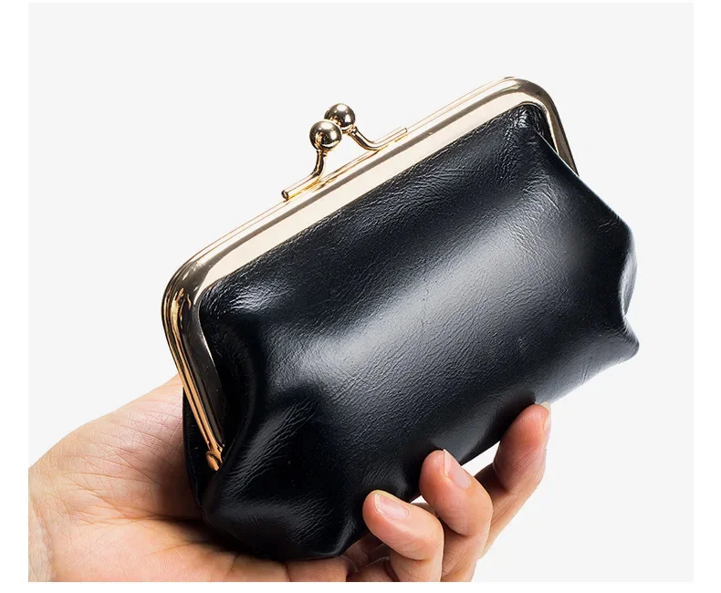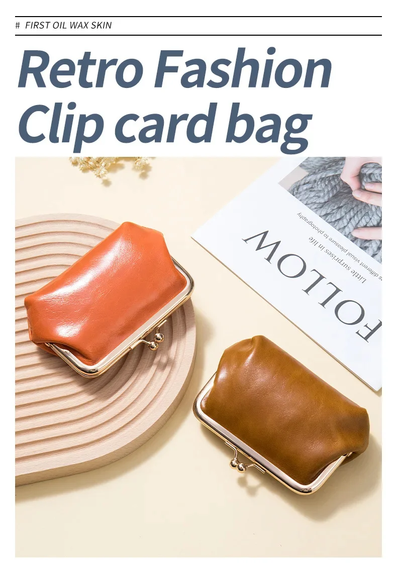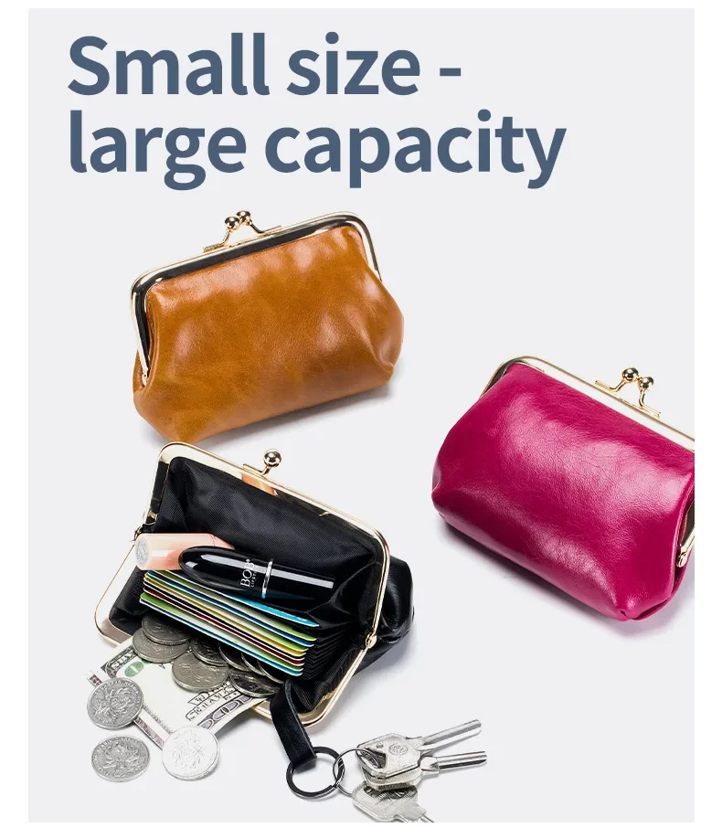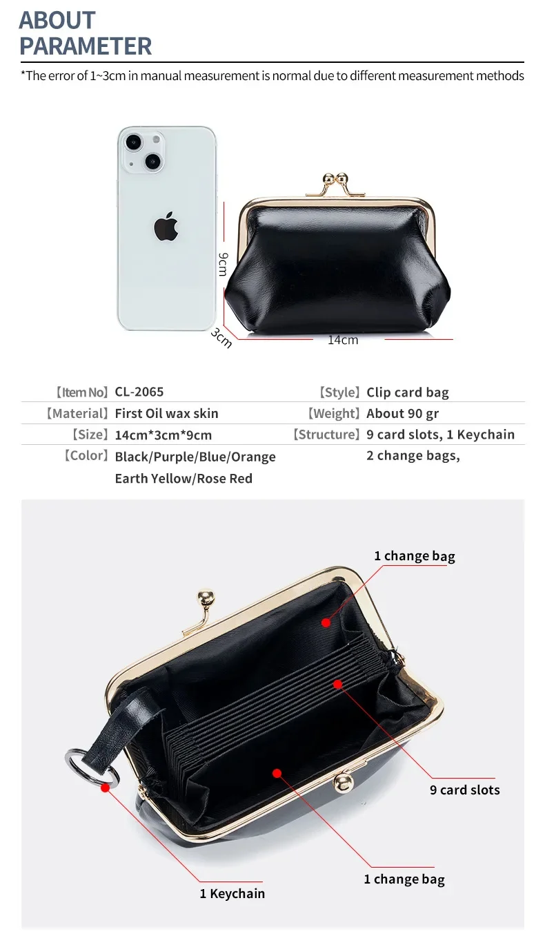 Genuine Wallet Women's Multi-card Slot Card Holder Women Oil Wax Leather Brand Metal Frame Mini Coin Purse with Key Ring