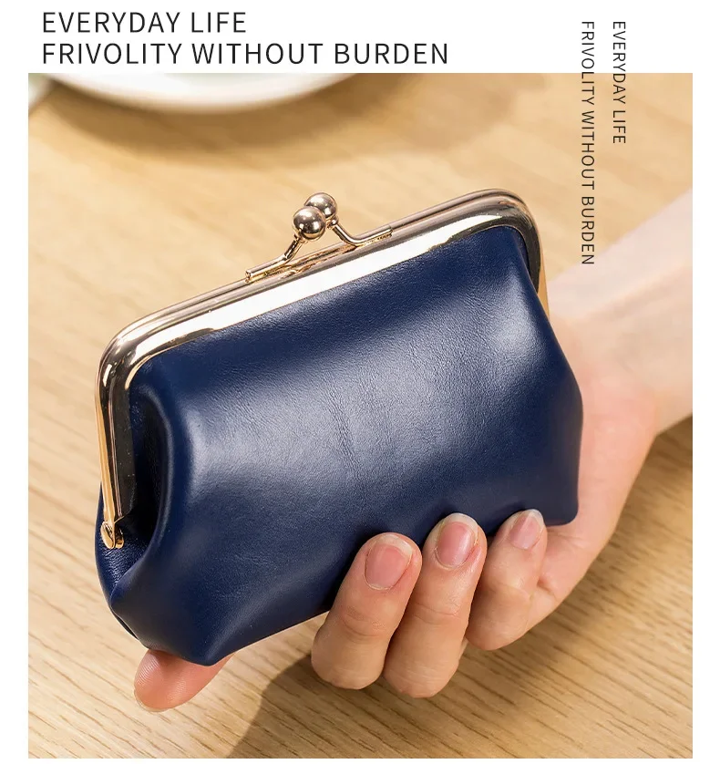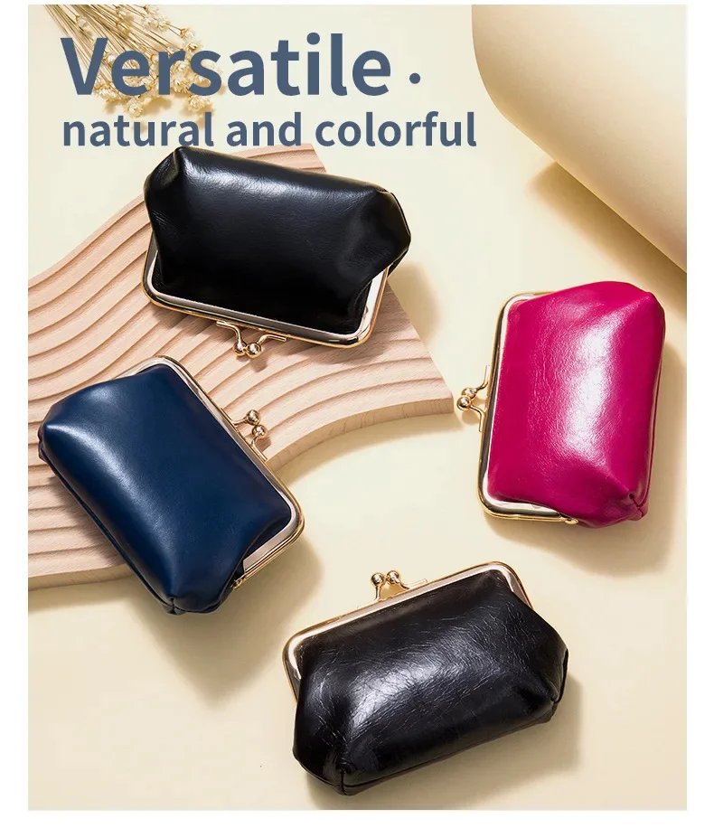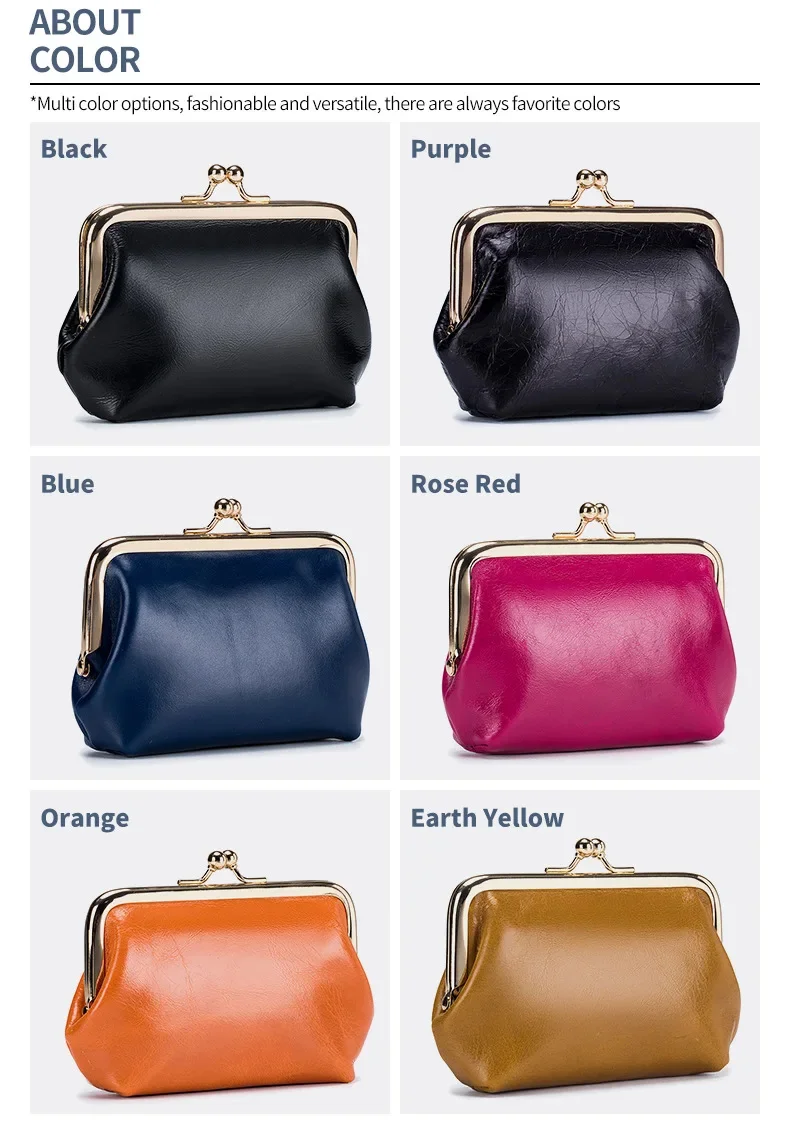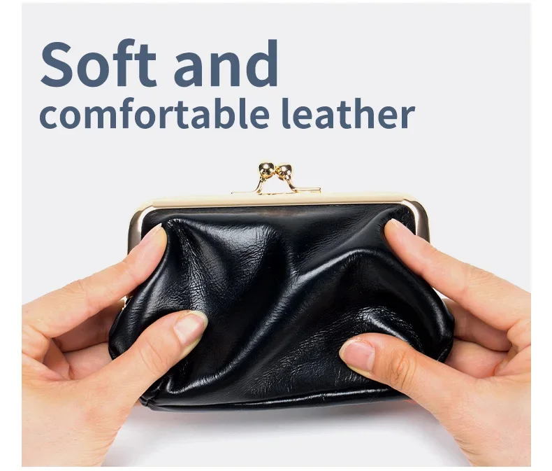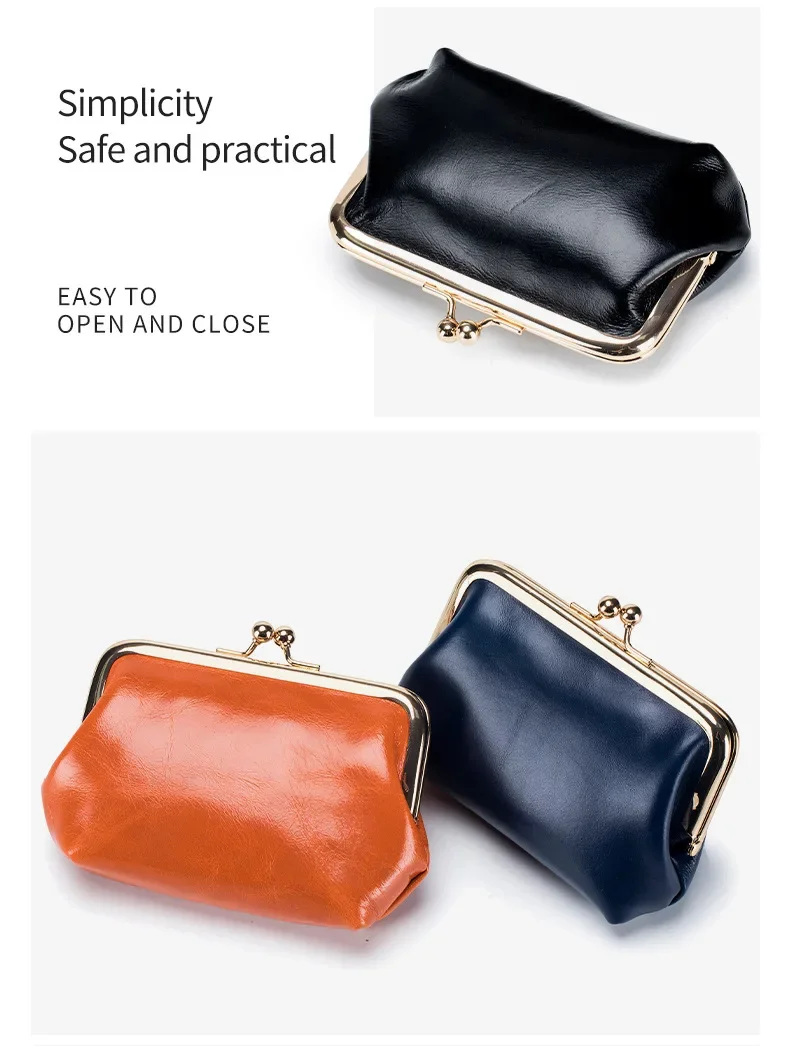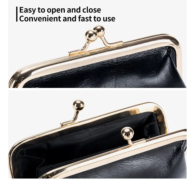 Genuine Wallet Women's Multi-card Slot Card Holder Women Oil Wax Leather Brand Metal Frame Mini Coin Purse with Key Ring