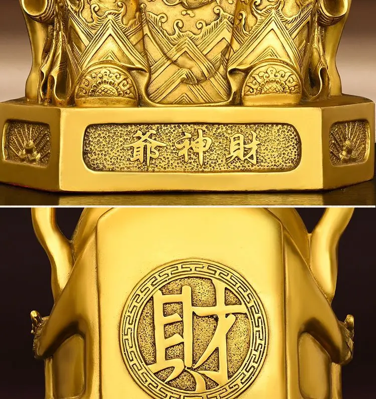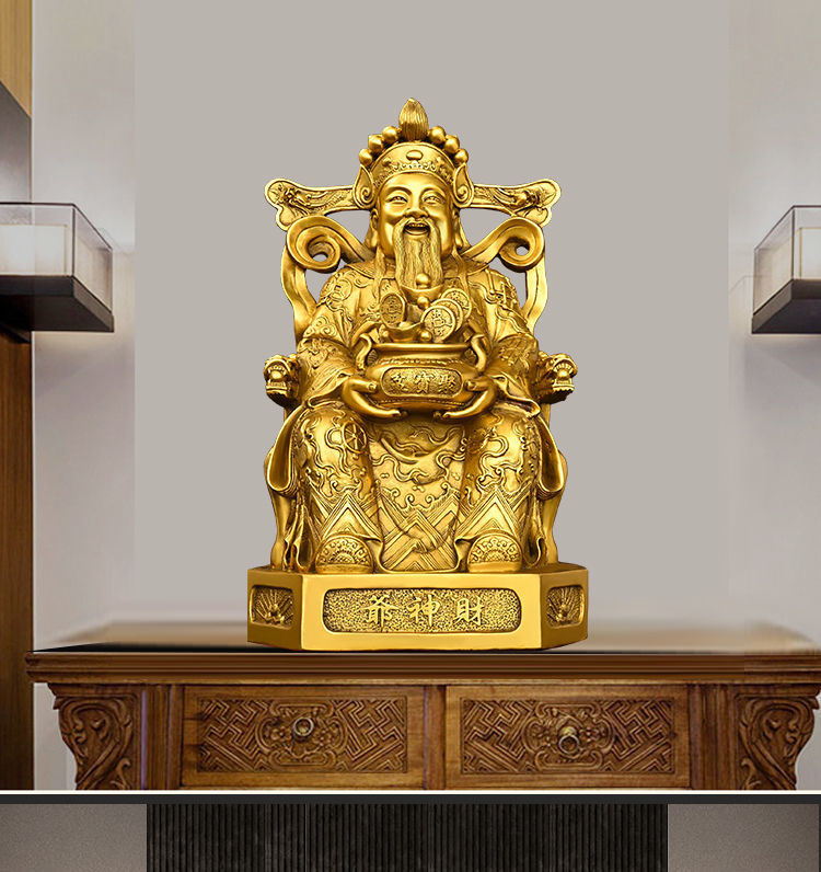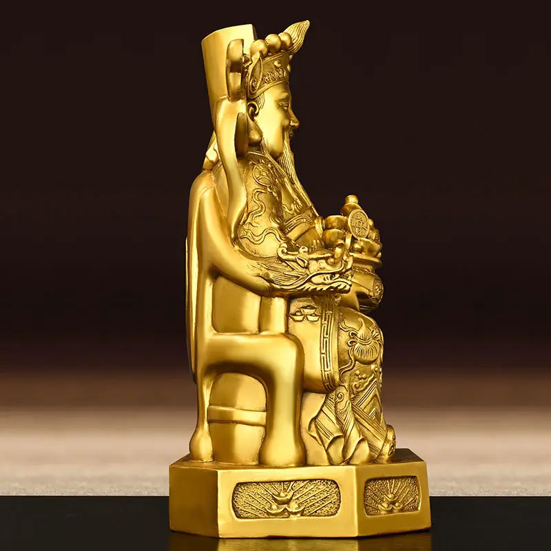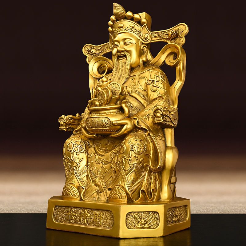 God of Wealth Ornaments All Copper Home Study Office Desktop Decorative Pot of Treasures Wen Statues Sculptures