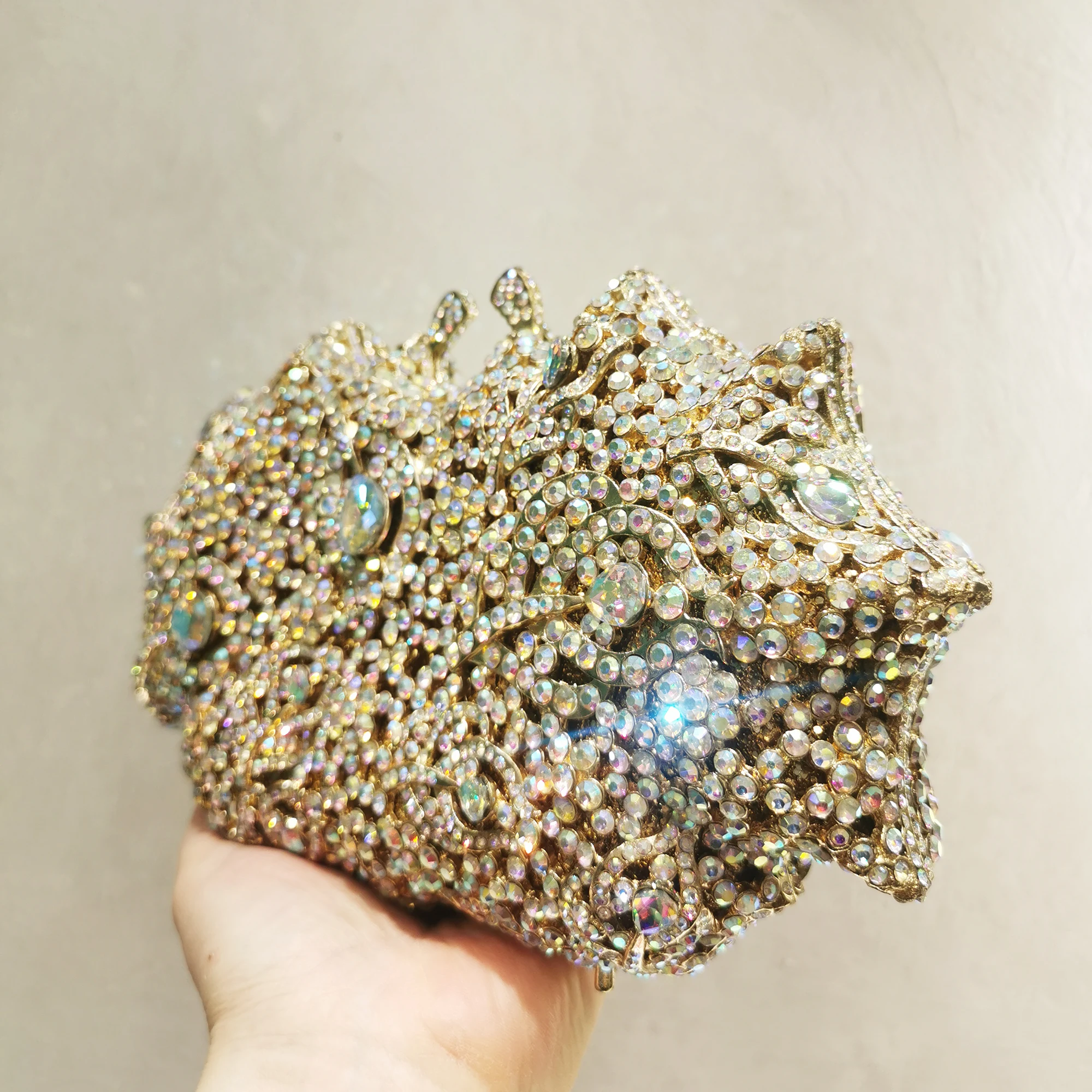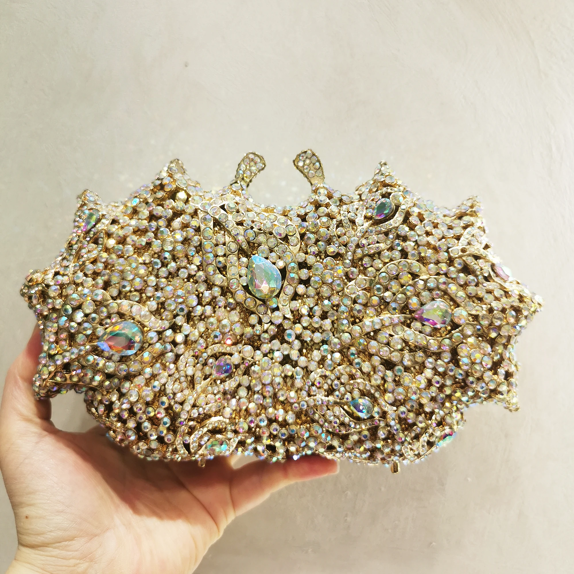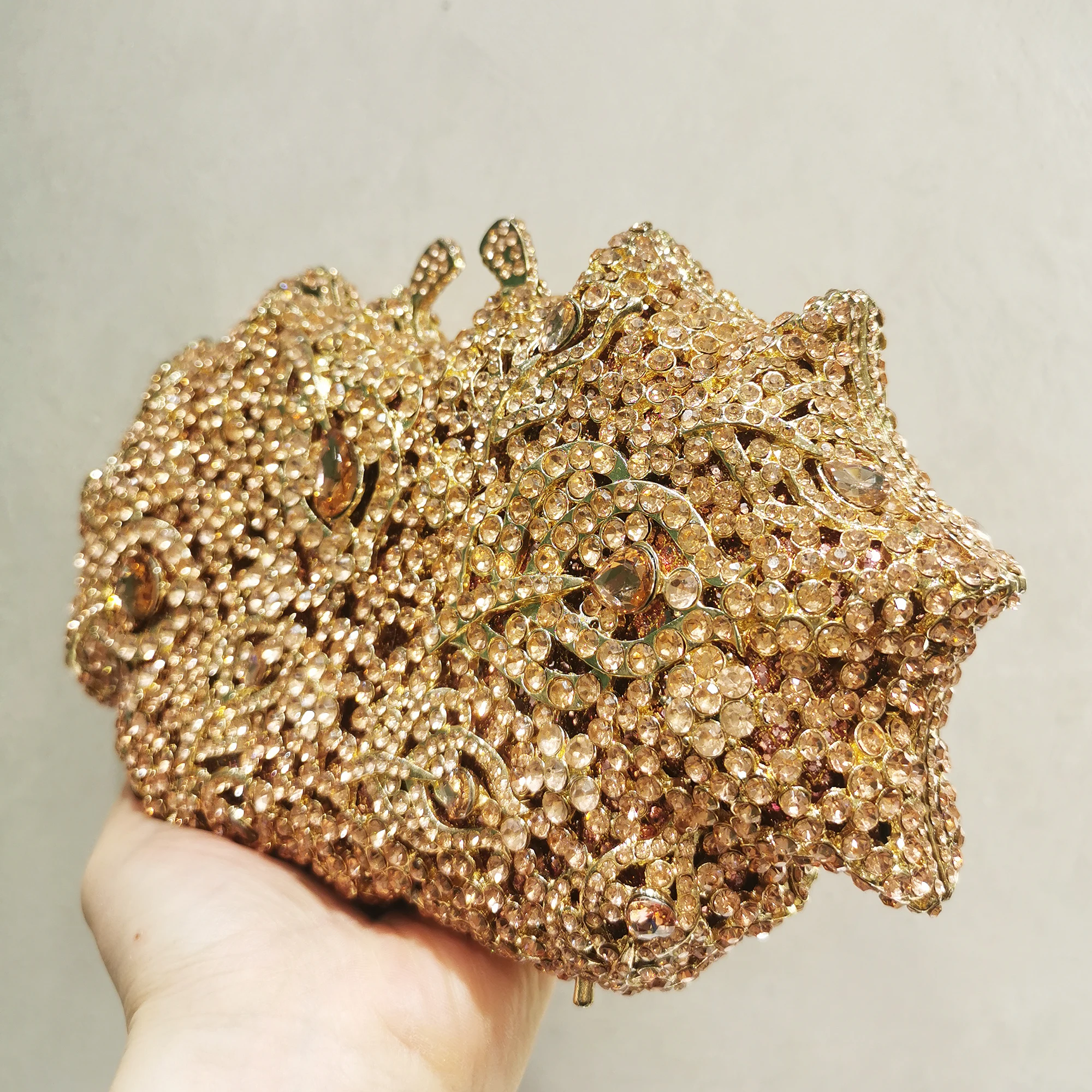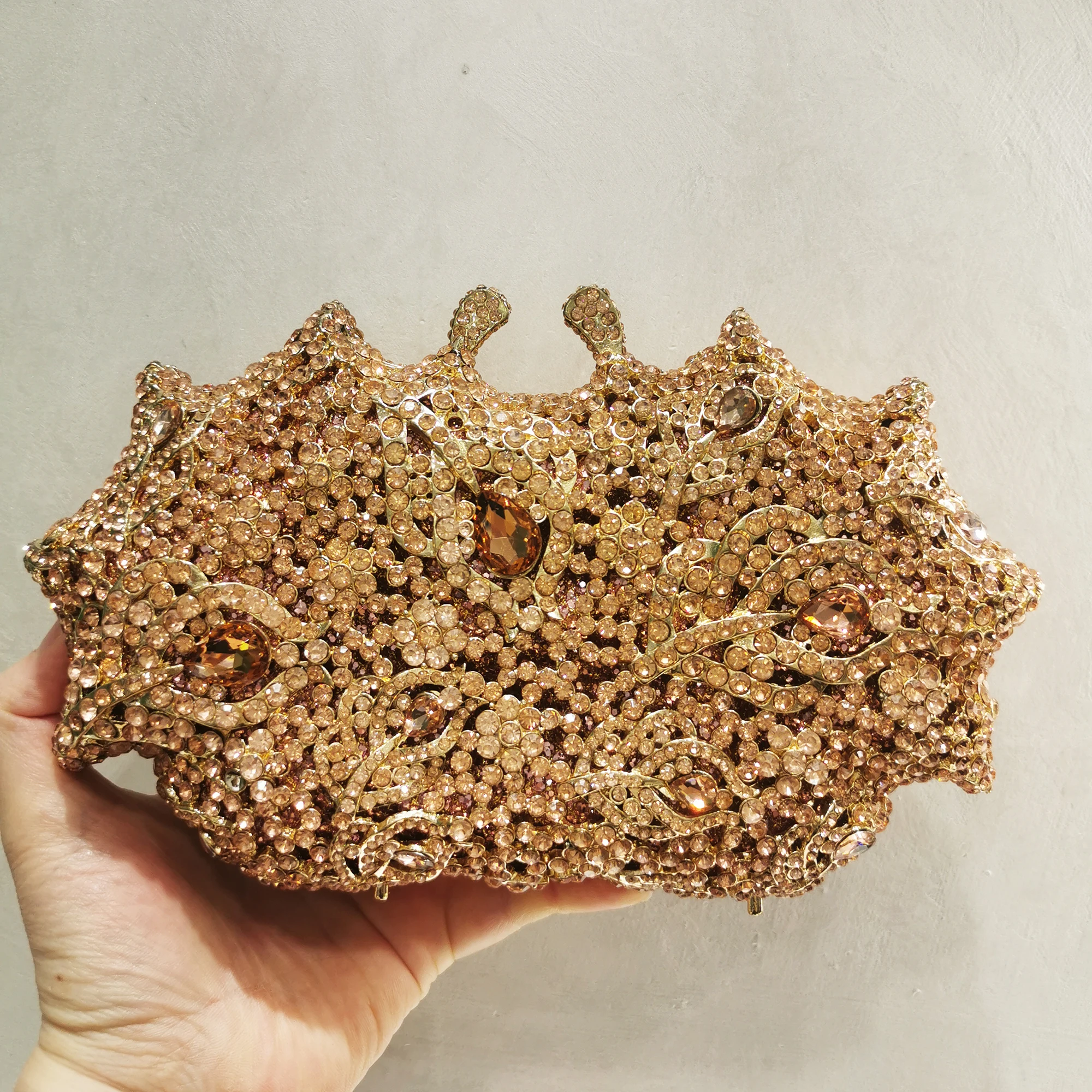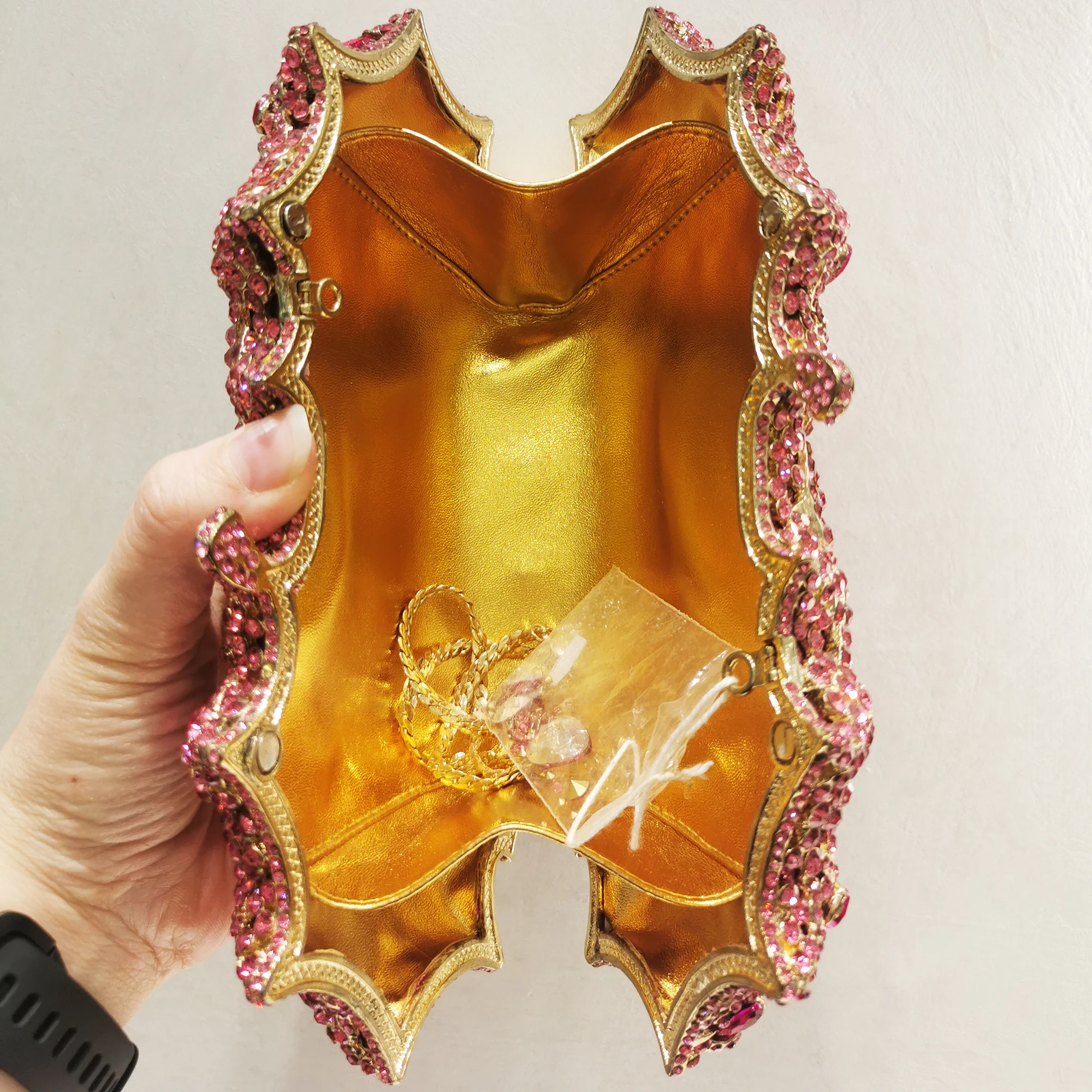 Gold Pink Champagne Floral Stone Clutch Woman Diamond Evening Purse Bridal Dinner Party Crystal Purse Wedding Flower Handbag