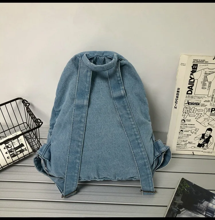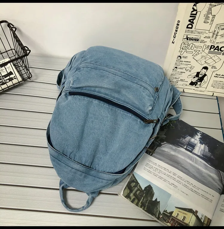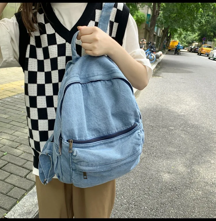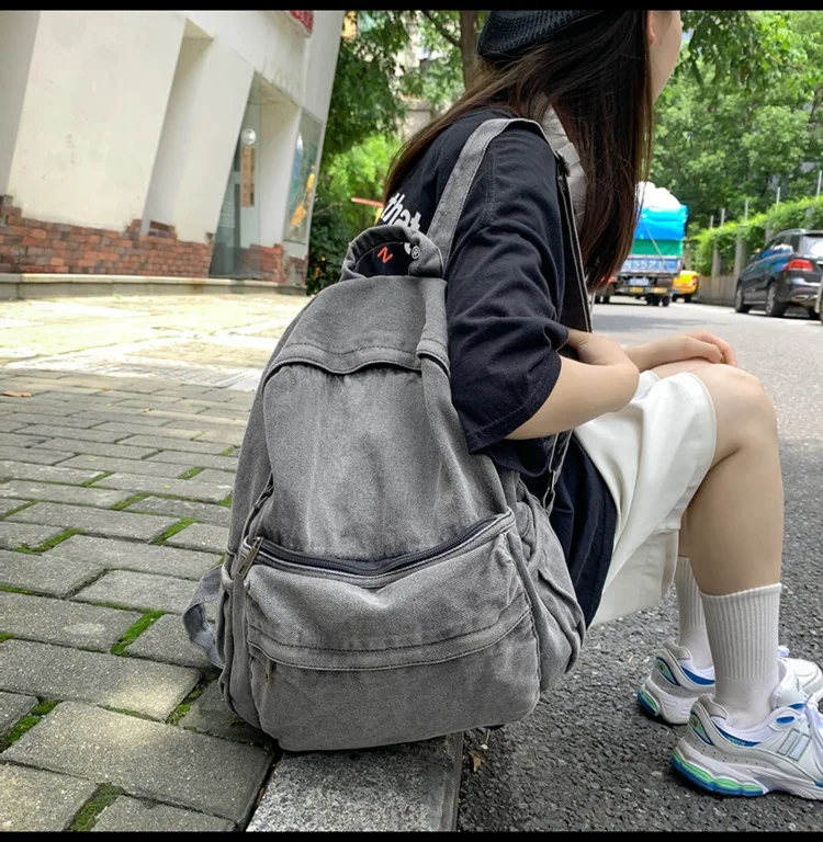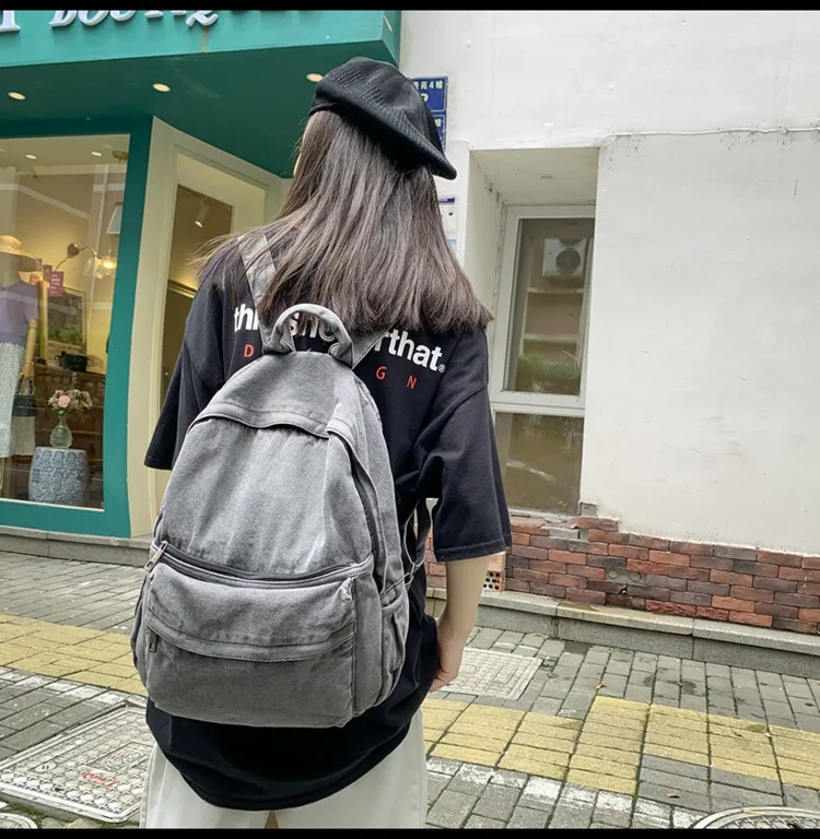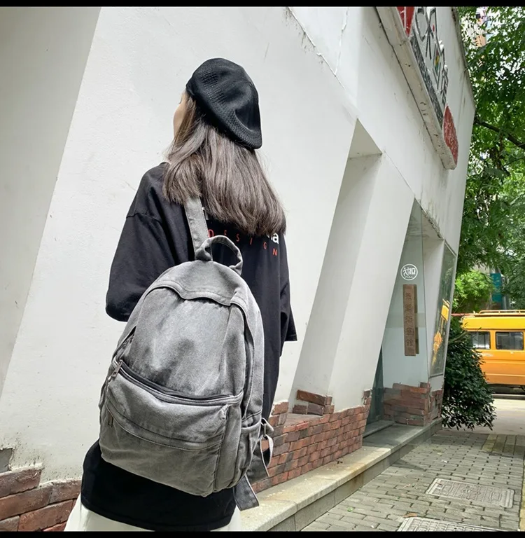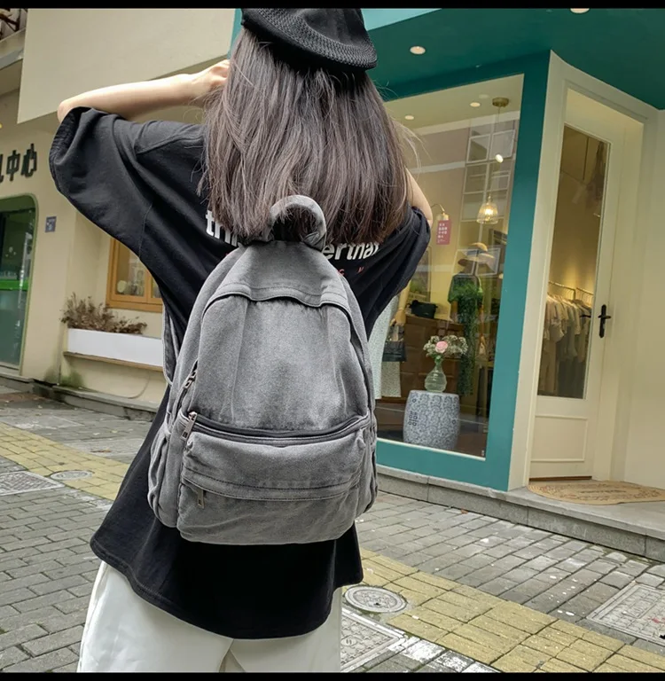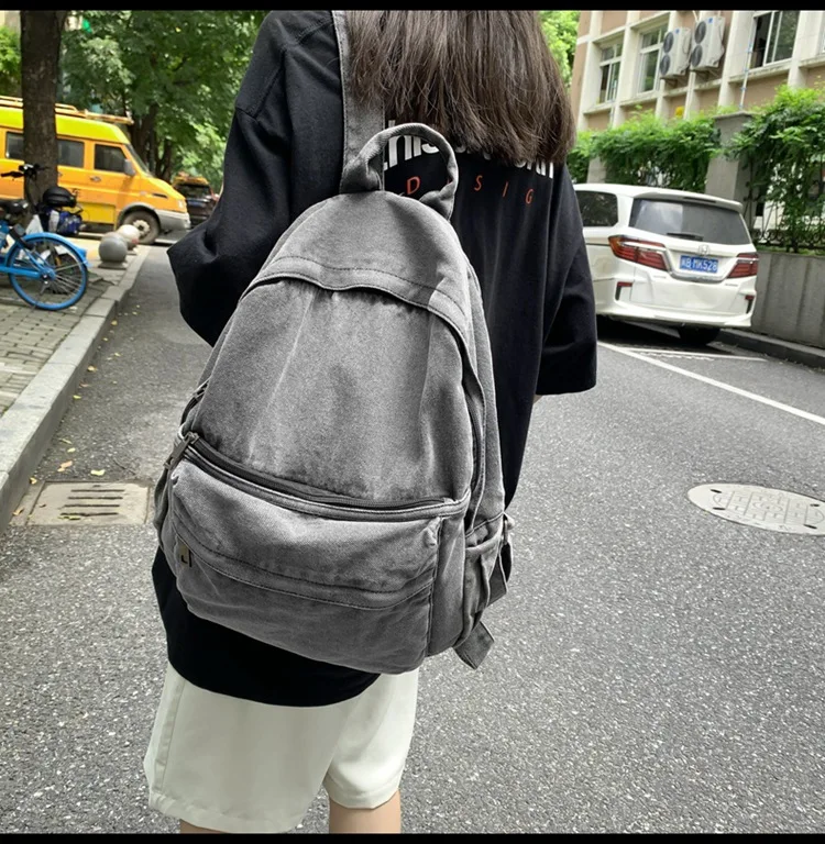 Gray Denim Backpack Women's Travel Outing Shoulder Bag Schoolbags Suitable