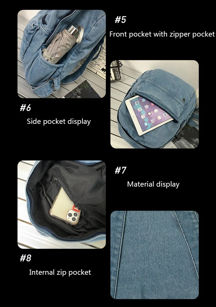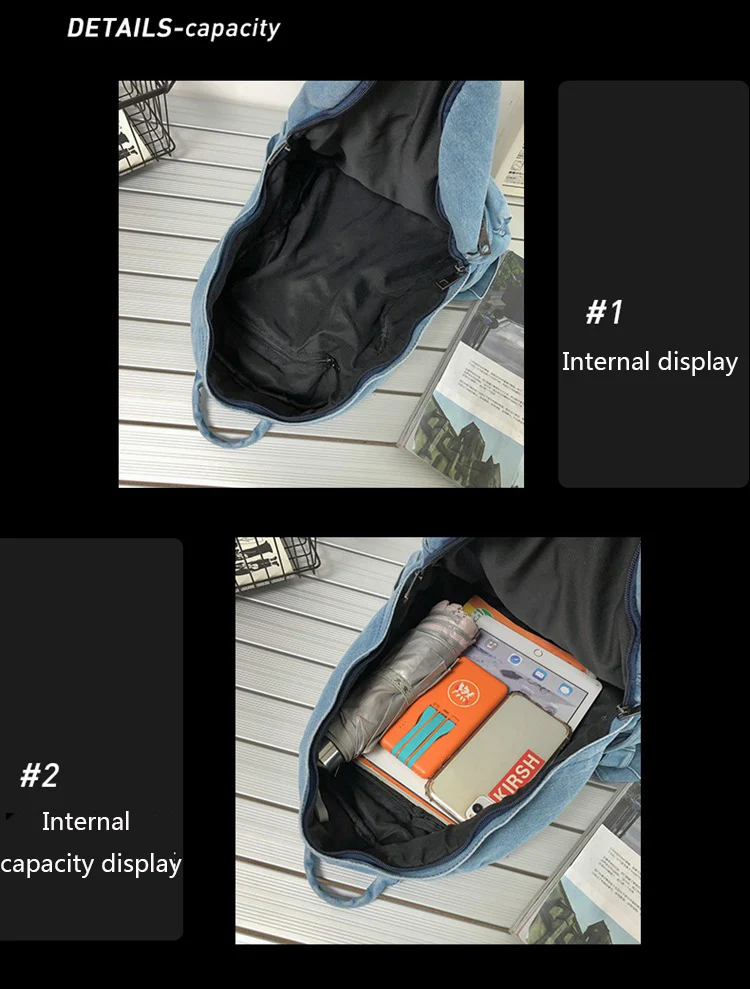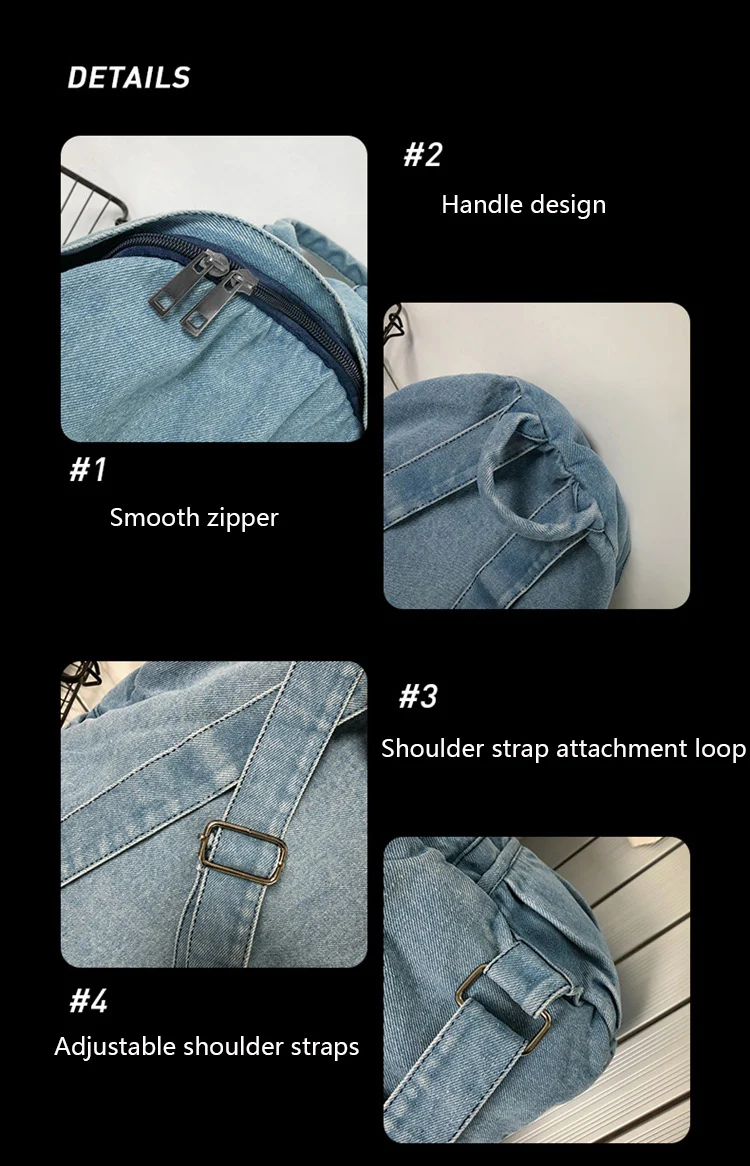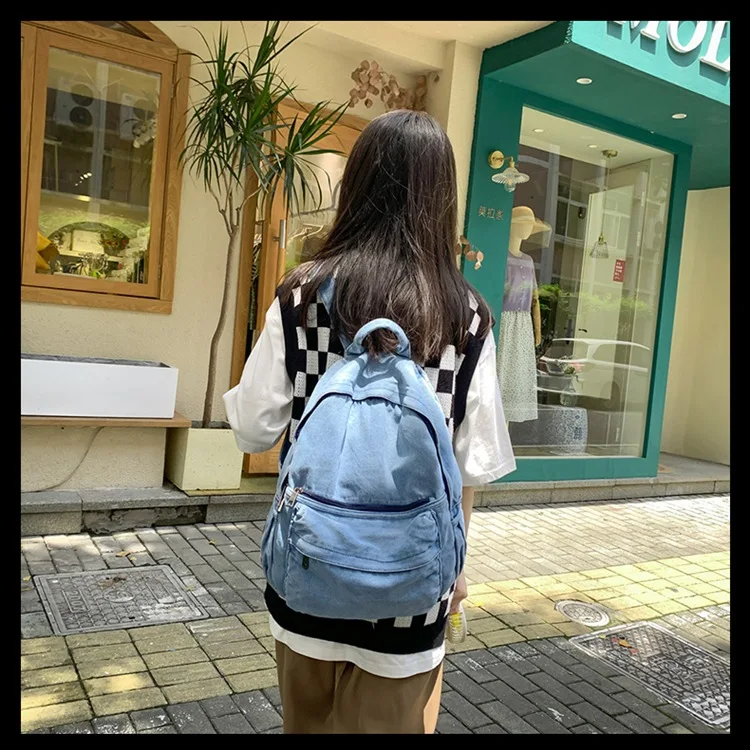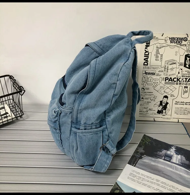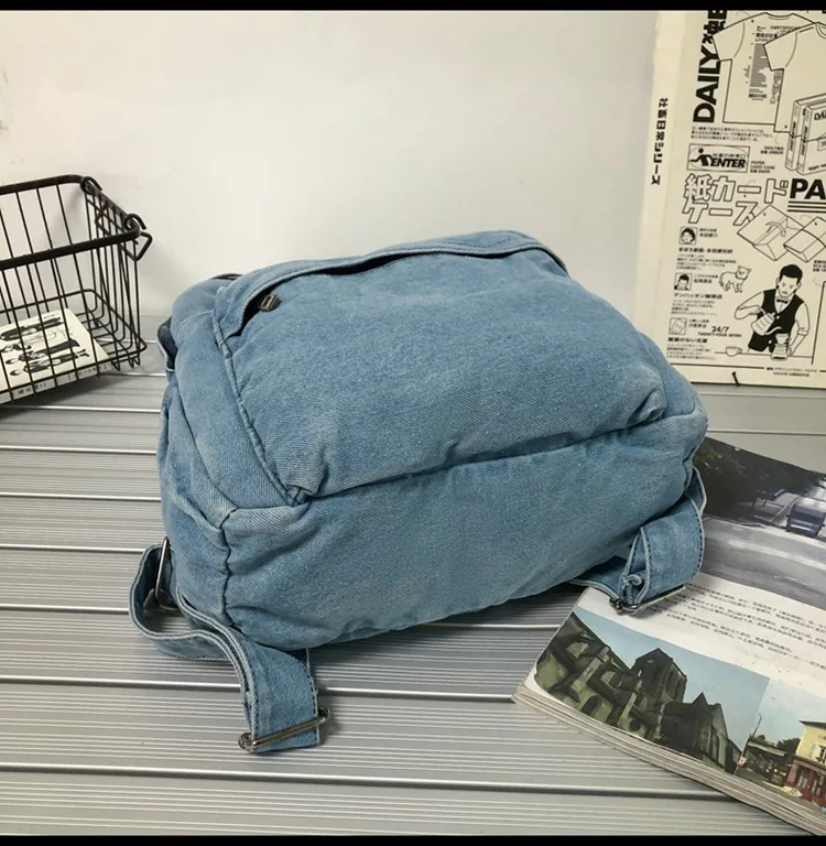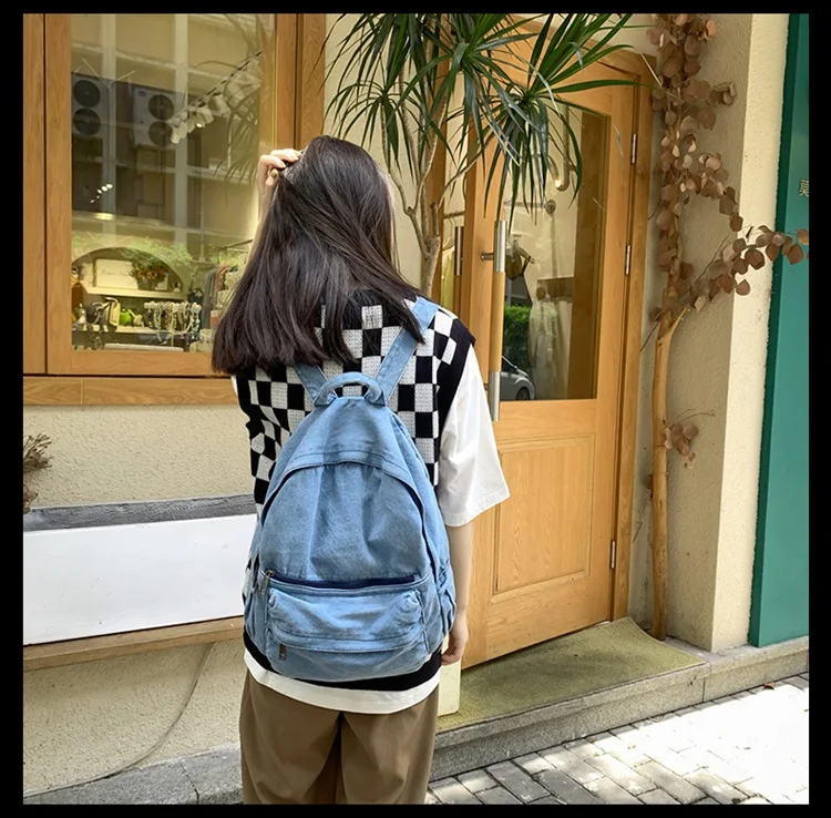Gray Denim Backpack Women's Travel Outing Shoulder Bag Schoolbags Suitable