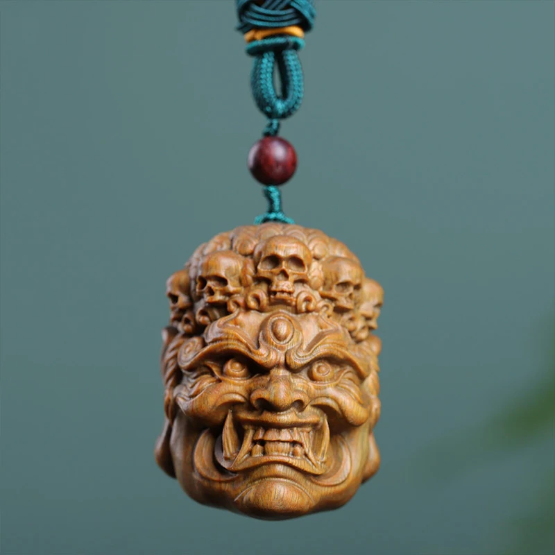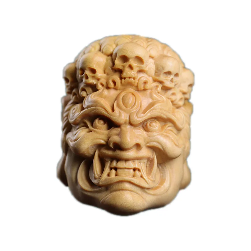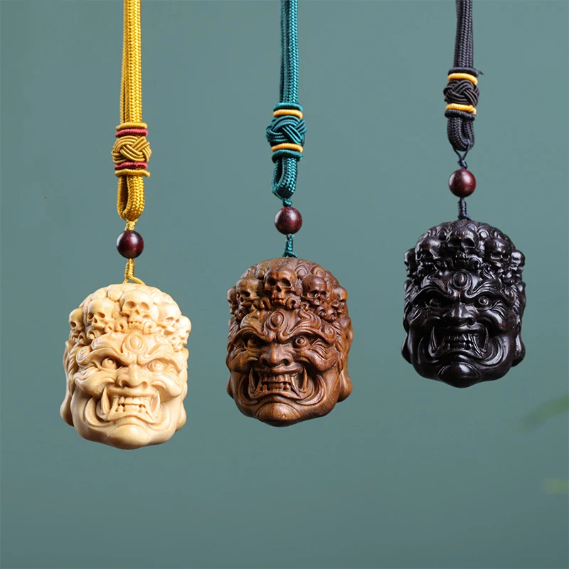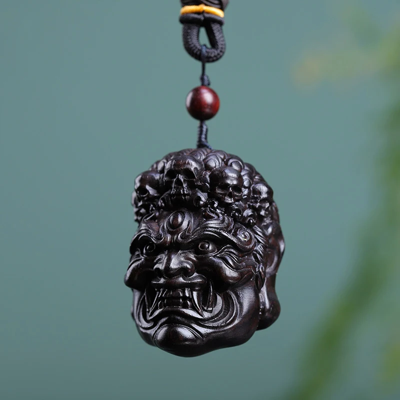 Green sandalwood Ebony 5cm Buddha Skeleton head Wood Statue Office Decoration Feng Shui Real Wood Mascot Collection