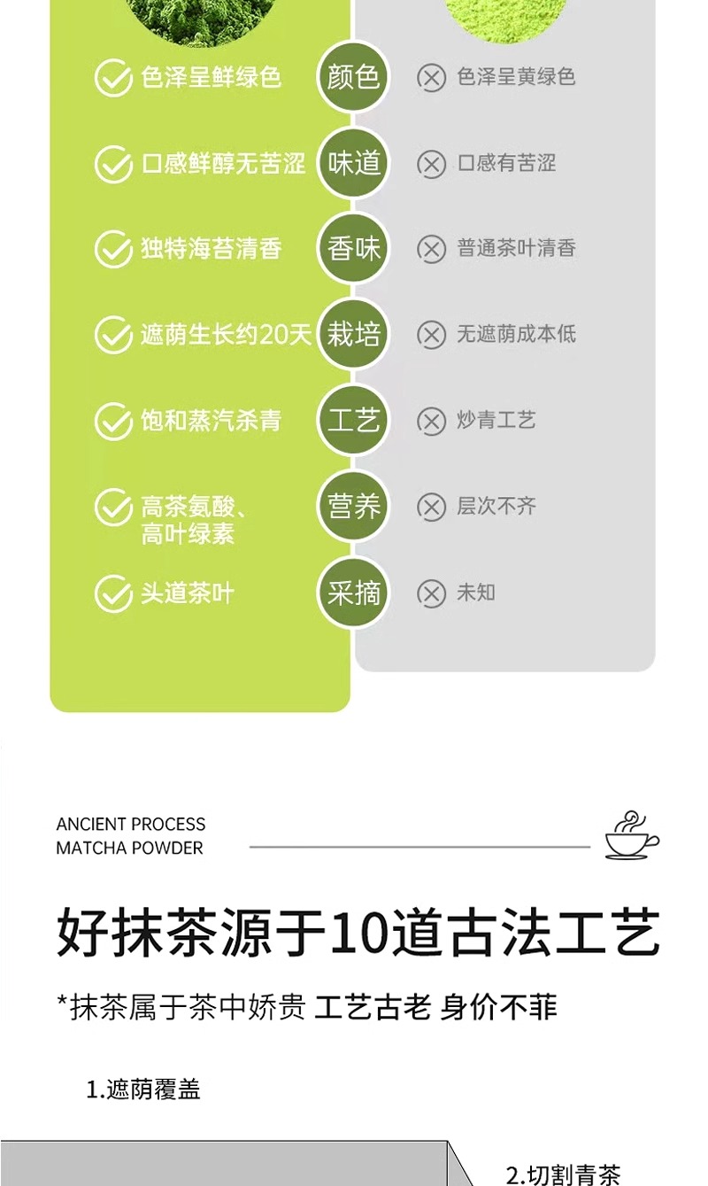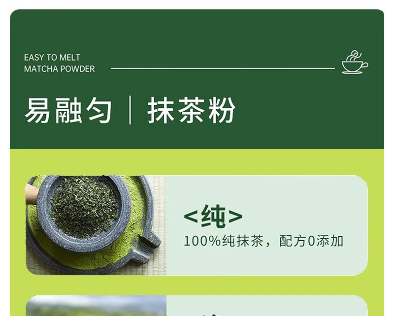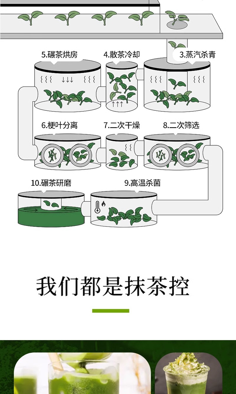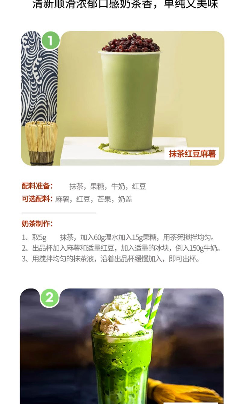 Matcha is suitable for the application of tea beverage (e.g. iced tea, pure tea, fruit tea,milk tea) as basic raw material or as food additive for cake,candy and chocolate etc.
