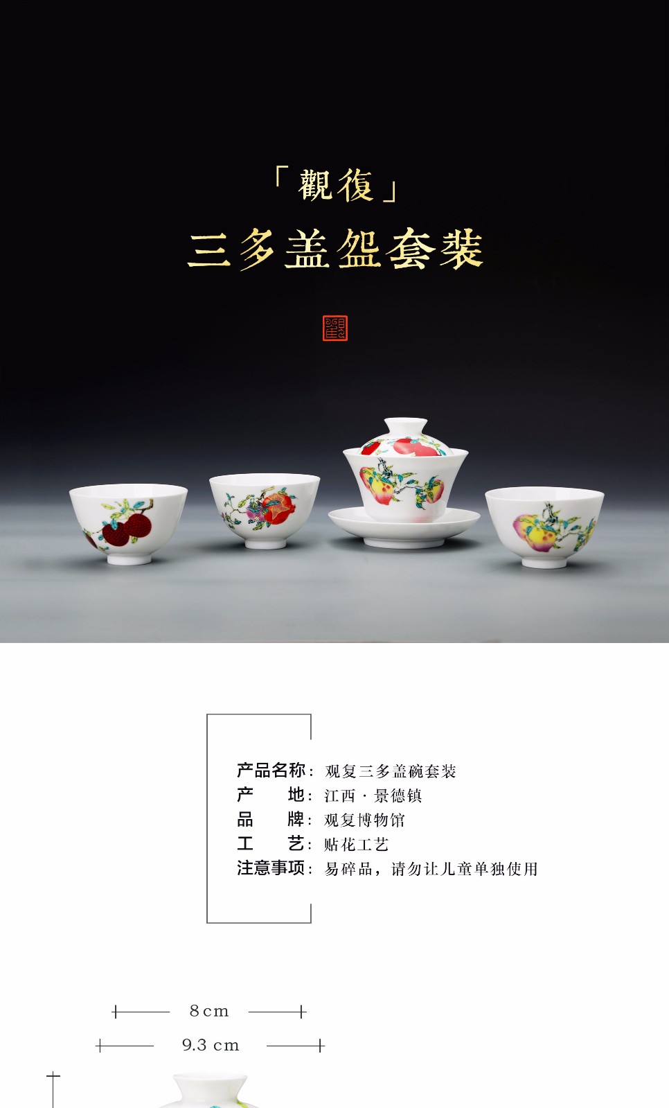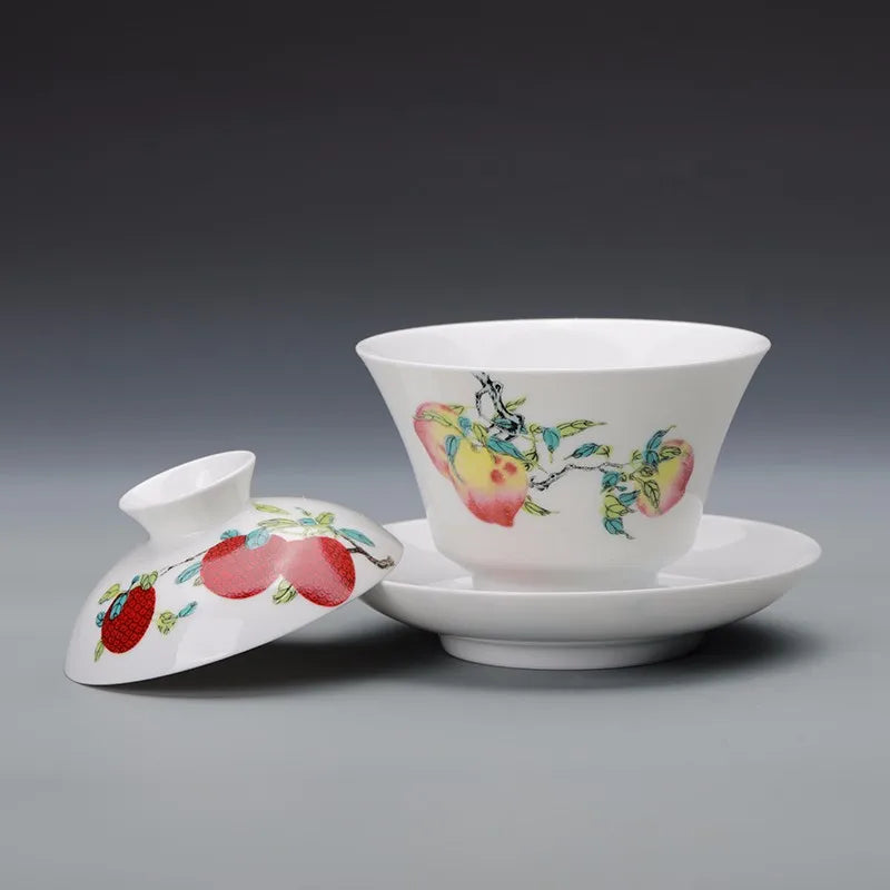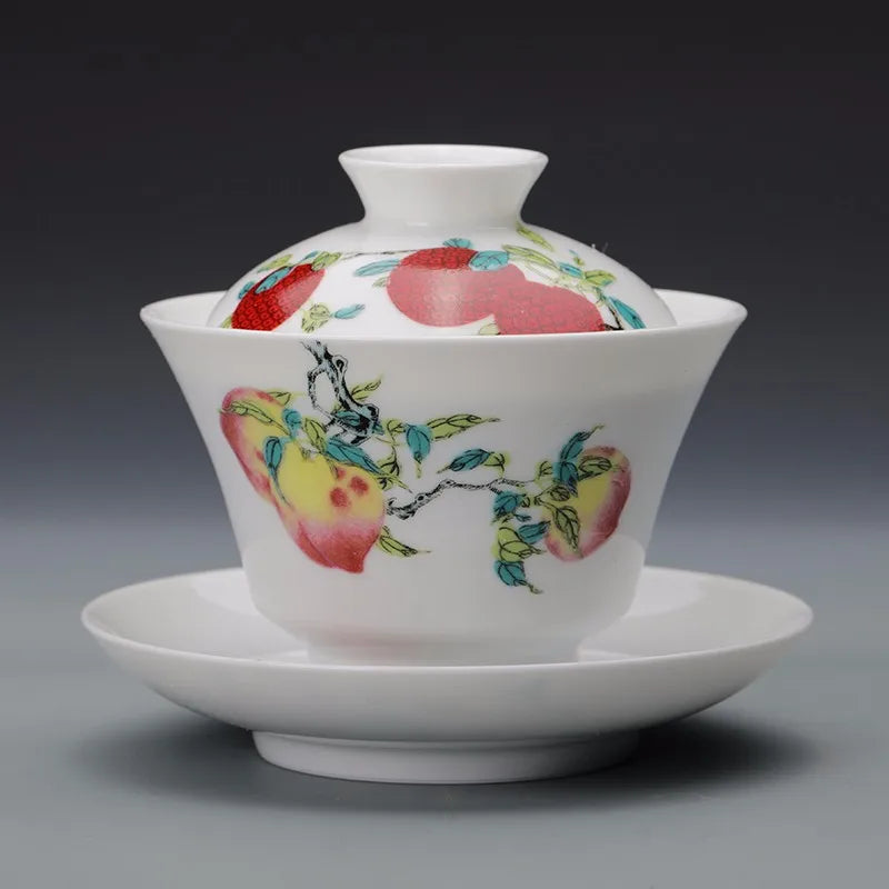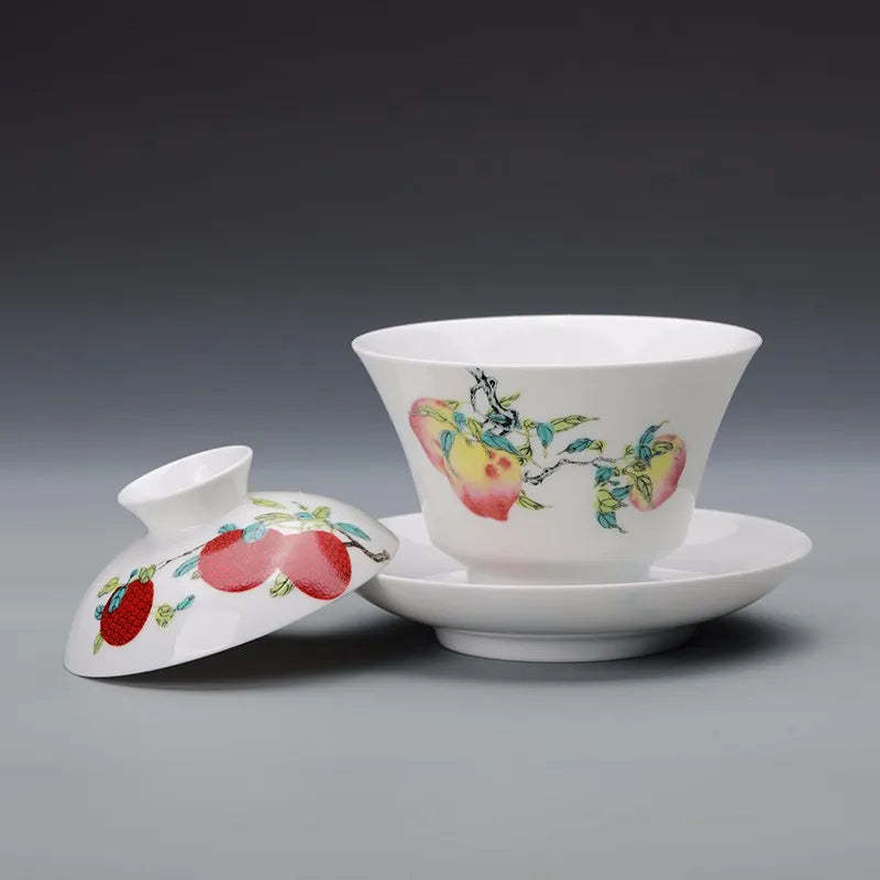 Guanfu Museum Gaiwan Kung Fu Tea Set Tea Cup Chinese Auspicious Pattern Tea Set Jingdezhen Tea Cup Sanduo Decoration Gaiwan Set