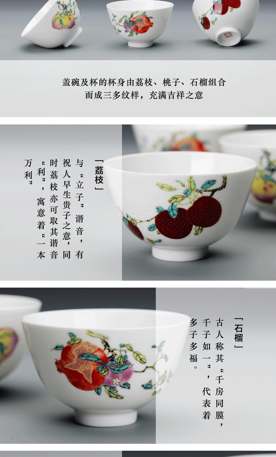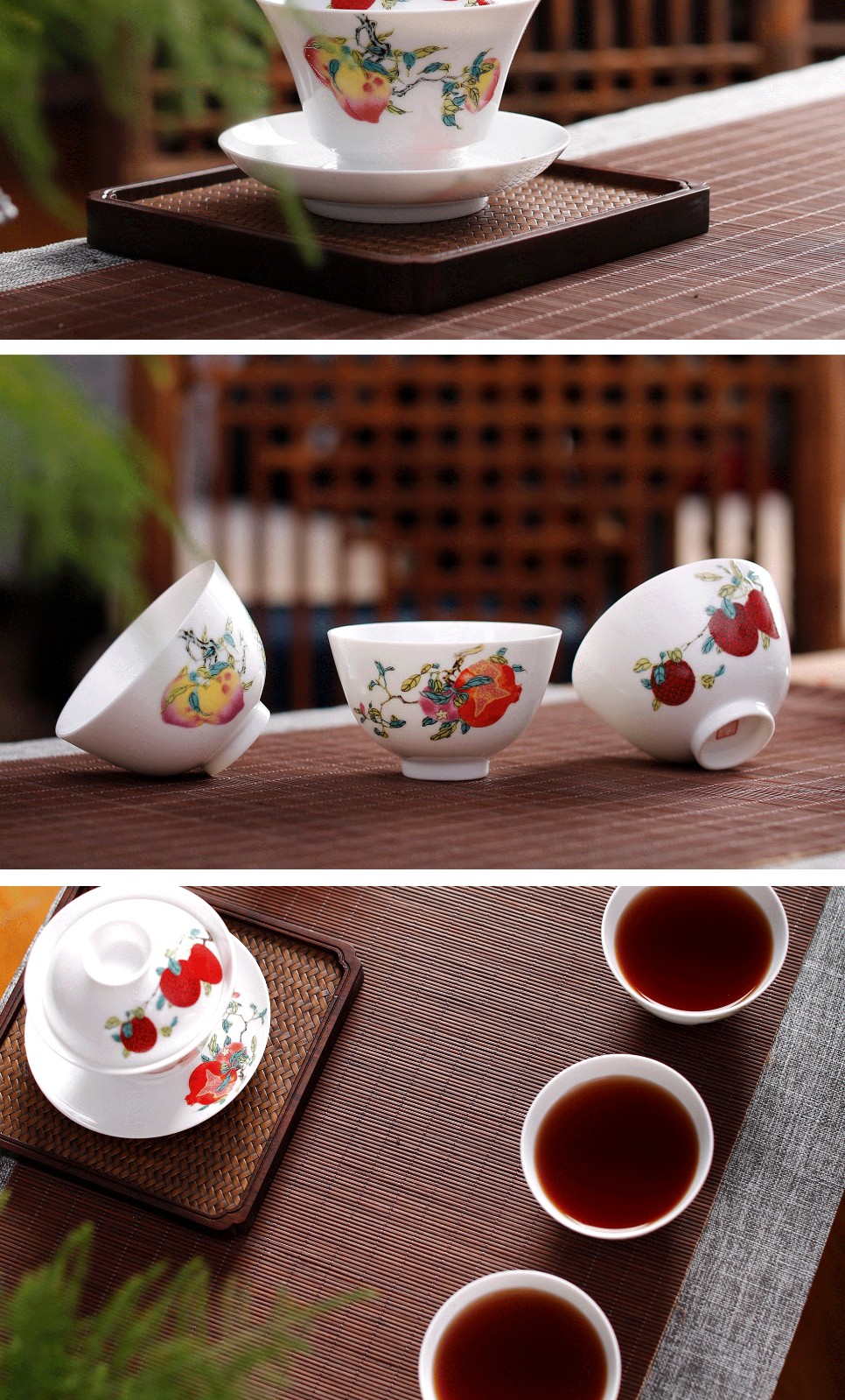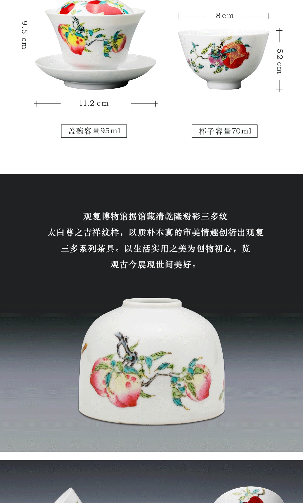 Guanfu Museum Gaiwan Kung Fu Tea Set Tea Cup Chinese Auspicious Pattern Tea Set Jingdezhen Tea Cup Sanduo Decoration Gaiwan Set