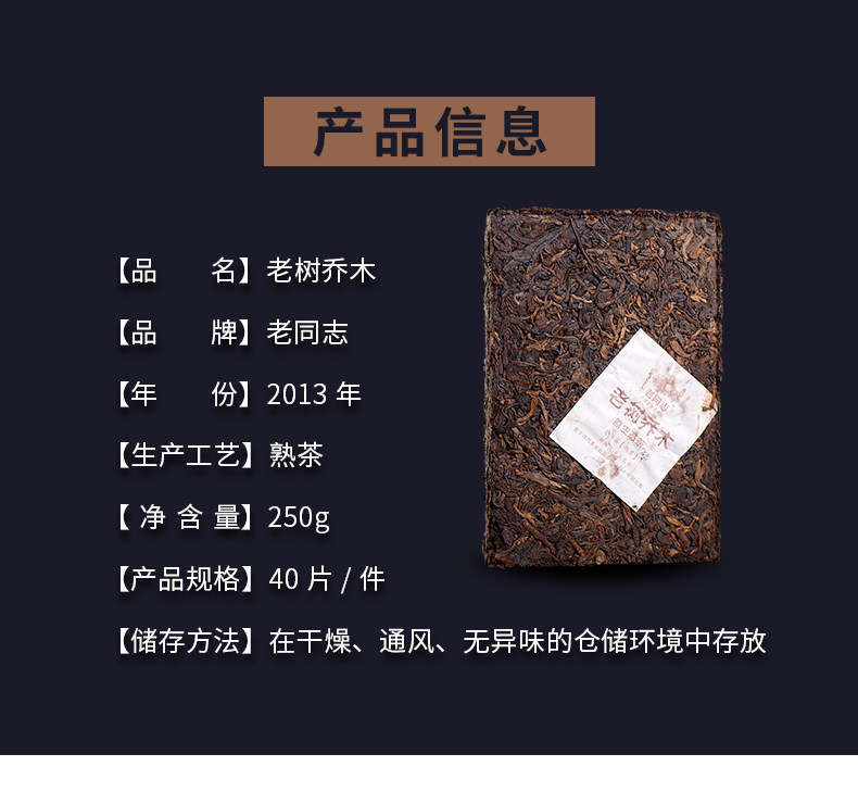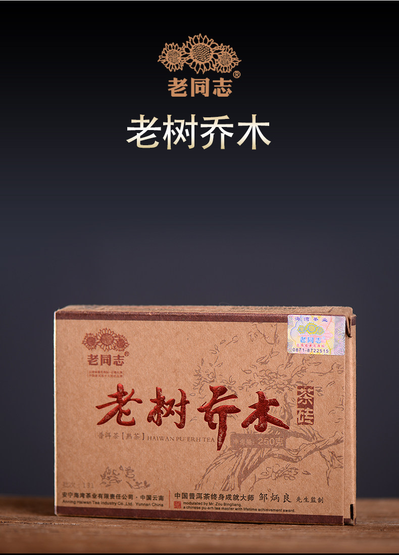 Haiwan Old Tree Tea 2013 Puer Tea "Lao Shu Qiao Mu" Pu-erh Ripe Pu Er Brick 250g