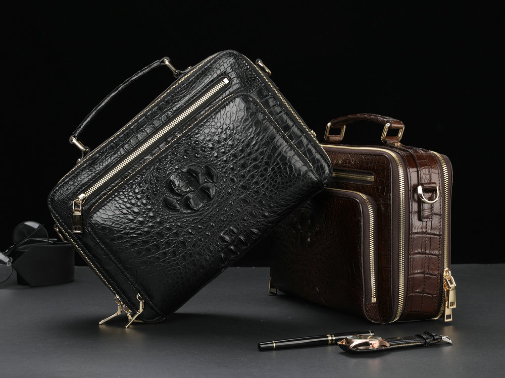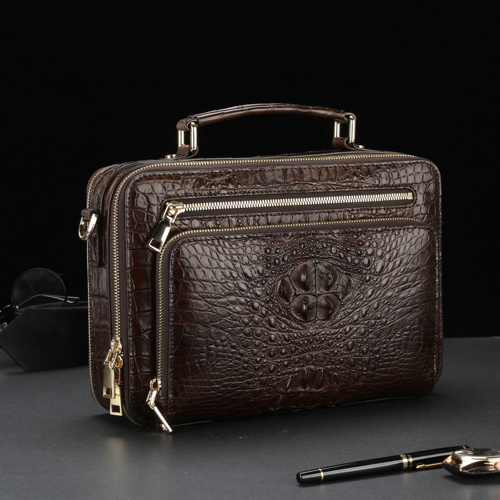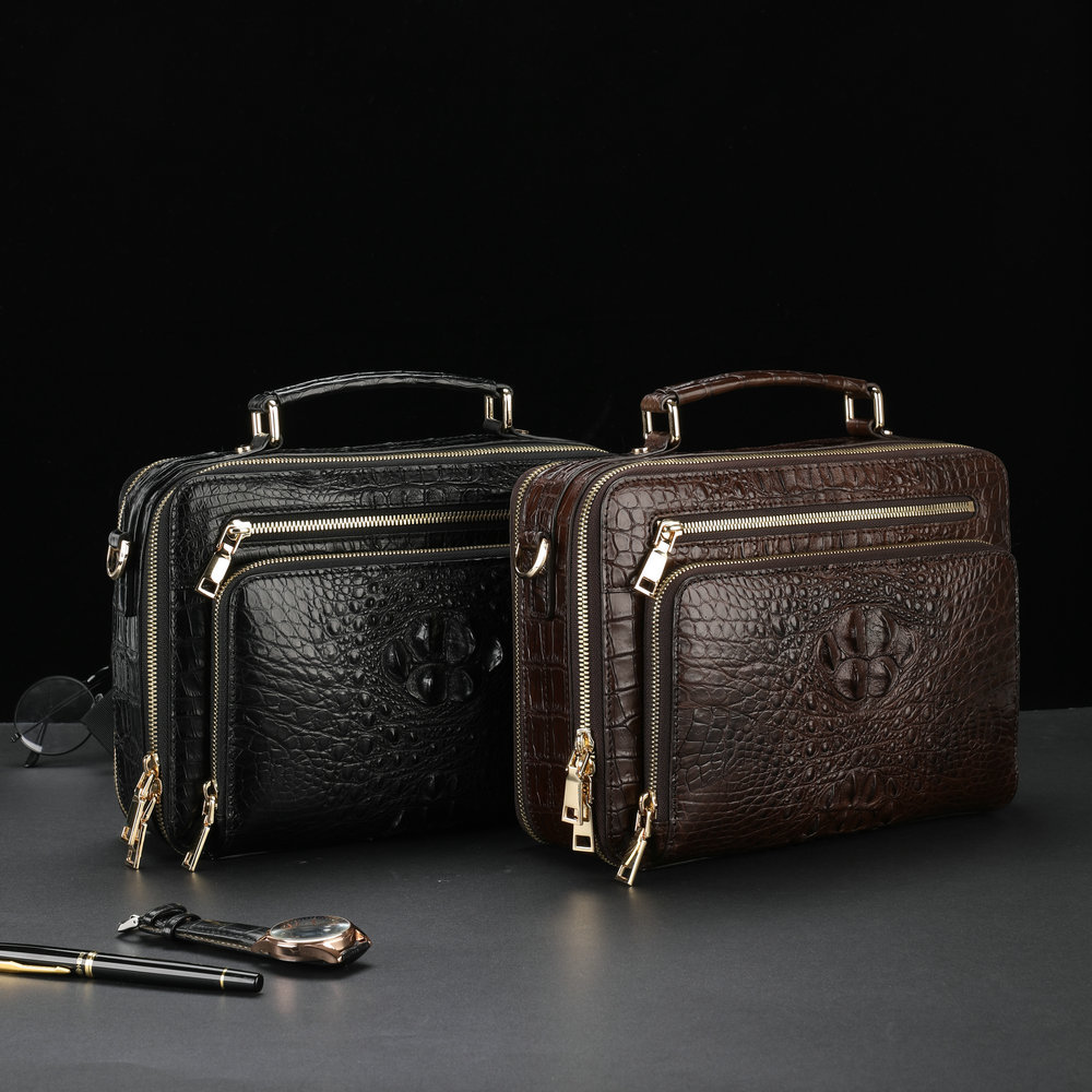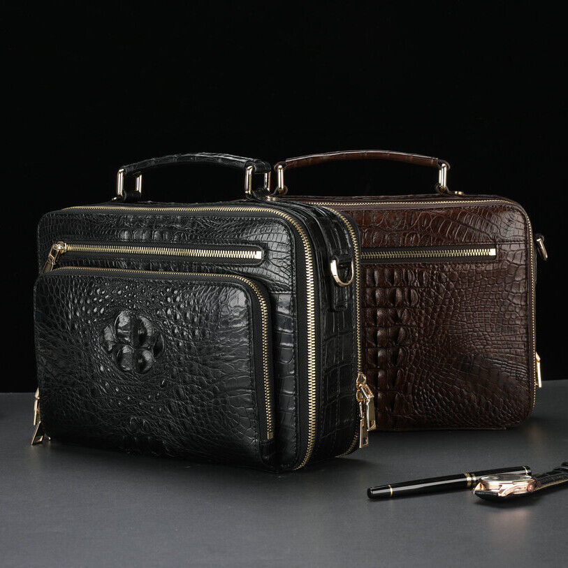 Handcrafted Alligator Crocodile Skin Leather Briefcase Men's Business Handbags