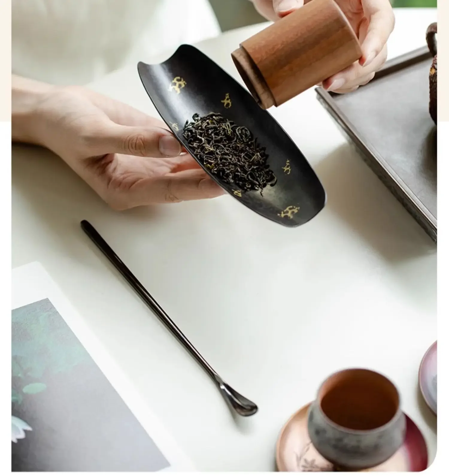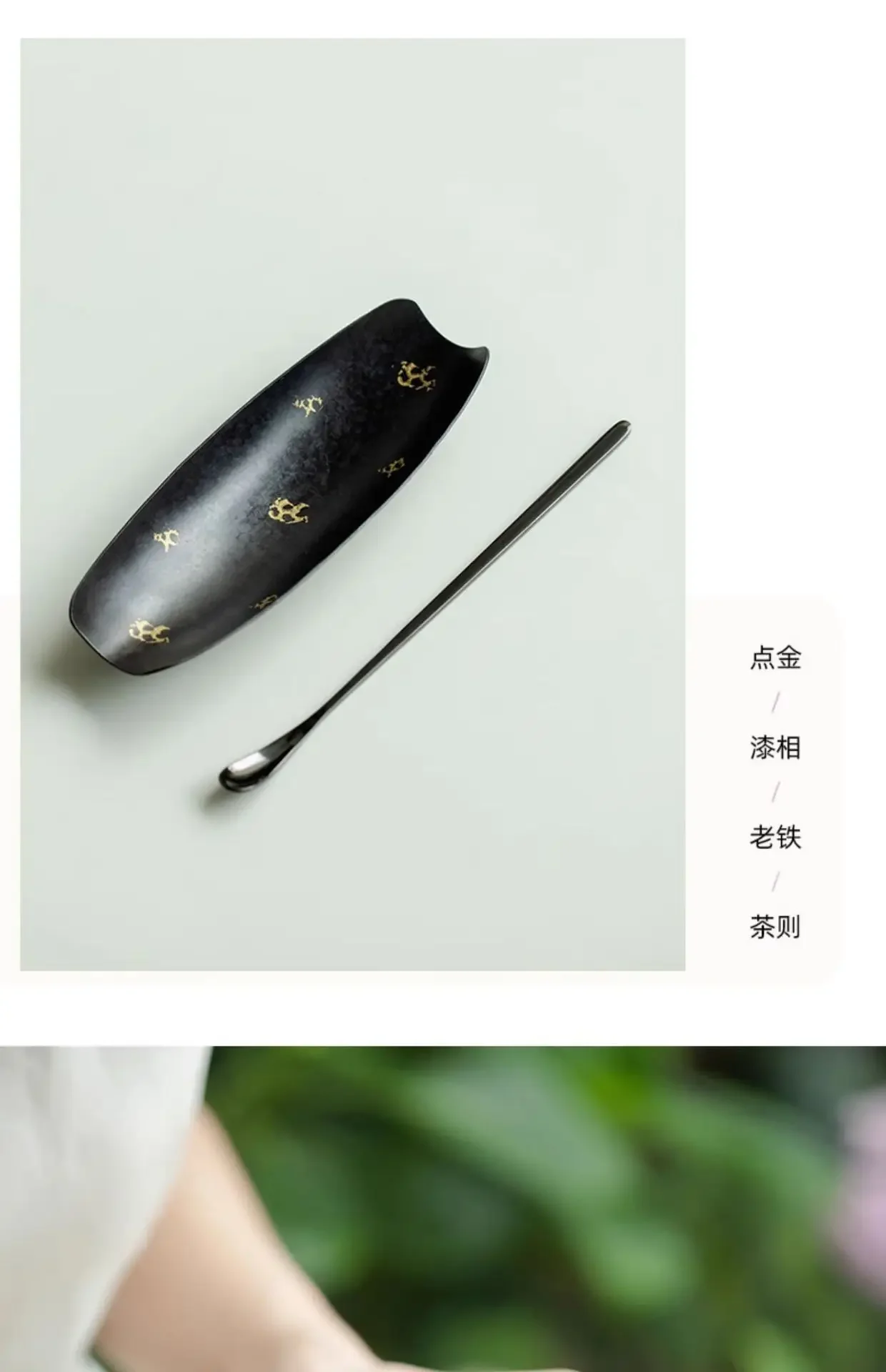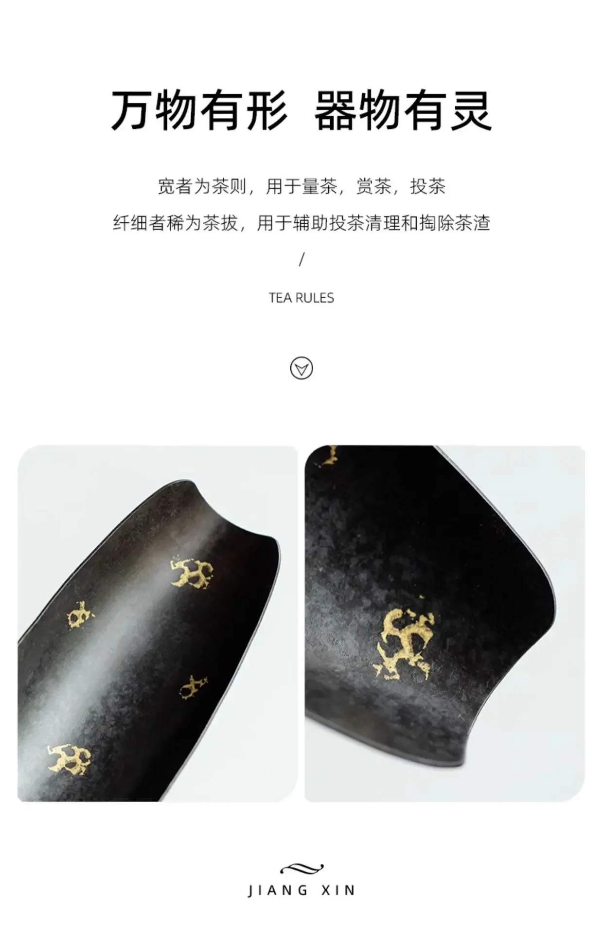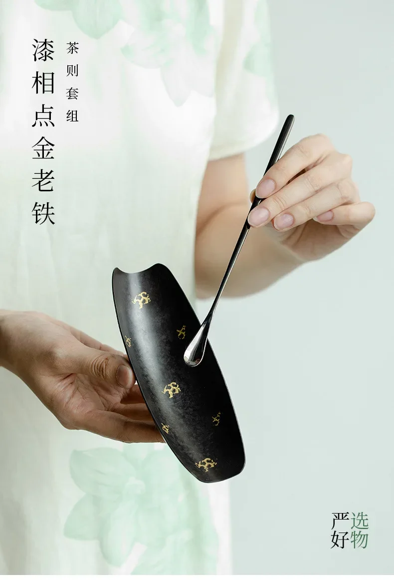 Handmade Old Iron Big Lacquer Tea Scoop Antique Gold Chahe Shovel Japanese Awakening Tea Ladle Kung Fu Tea Services Collection