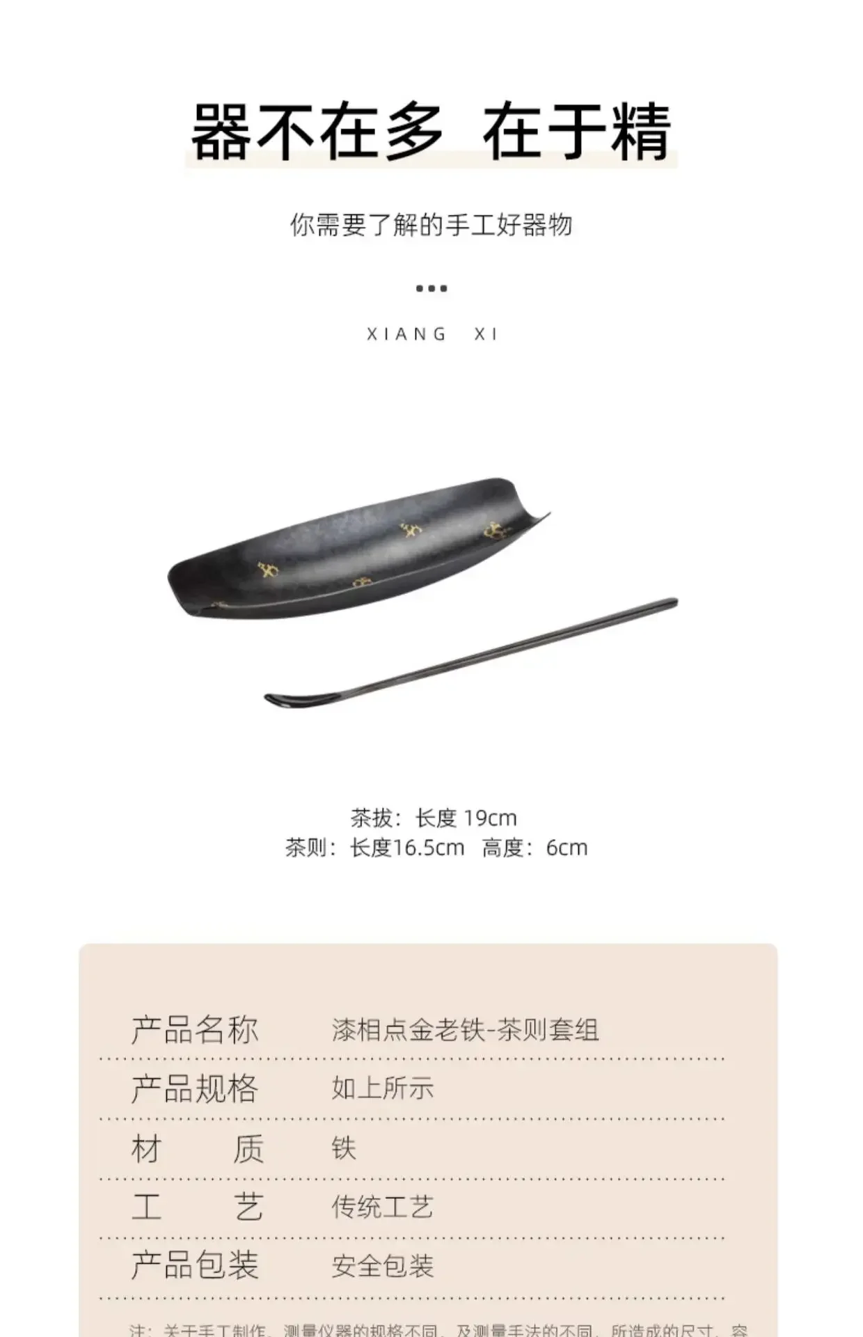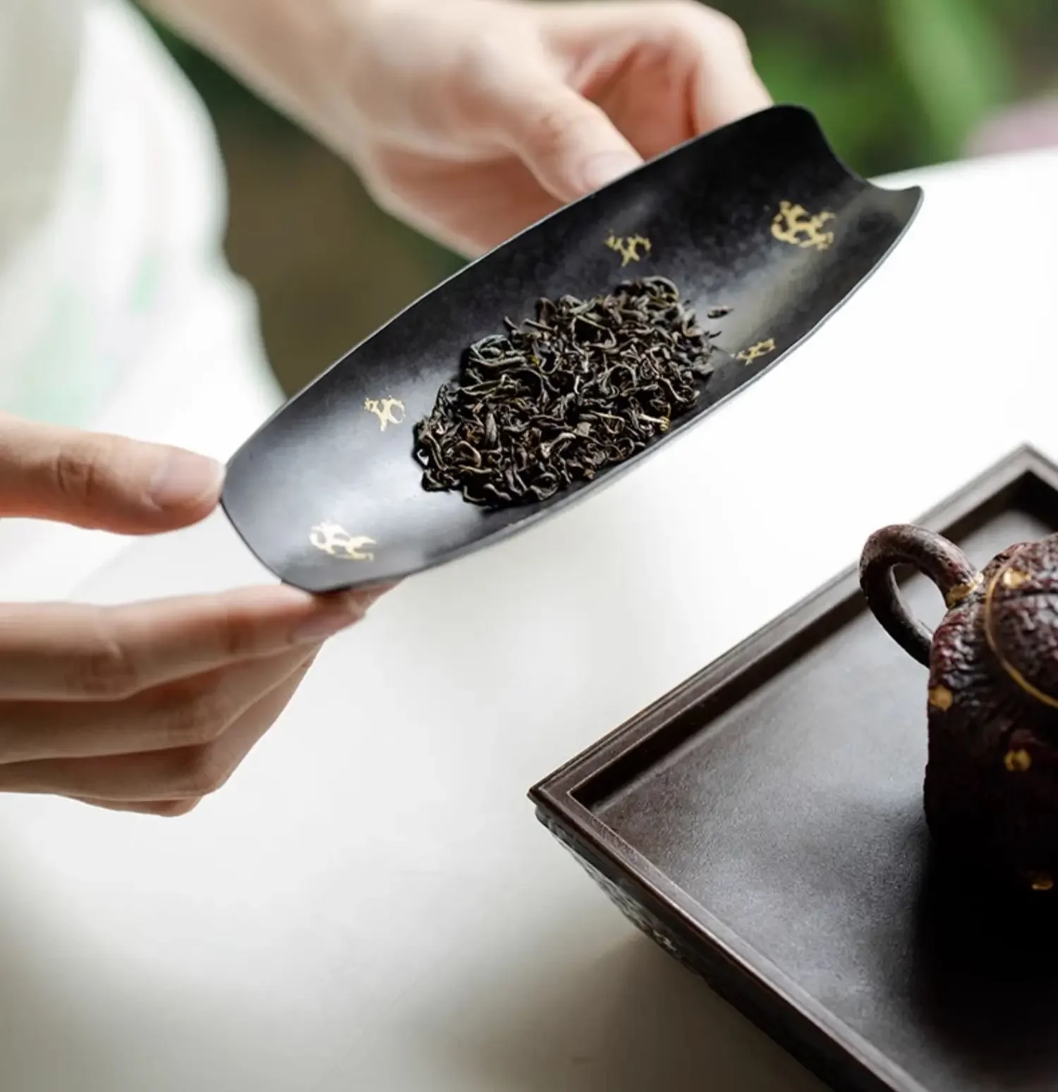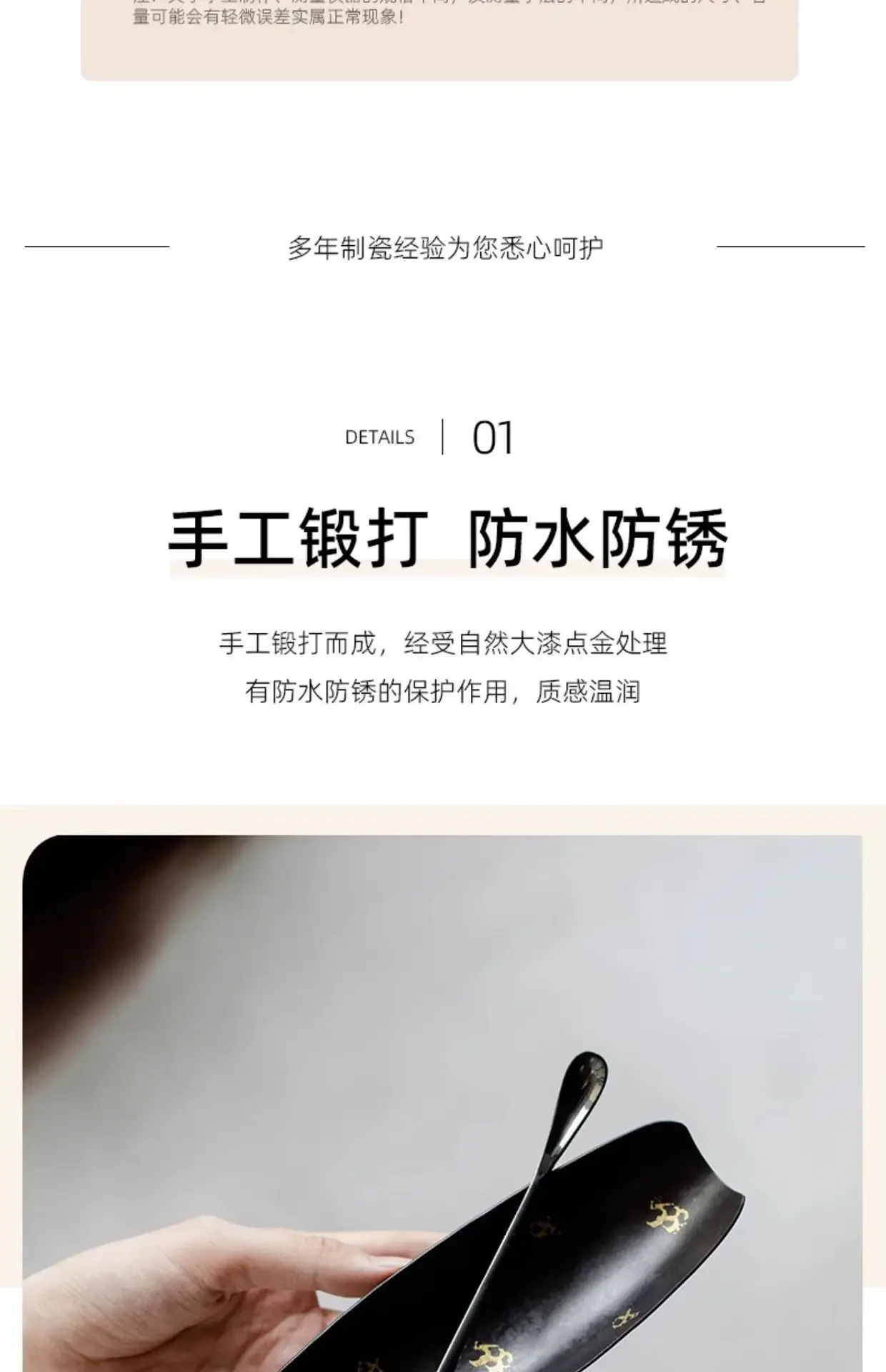 Handmade Old Iron Big Lacquer Tea Scoop Antique Gold Chahe Shovel Japanese Awakening Tea Ladle Kung Fu Tea Services Collection