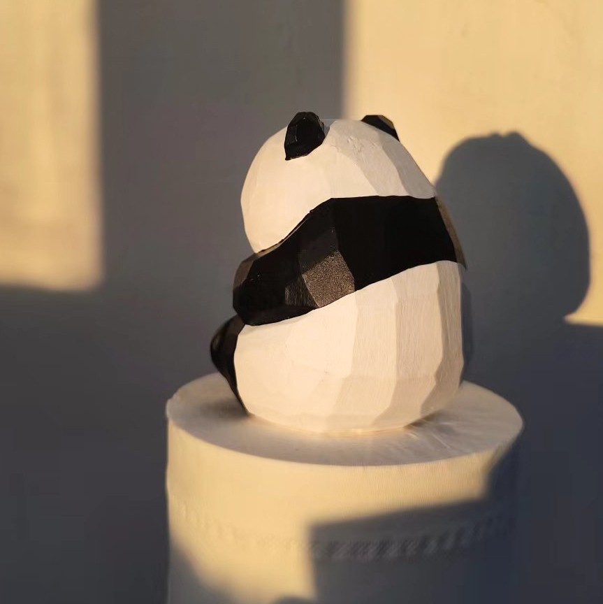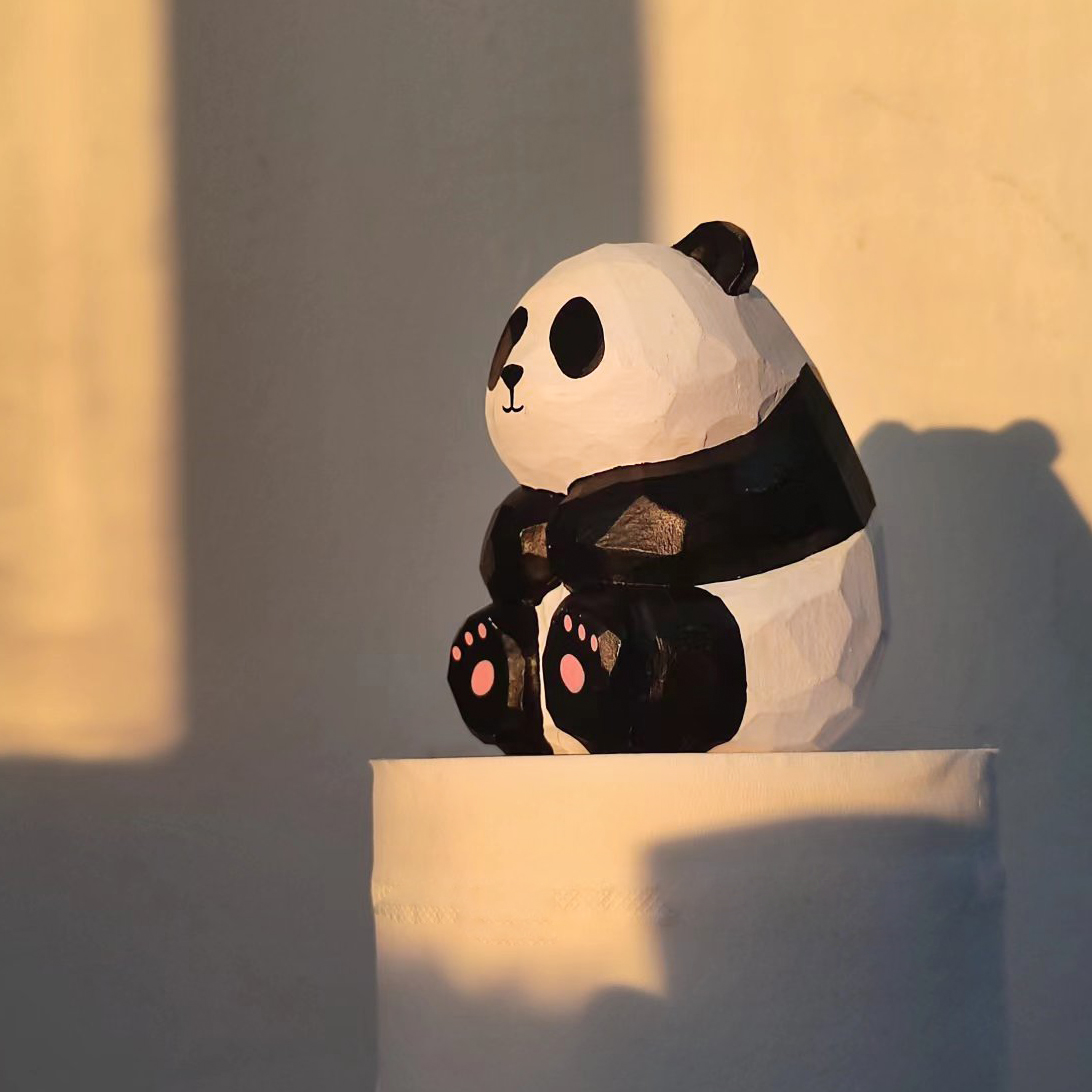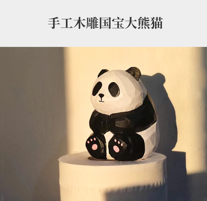 Handmade wood carved black and white panda ornaments, cute tabletop ornaments, car mounted birthday gifts, female gifts