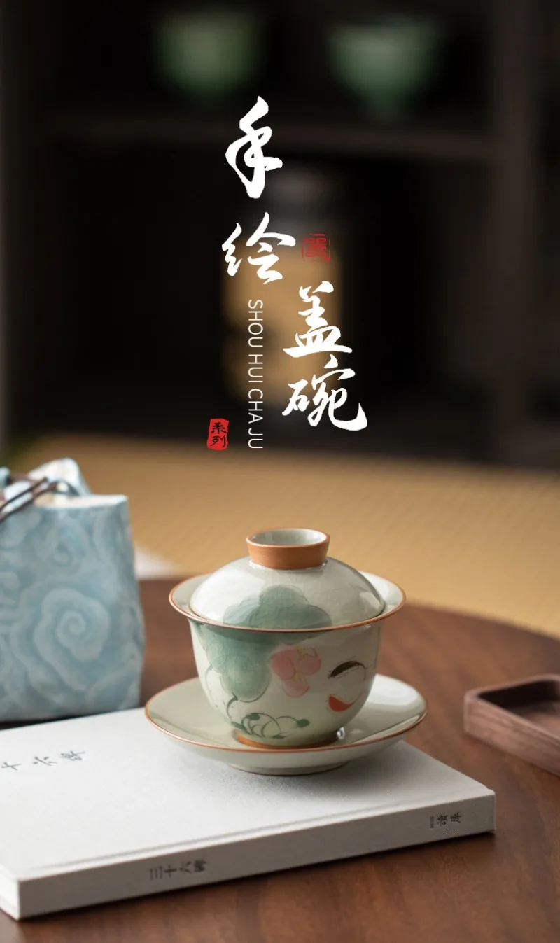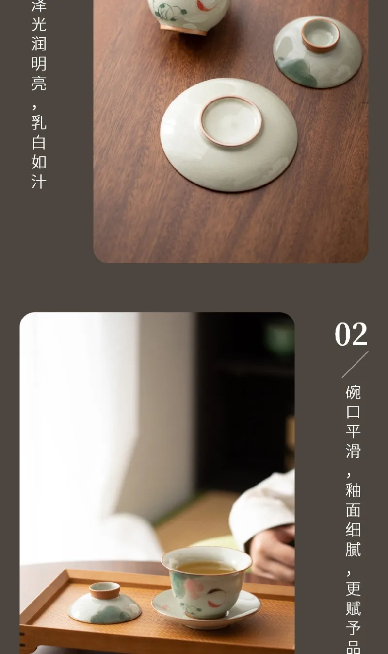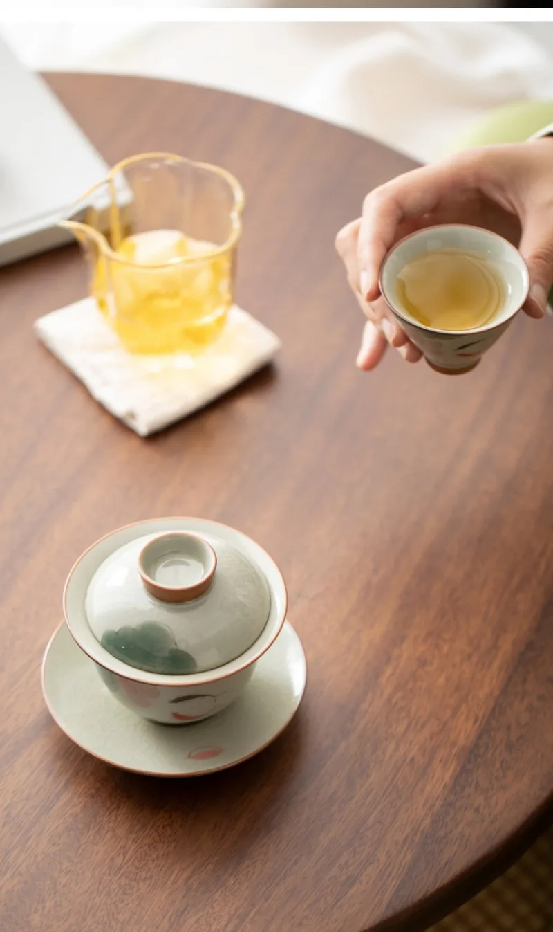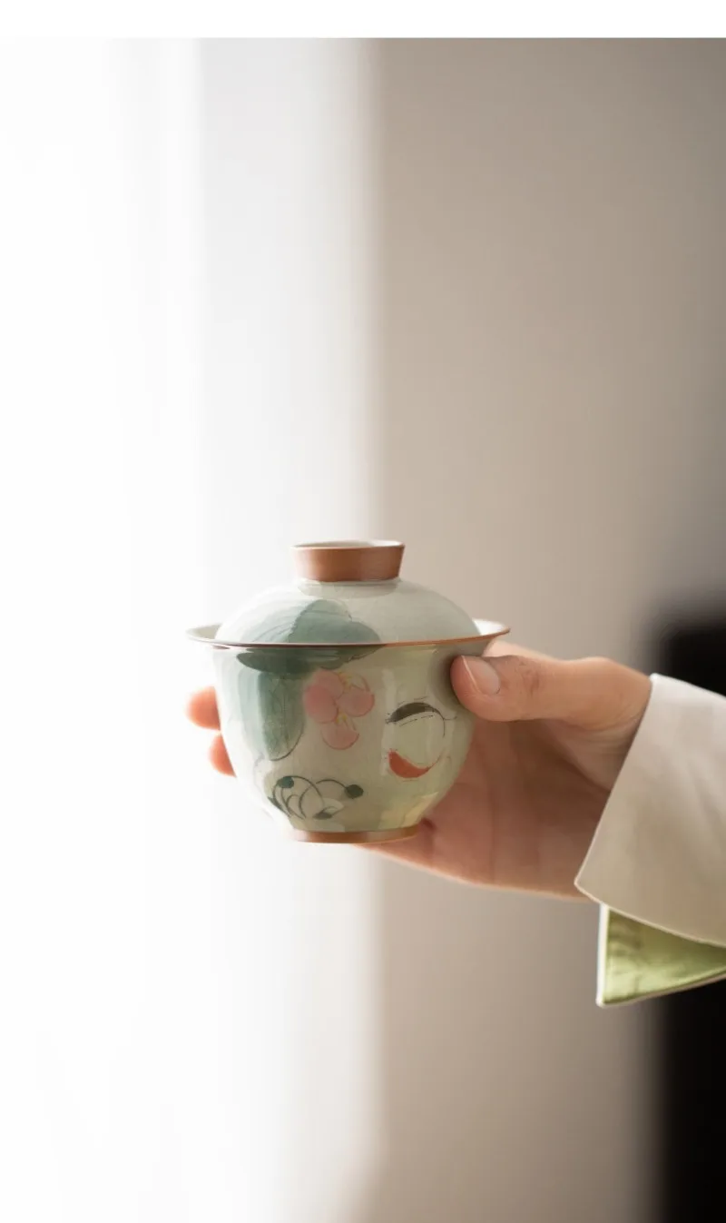 Handpainted Sancai Gaiwan Chinese Ceramic Tea Cups Home Decor Gongfu Tea Tureen Teaware Porcelain Tea Cup Set
