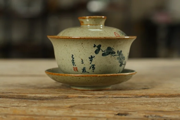 Handpainted Sancai Gaiwan Chinese Pottery Tea Cup Bowl Gongfu Teacups Home Decor Ceramic Tea Tureen Teaware Set