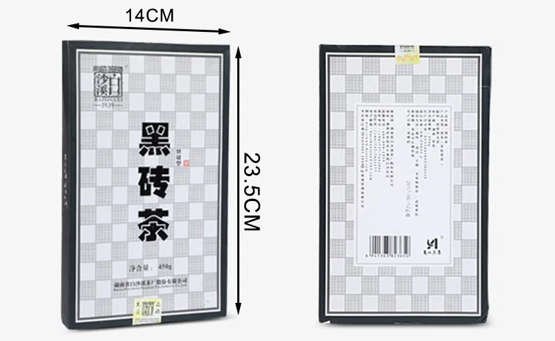 Product Name: Anhua Baishaxi Instant Type Dark Tea Brick Tea Form: Compressed Brick Tea Origin: Hunan province, China Tea Type: Dark Tea Product date: 2018 Package: Box Packing Net Weight: 450g Shelf life: The longer the better Storage Method: In ventilation, dry and no odor, storage in normal temperature environment . China Manufacturer: Hunan Provincial Baishaxi Tea Industry Co. Ltd