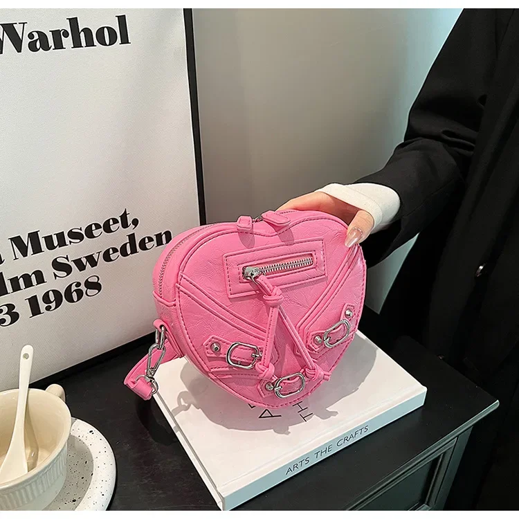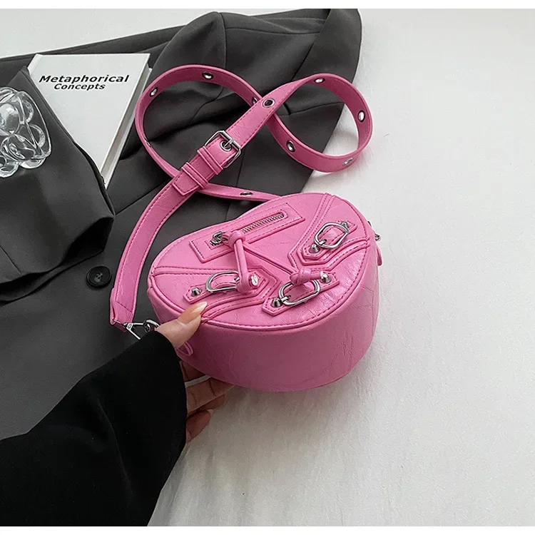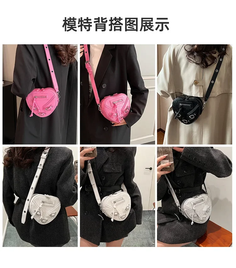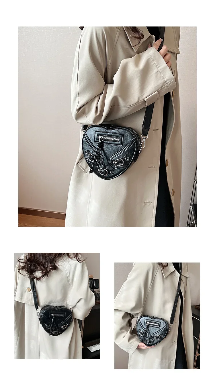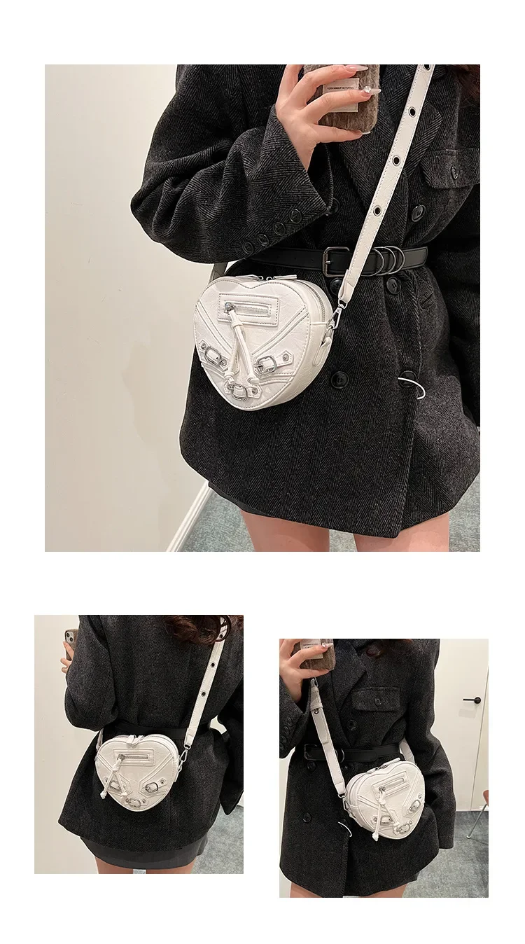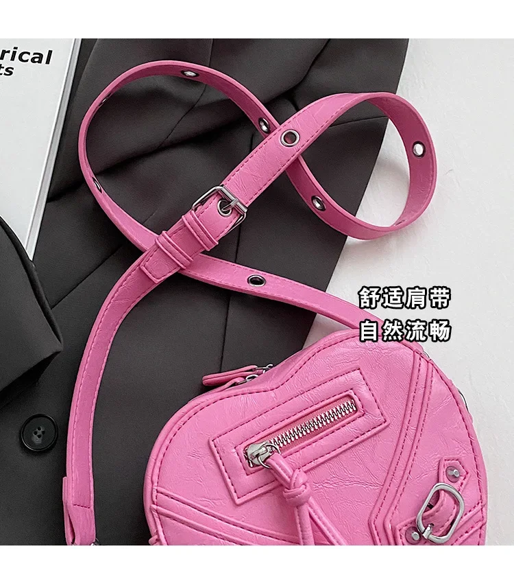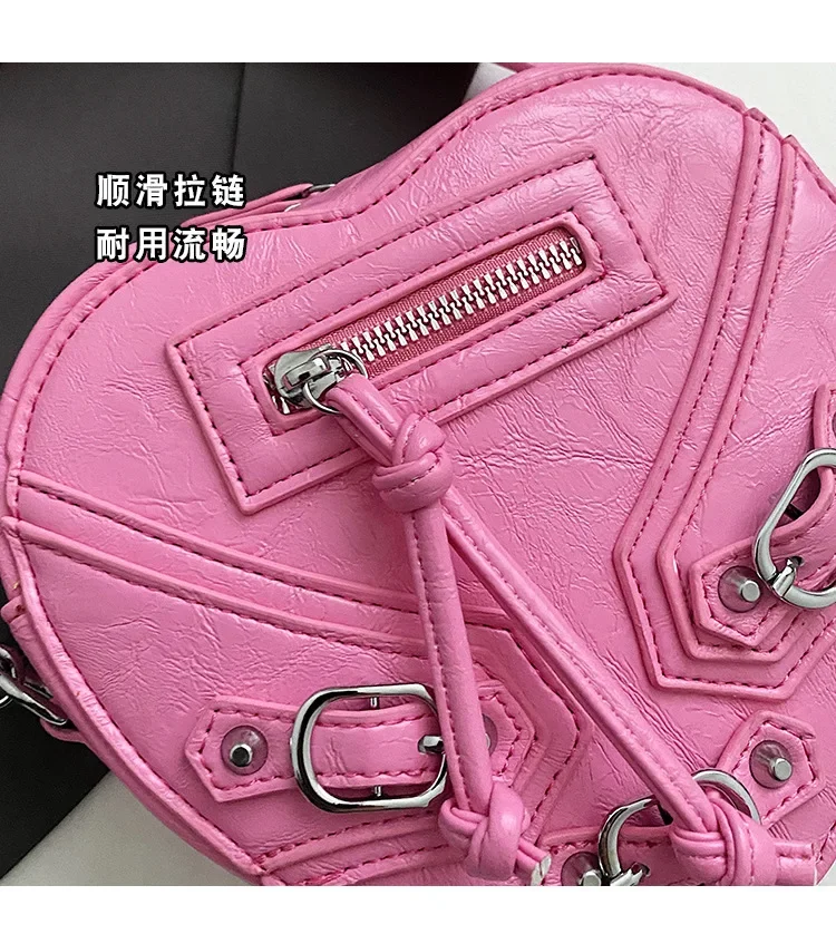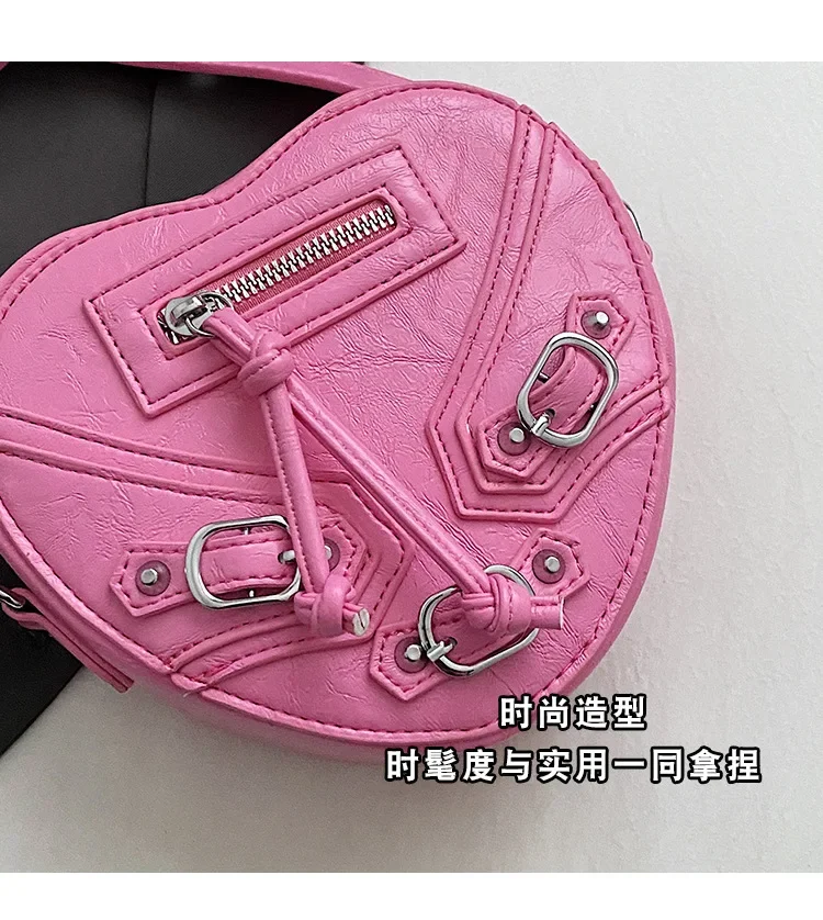 Heart Shaped Mini Exquisite Bags Rivet Decoration Spice Girl Style Bags Unique Design Motorcycle Style Crossbody Bag Korea Sweet