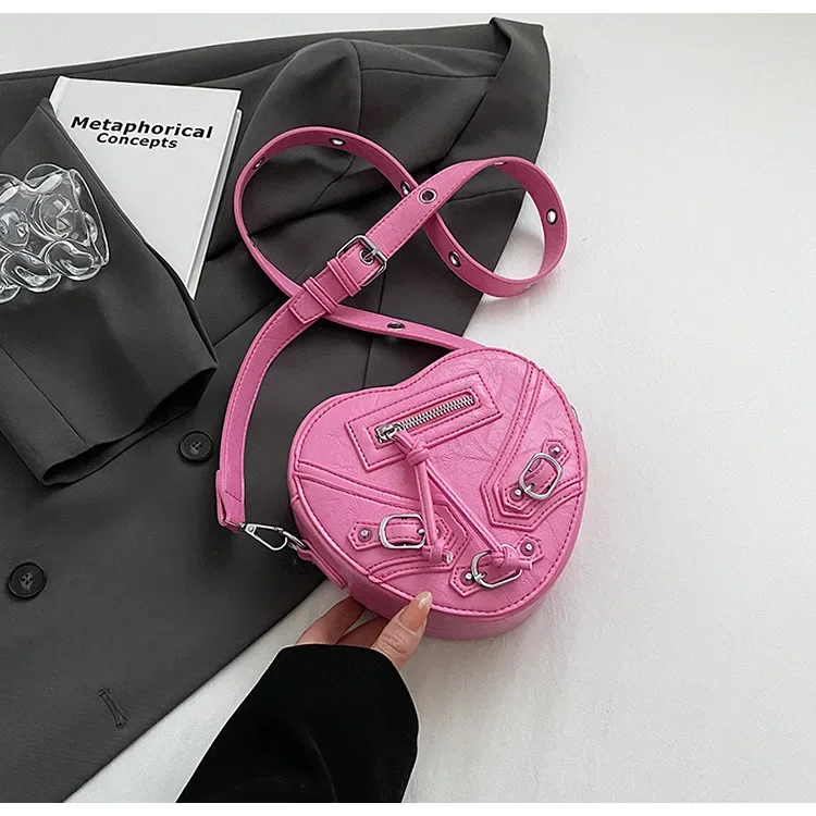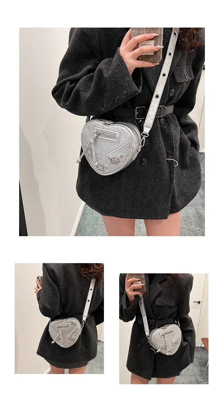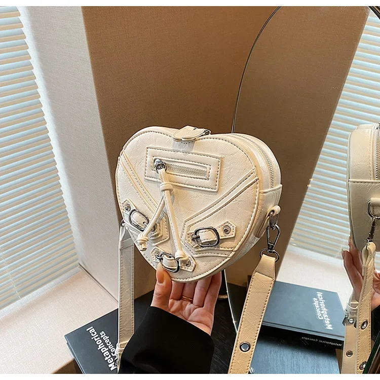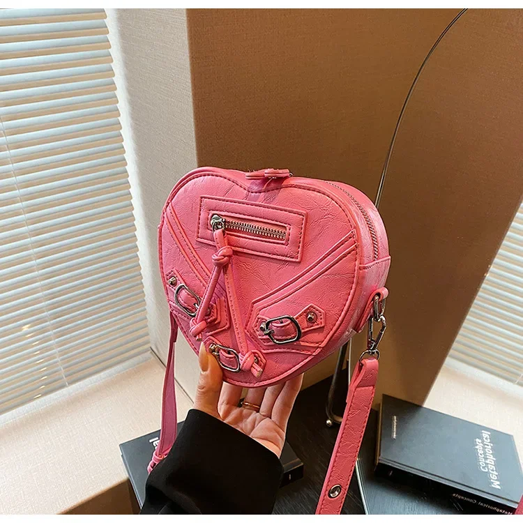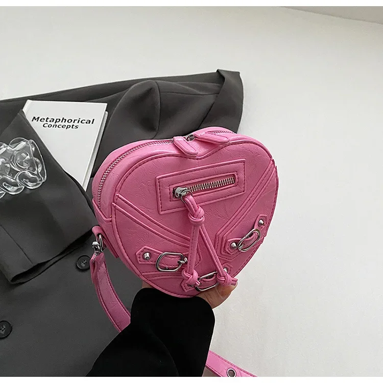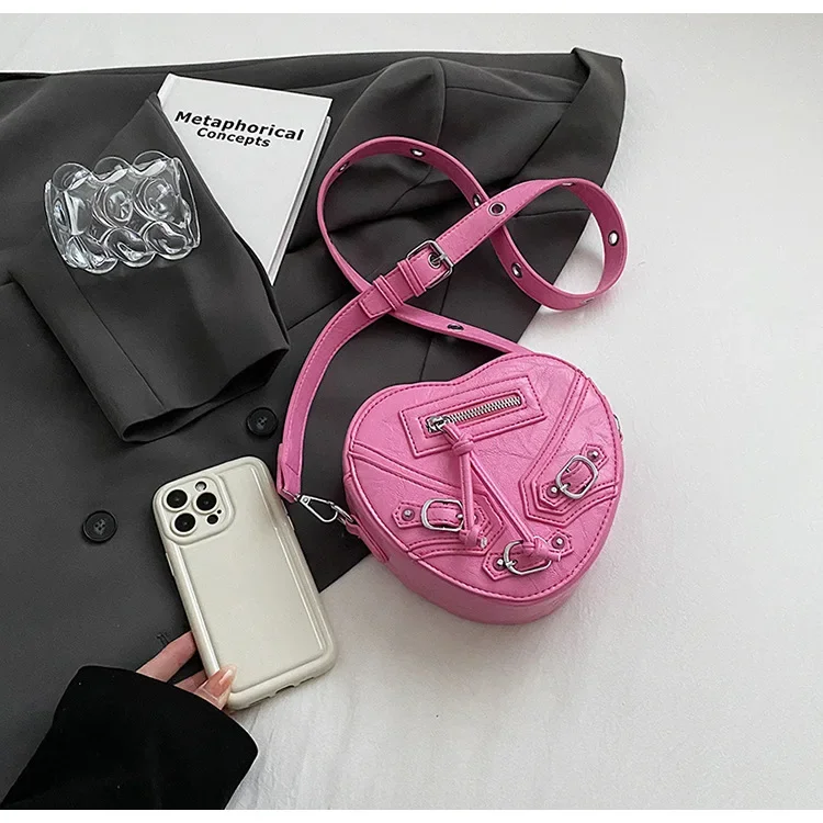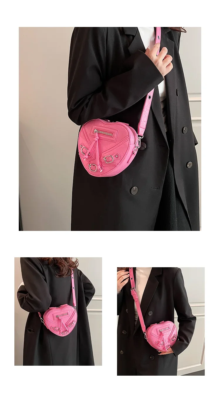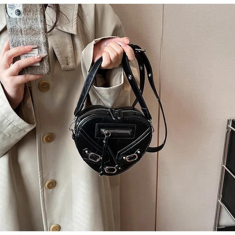Heart Shaped Mini Exquisite Bags Rivet Decoration Spice Girl Style Bags Unique Design Motorcycle Style Crossbody Bag Korea Sweet