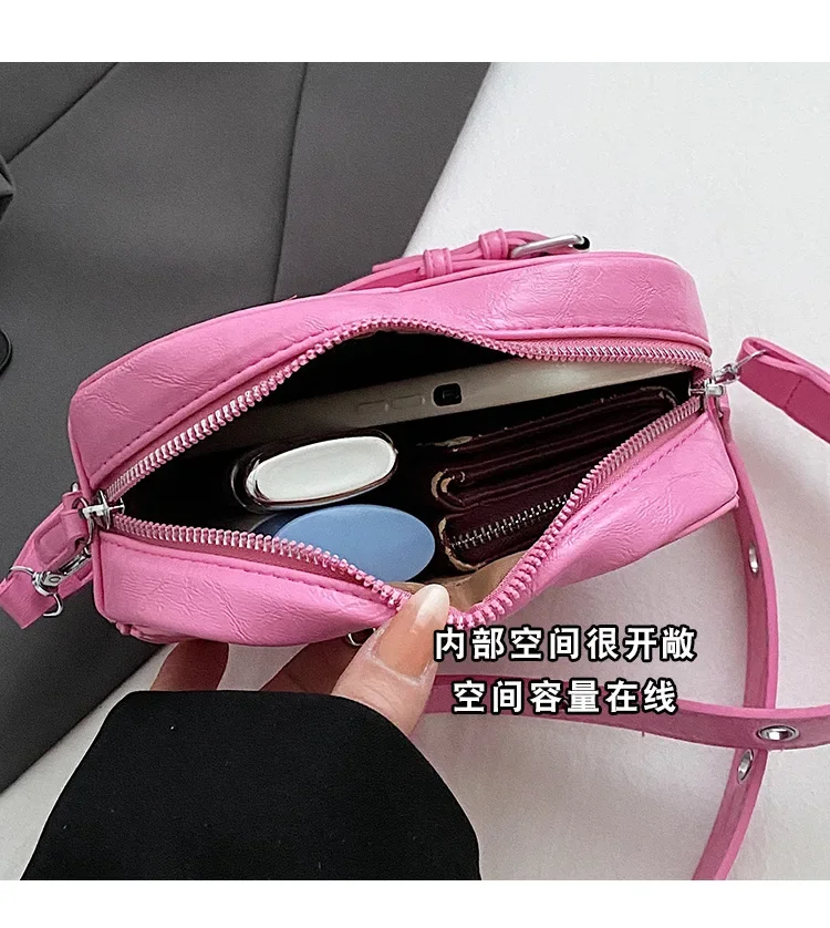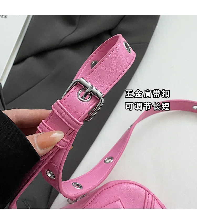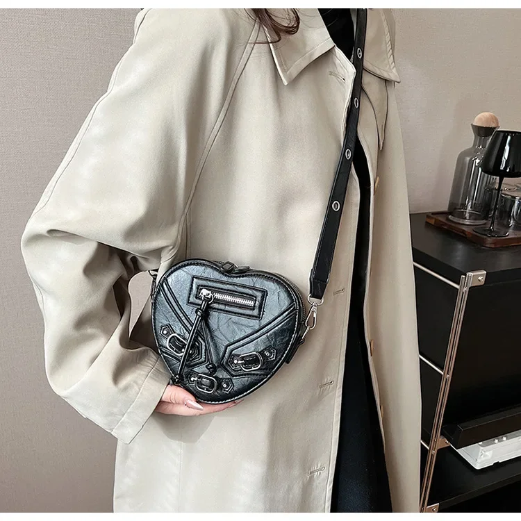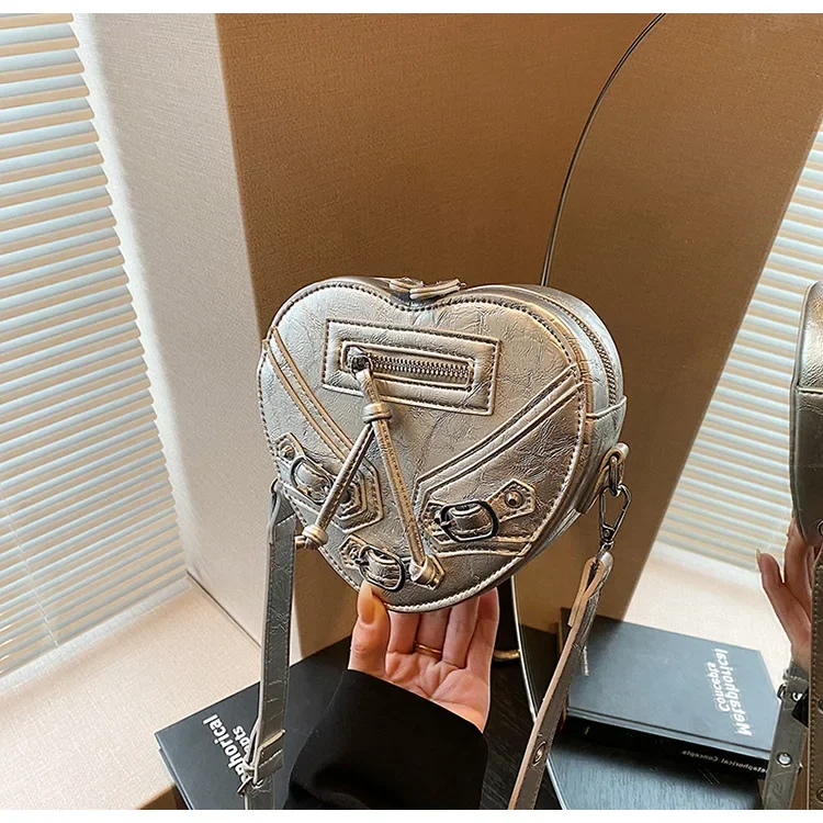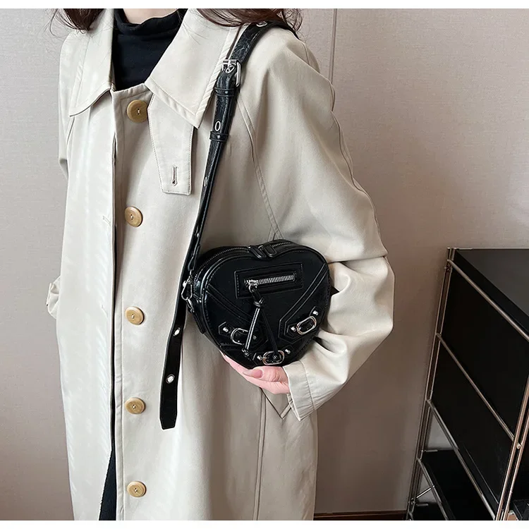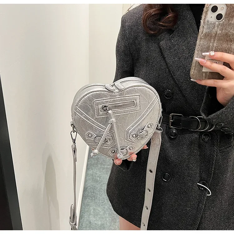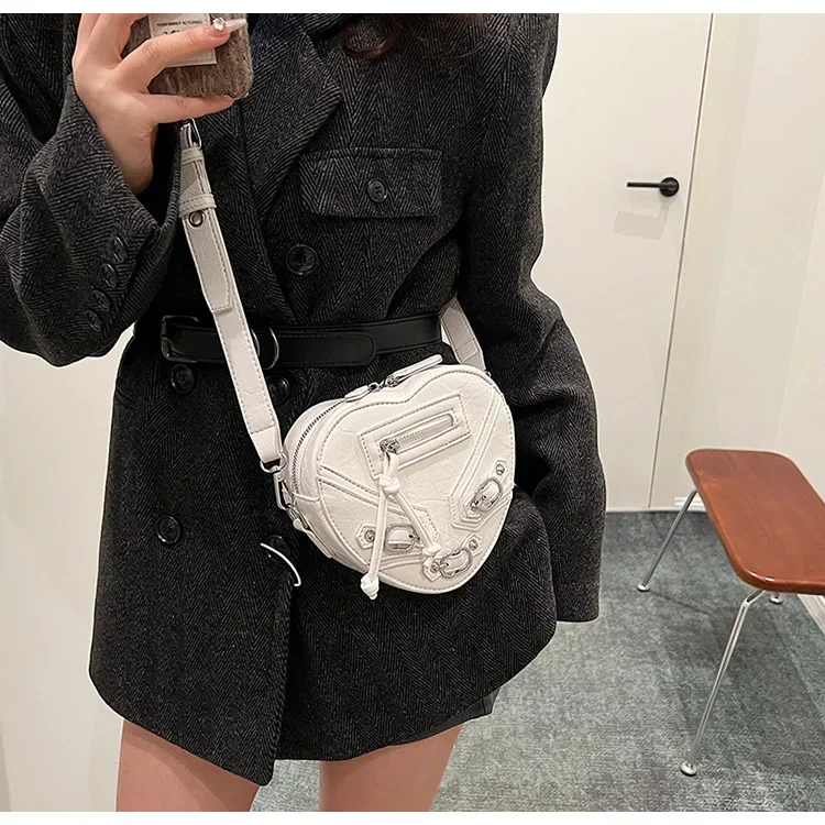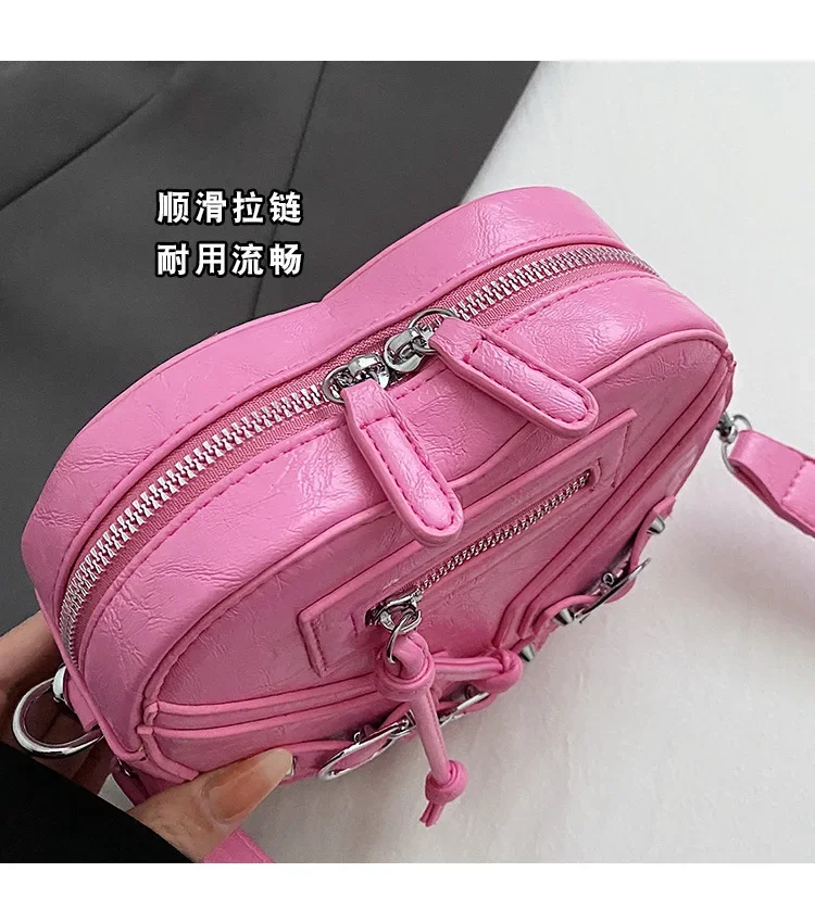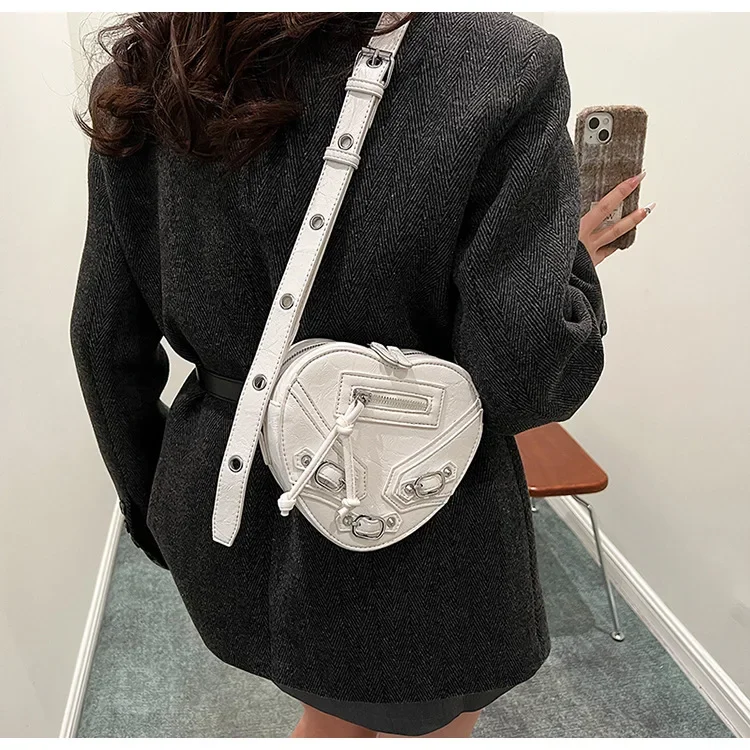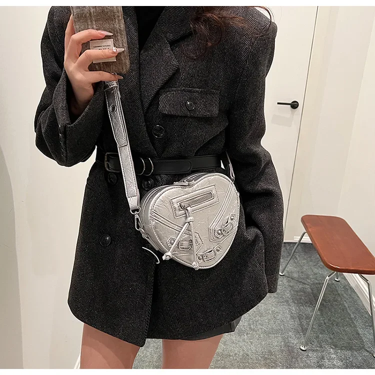 Heart Shaped Mini Exquisite Bags Rivet Decoration Spice Girl Style Bags Unique Design Motorcycle Style Crossbody Bag Korea Sweet