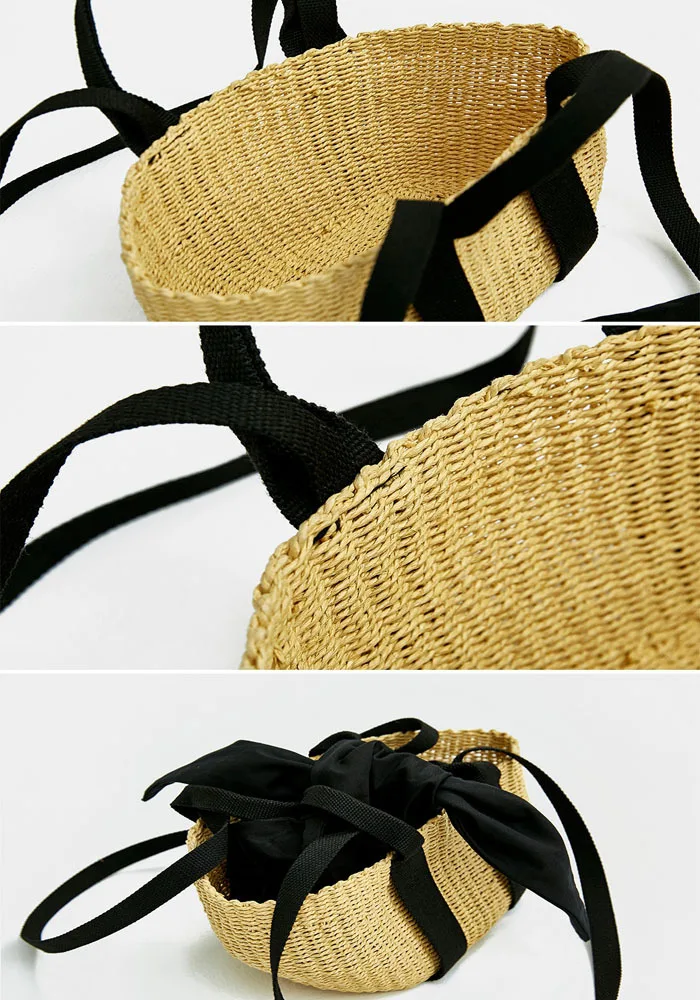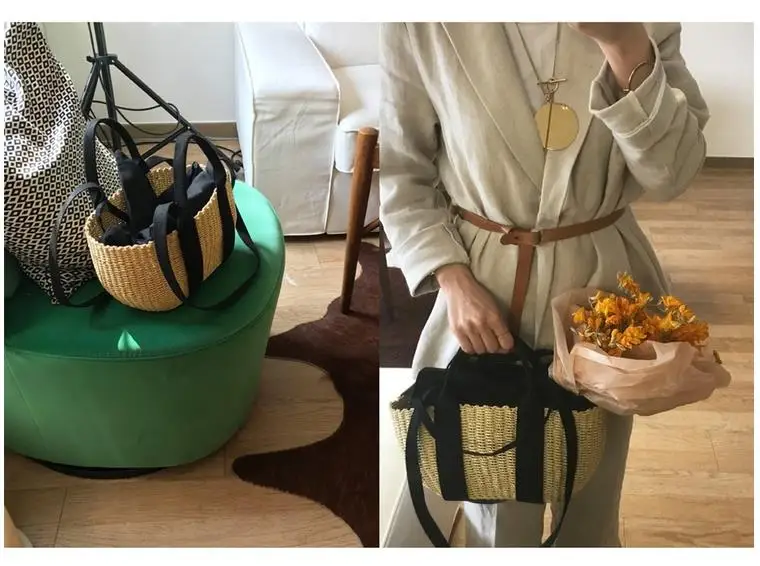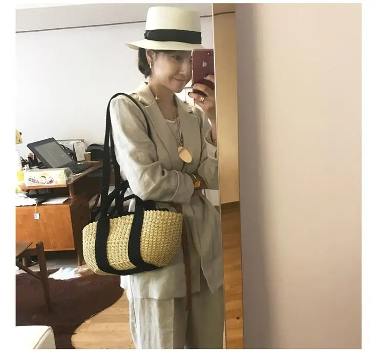 Herald Fashion Female Bucket Cylindrical Straw Bags Summer Beach Bags Wheat-straw Woven Women Crossbody Bags Shoulder Tote Bag