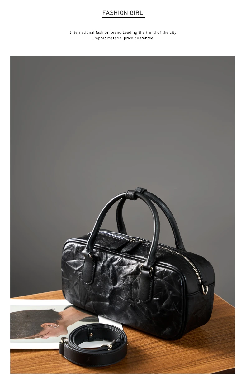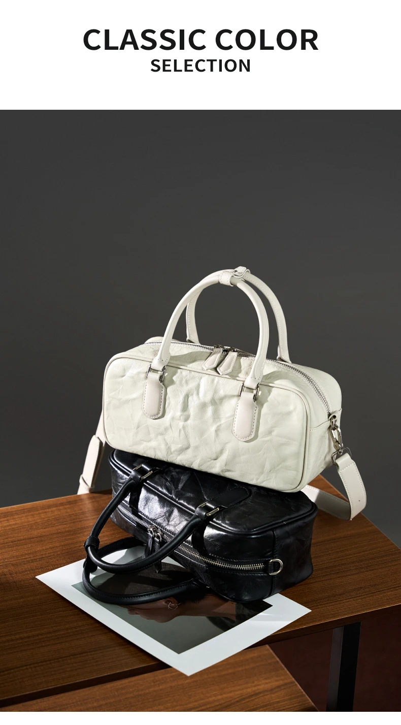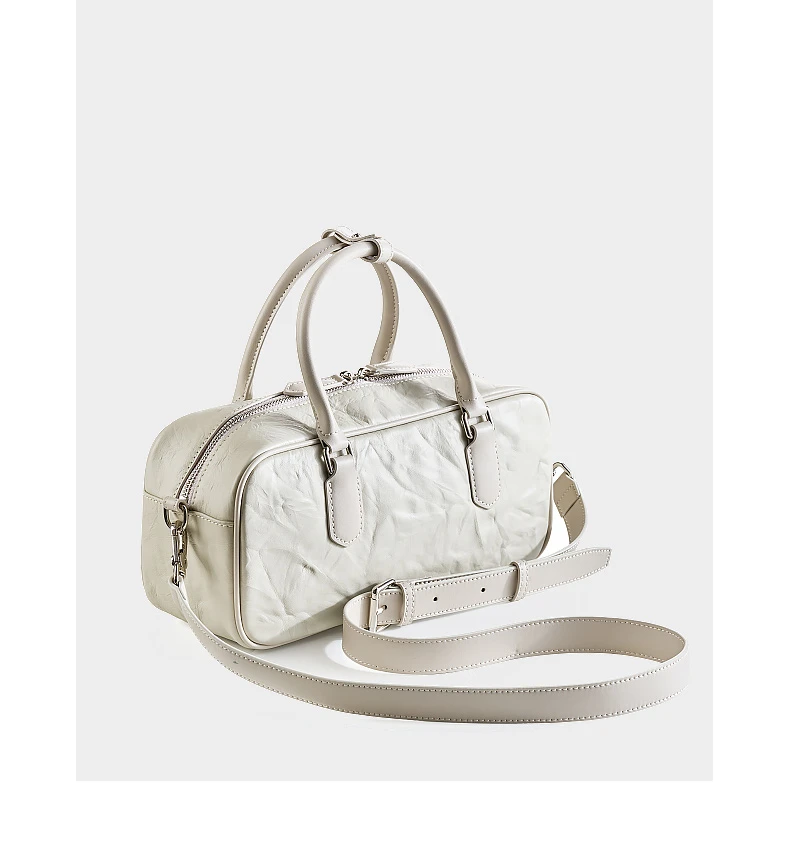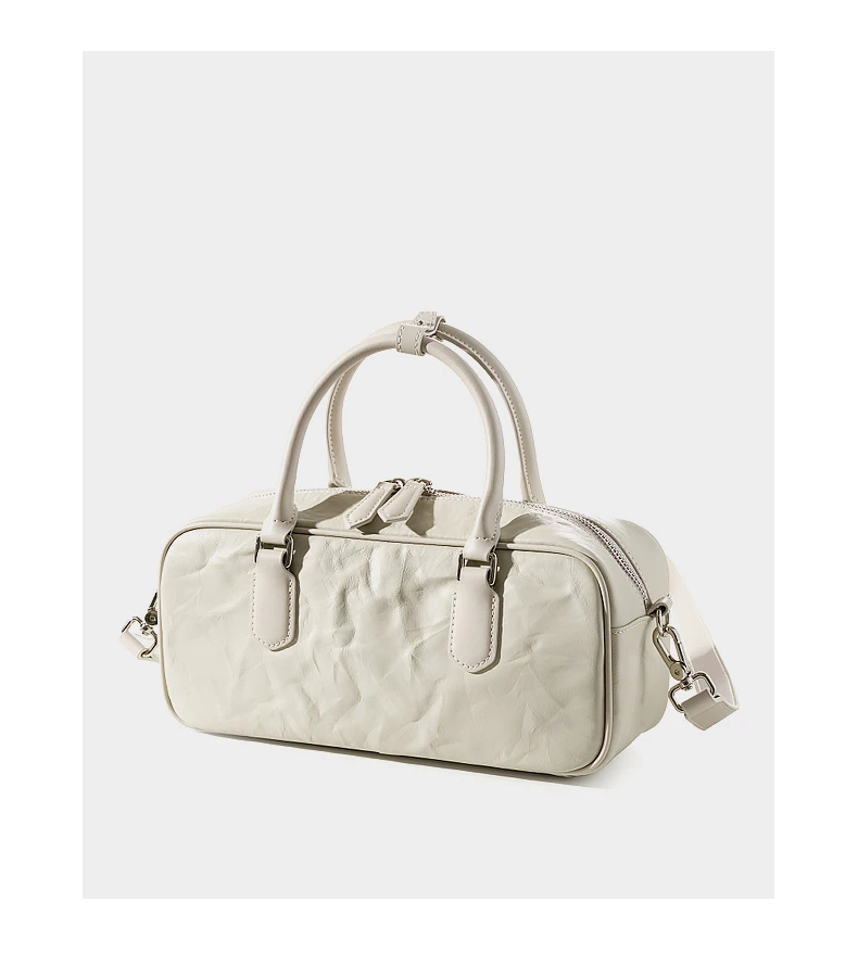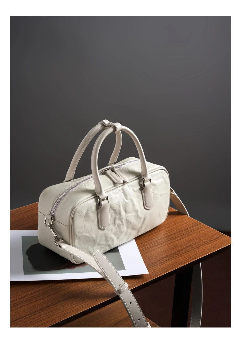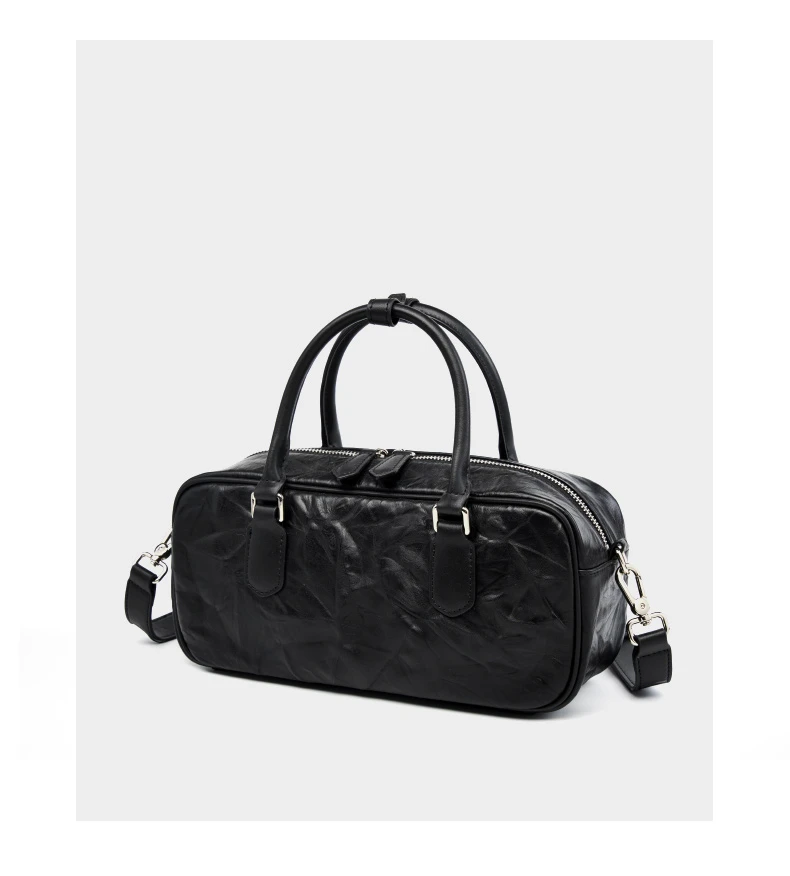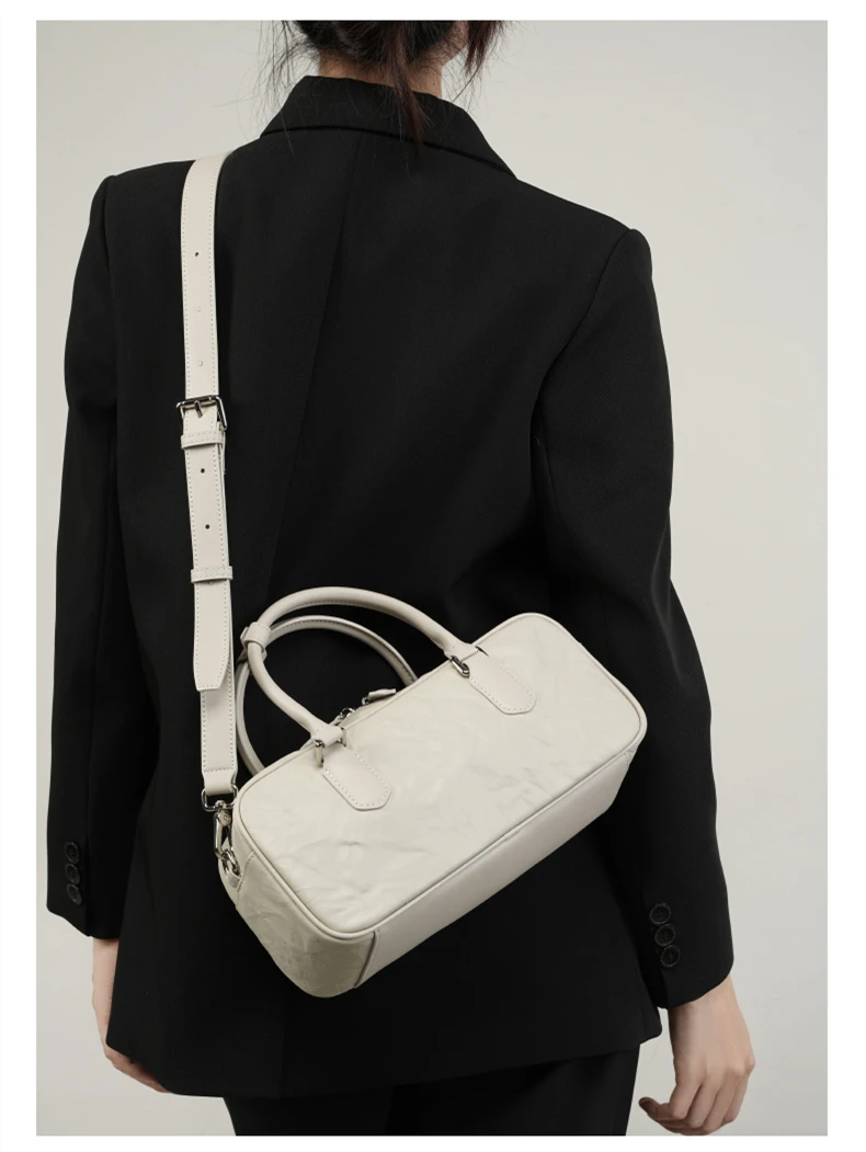 Hifashion Pleated Genuine Leather Boston Shoulder Crossbody Bags For Women New 2024 Trend Designer Bowling Tote Ladies Handbags