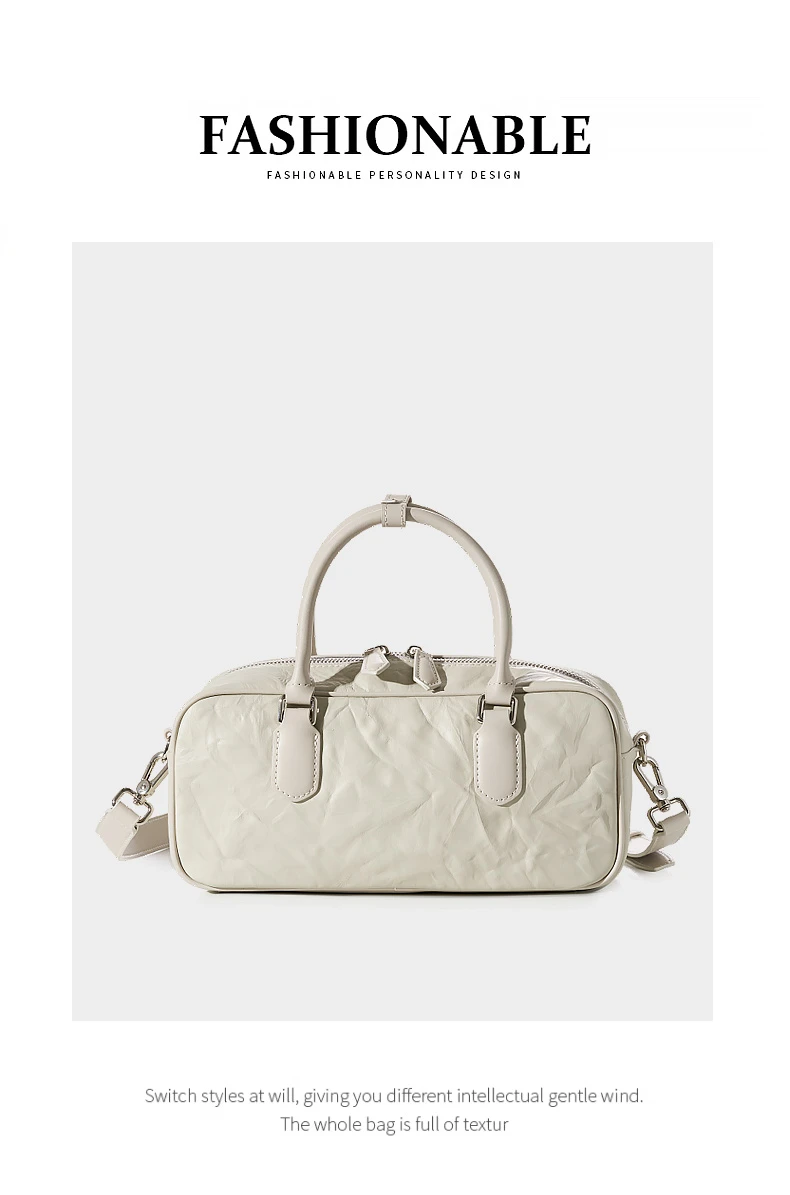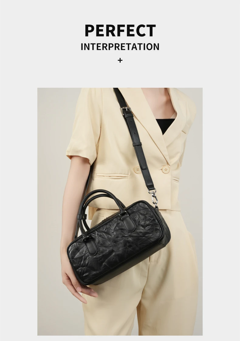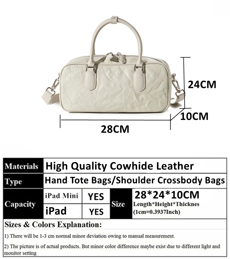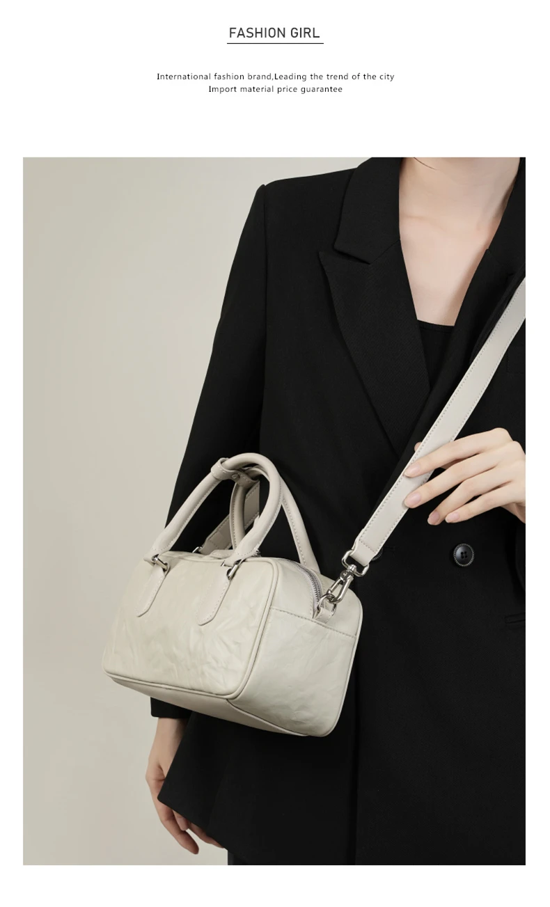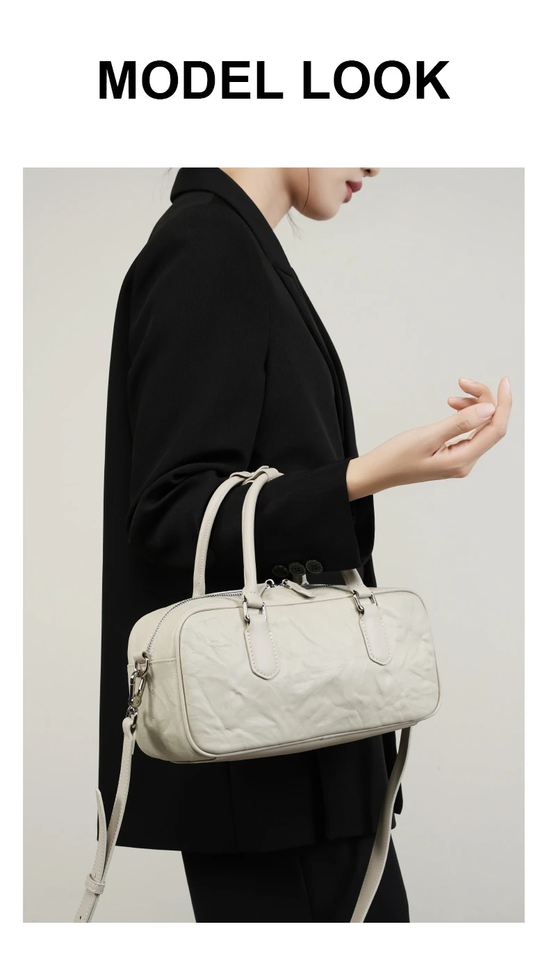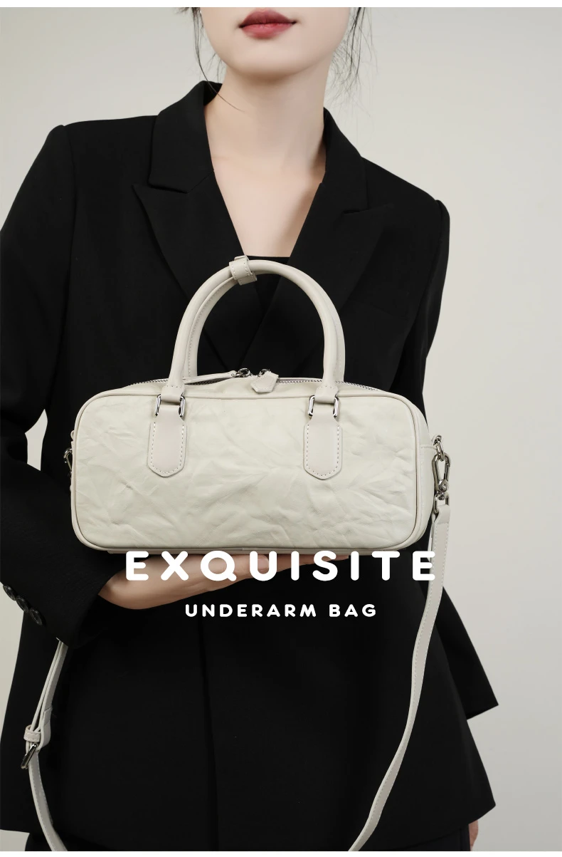 Hifashion Pleated Genuine Leather Boston Shoulder Crossbody Bags For Women New 2024 Trend Designer Bowling Tote Ladies Handbags