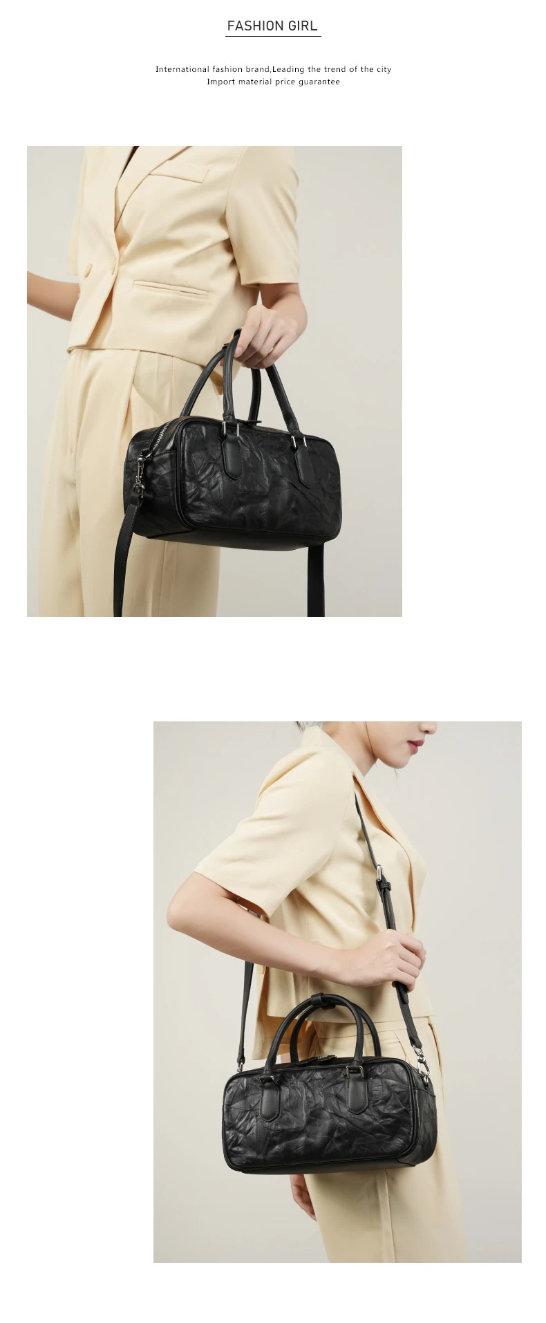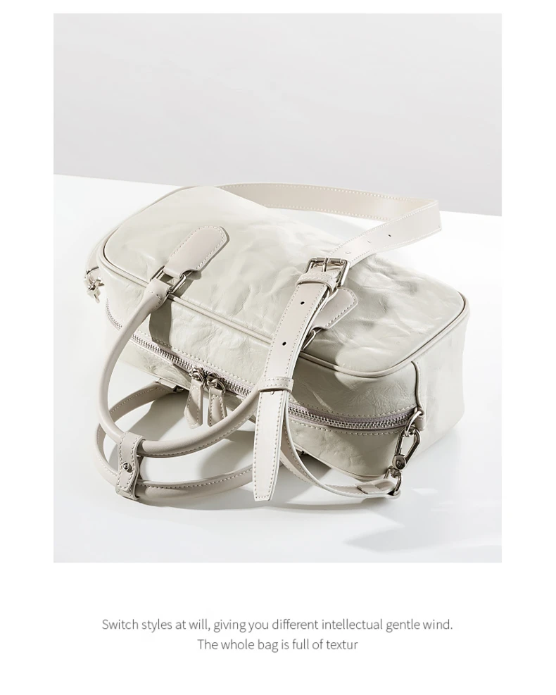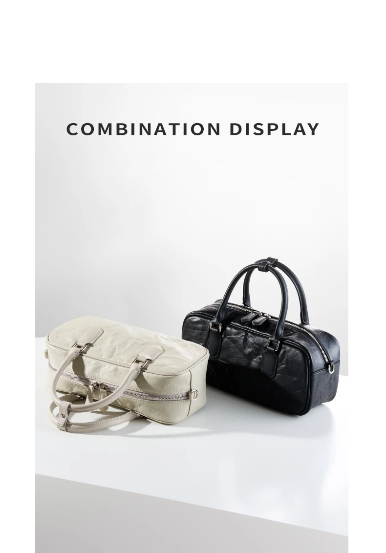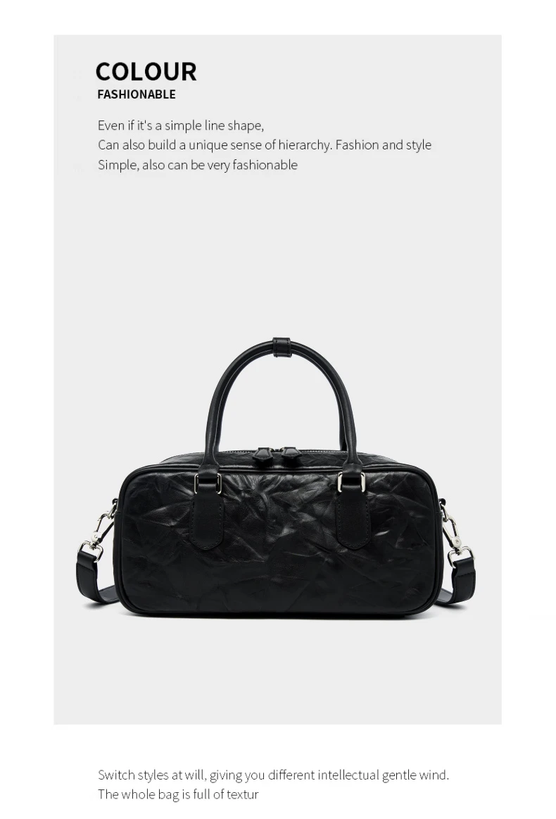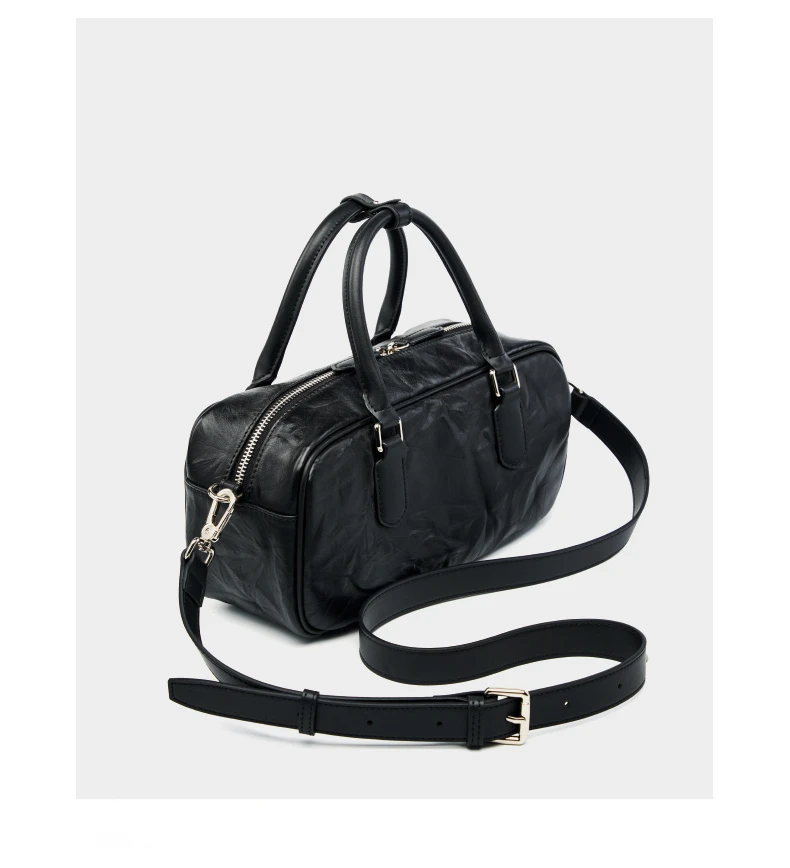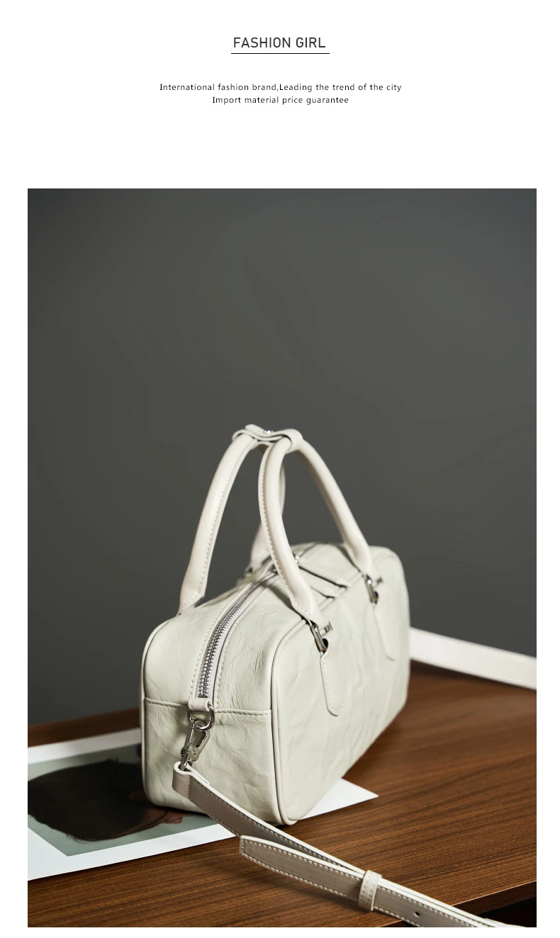 Hifashion Pleated Genuine Leather Boston Shoulder Crossbody Bags For Women New 2024 Trend Designer Bowling Tote Ladies Handbags