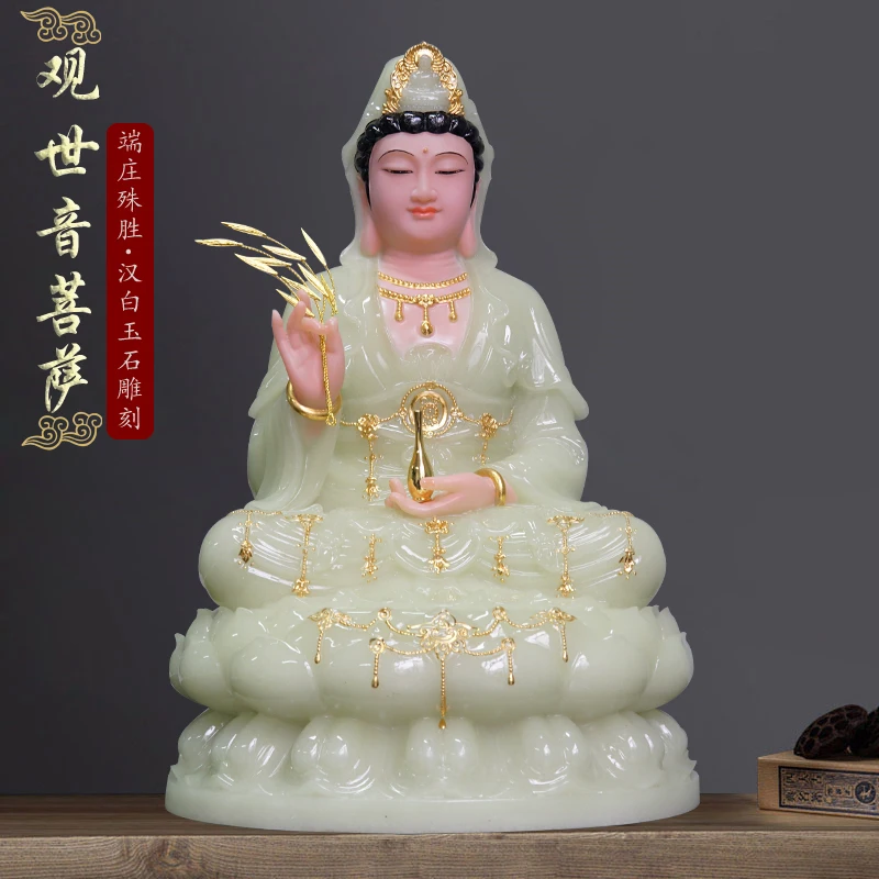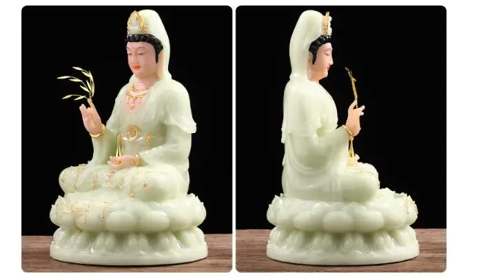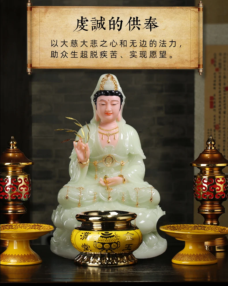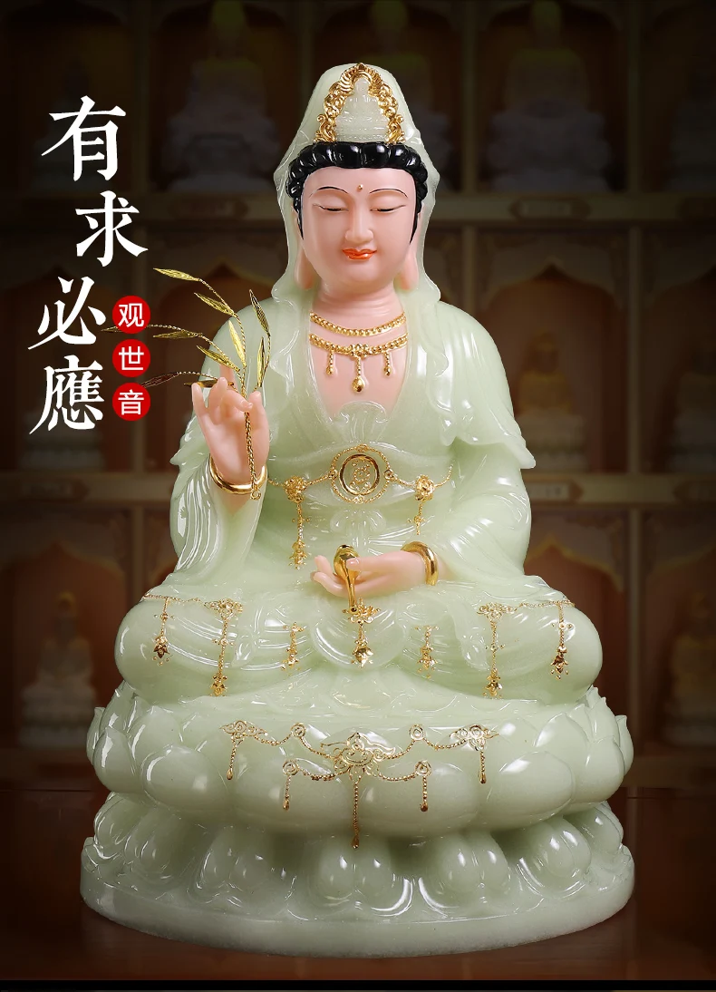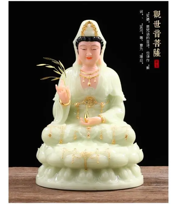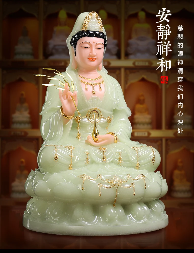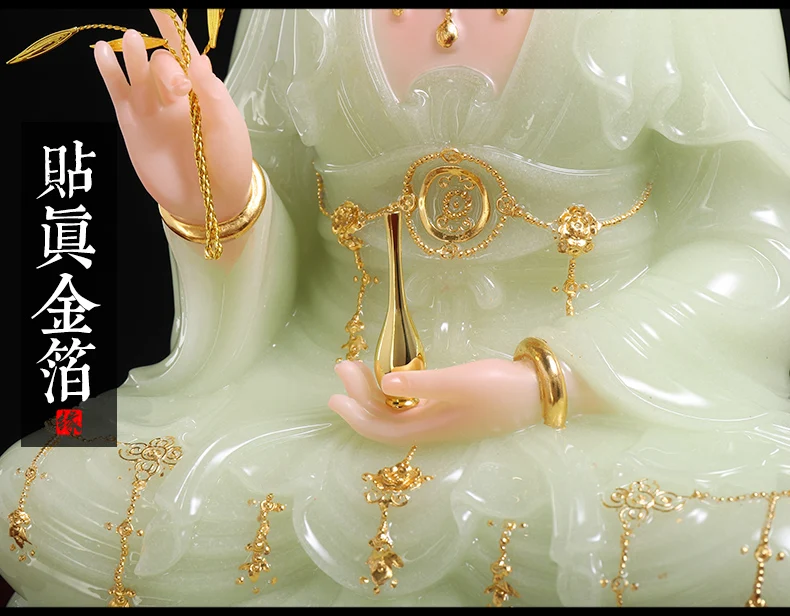 high-grade buddha Guanyin Avalokitesvara Family efficacious Talisman bless safe health good luck jade gilding Buddha statue