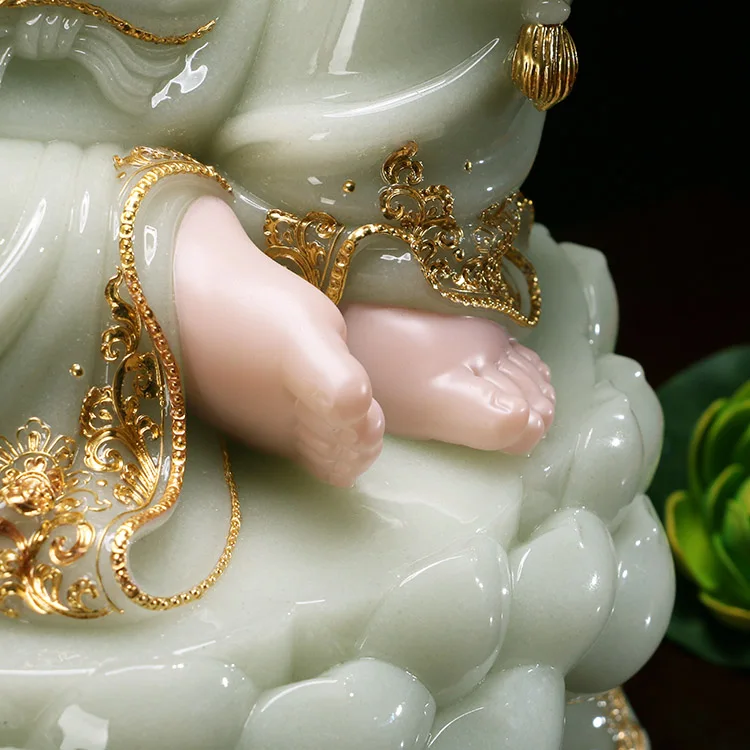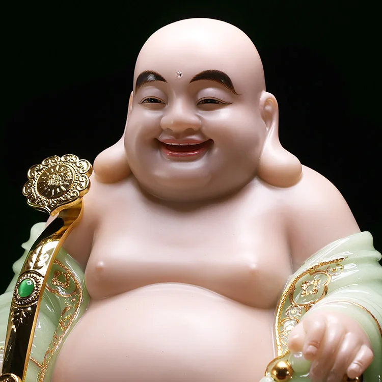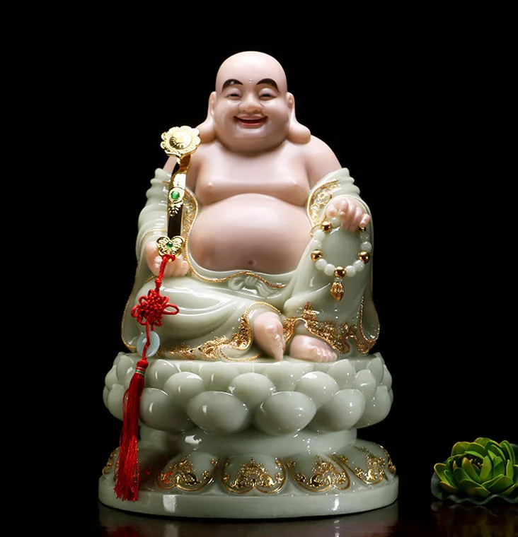 high grade home shop TOP Talisman Mascot Maitreya God of wealth Buddha jade gilding carving Sculpture statue 30cm