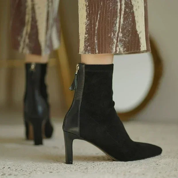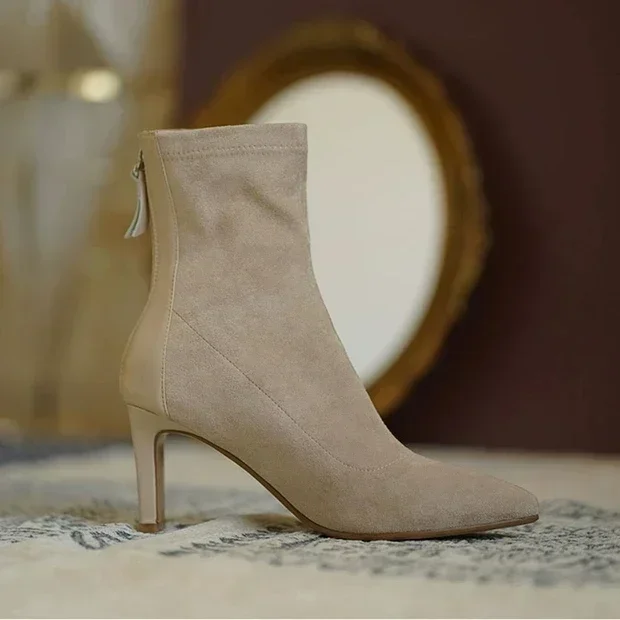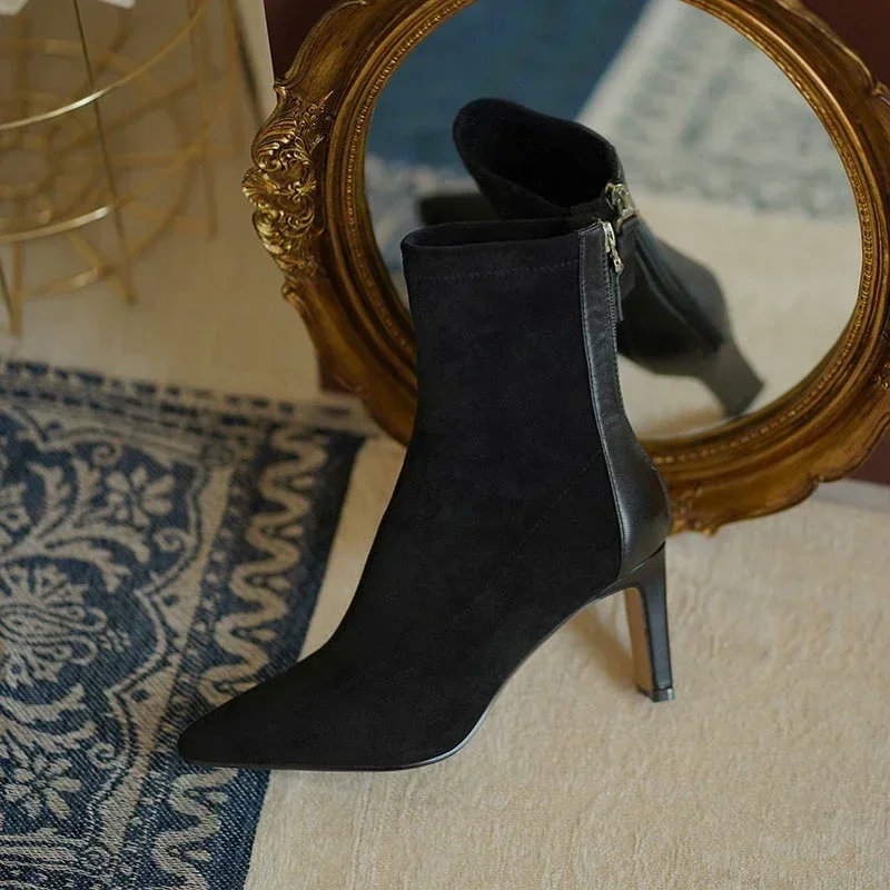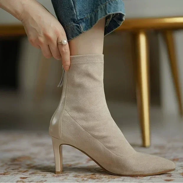 High Heel Boots Women's 2023 New Korean Style Autumn and Winter Mid Heel Stretch Thin Boots Pointed Toe Sock Boots Women