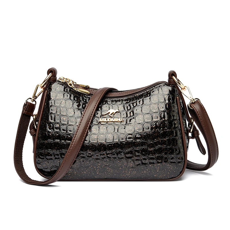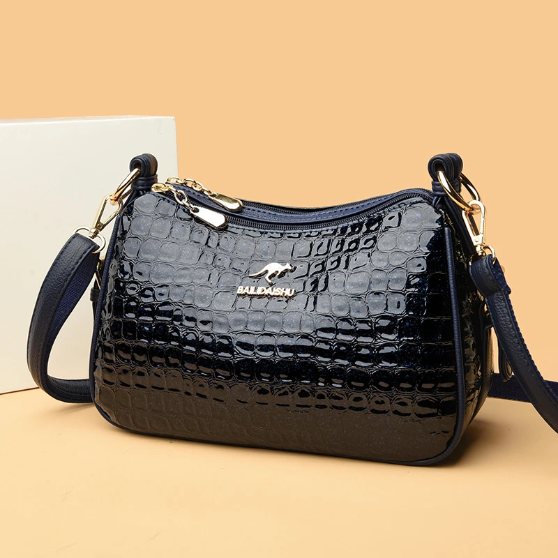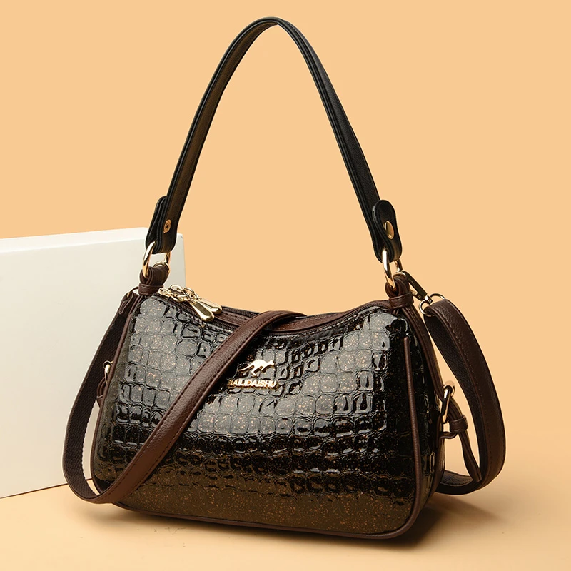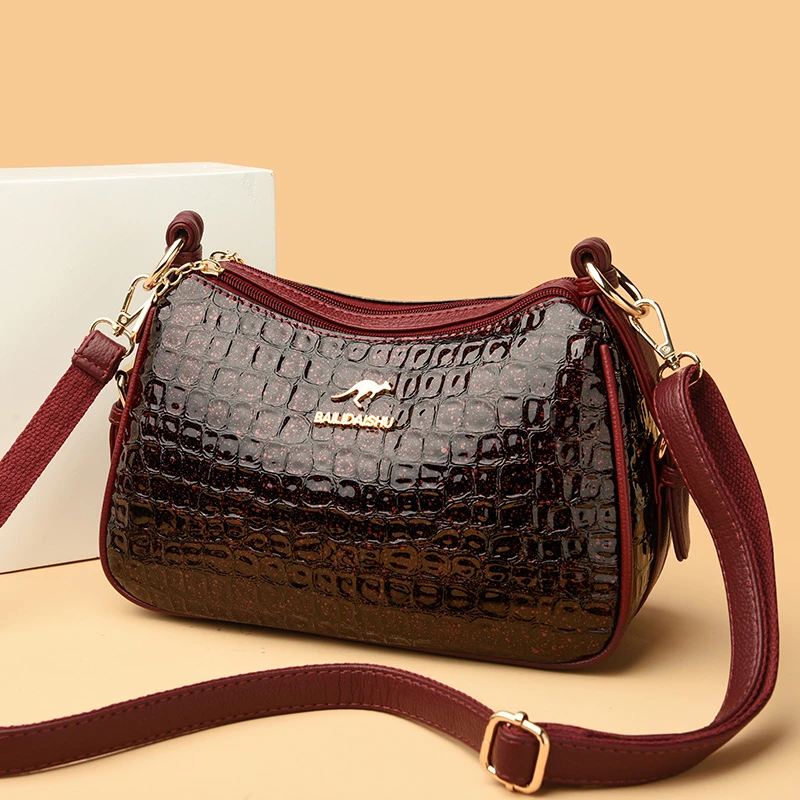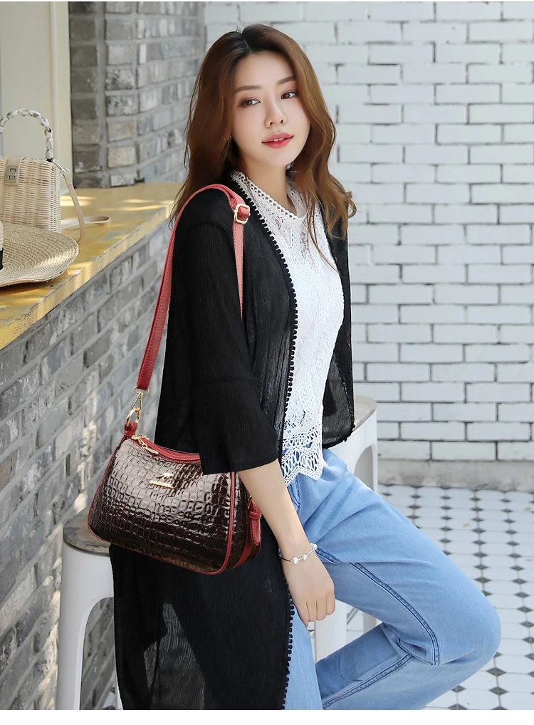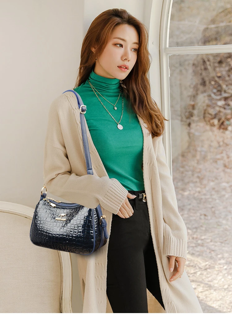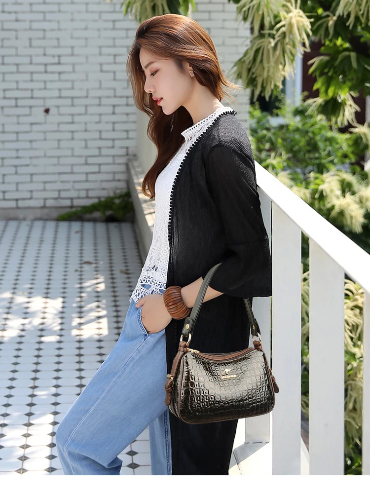 High Quality Crocodile Leather Pattern Shoulder Messenger Bag for Women 2023 Solid Color Luxury Handbags Women Bags