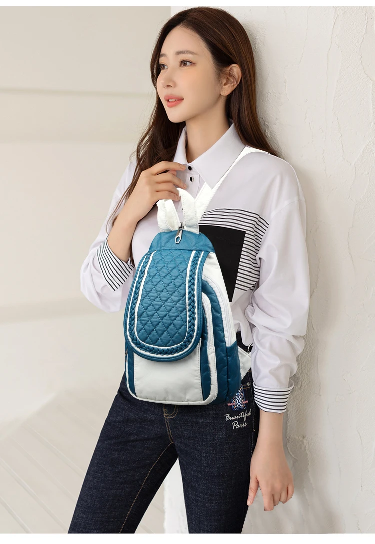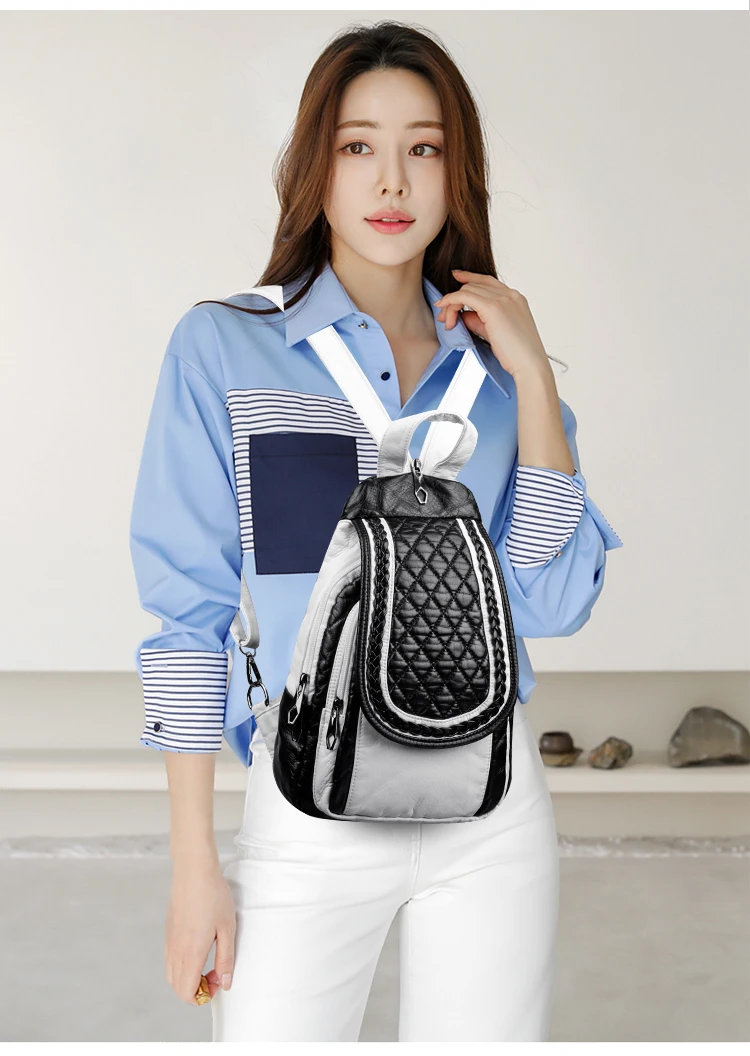 NEW Fashion Backpack Women Soft Leather Backpack Female Grey High Quality Travel Back Pack School Backpacks for Girls Sac A Dos