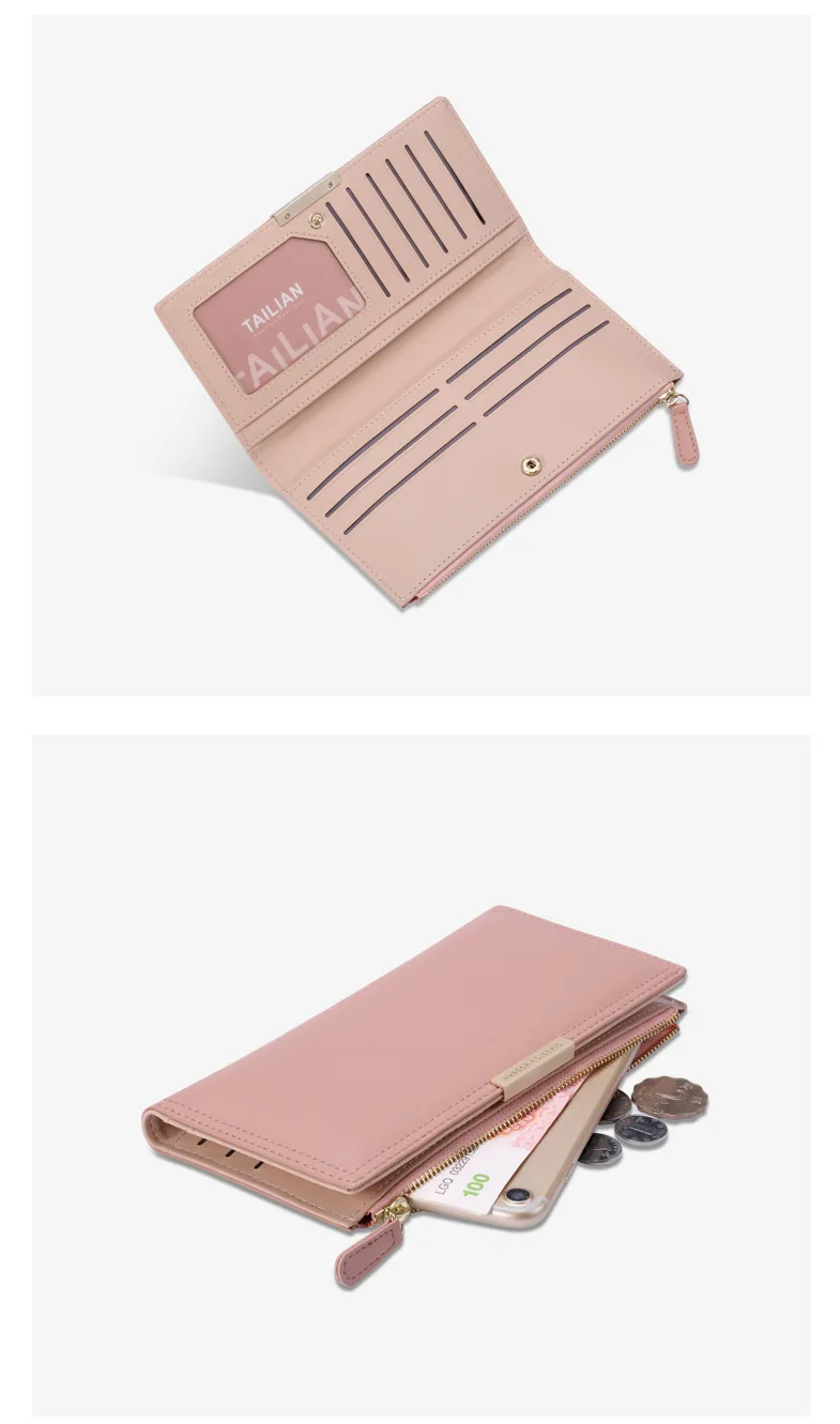 High Quality Women Long Wallet Pu Leather Wallets for Woman Zipper Large Ladies Clutch Bag Female Coin Purse Card Holder