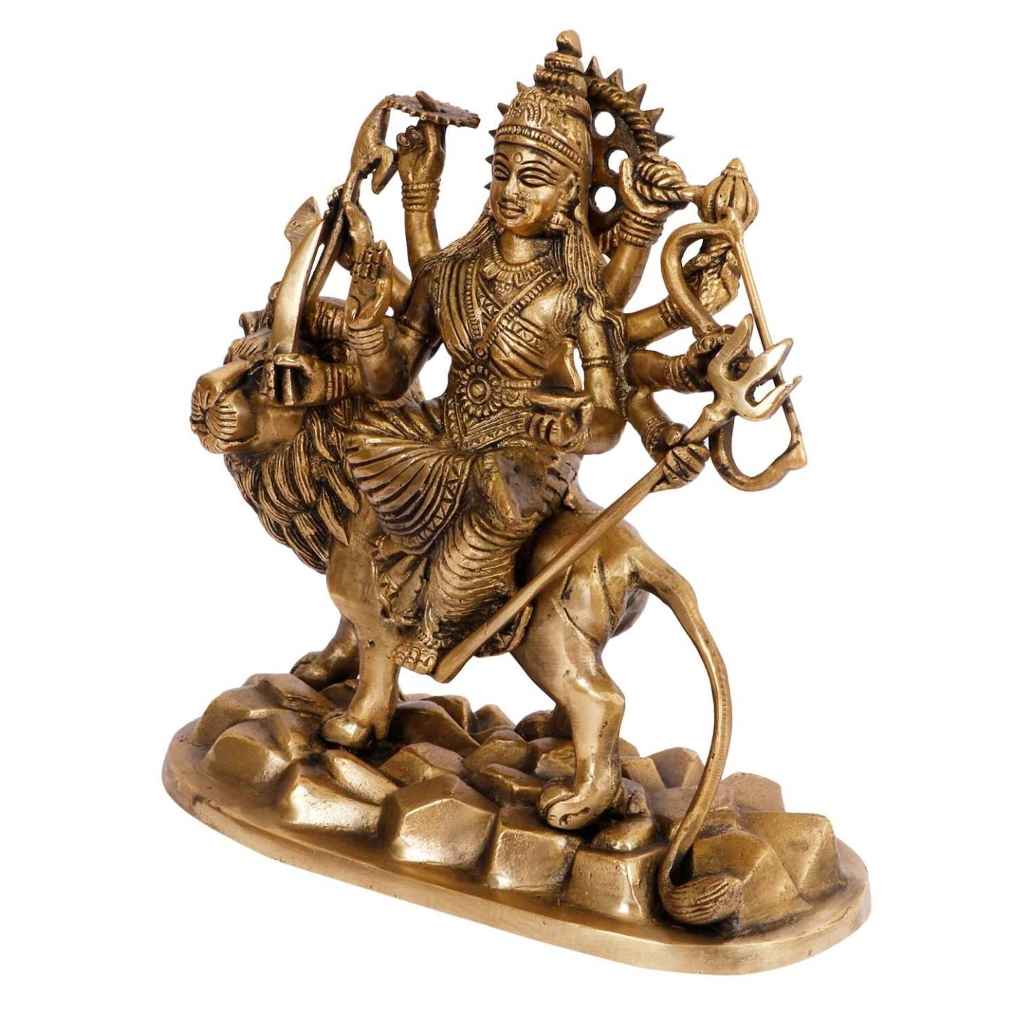 Hindu God Lord Brass Maa Durga Idol Sitting On Lion Idol Statue Figurines