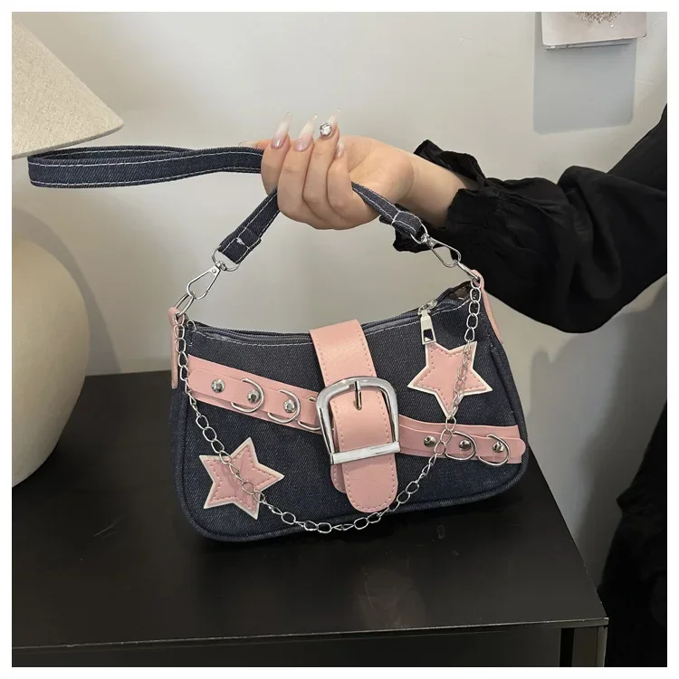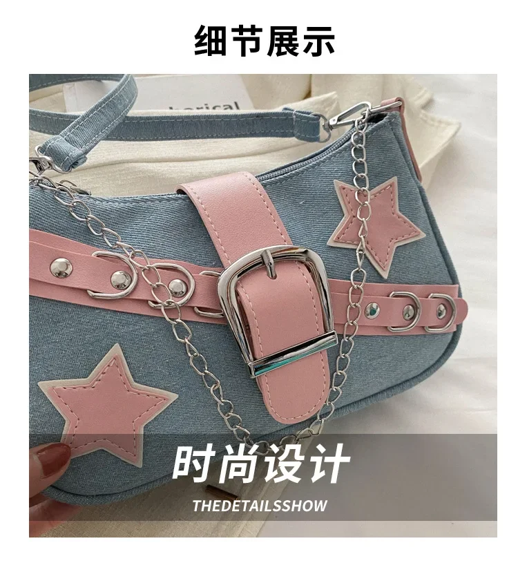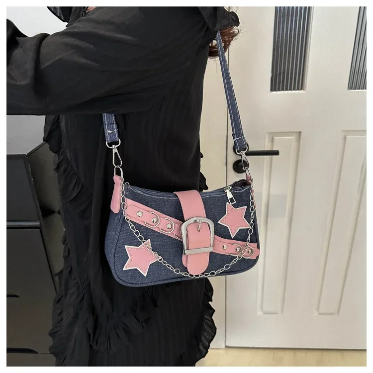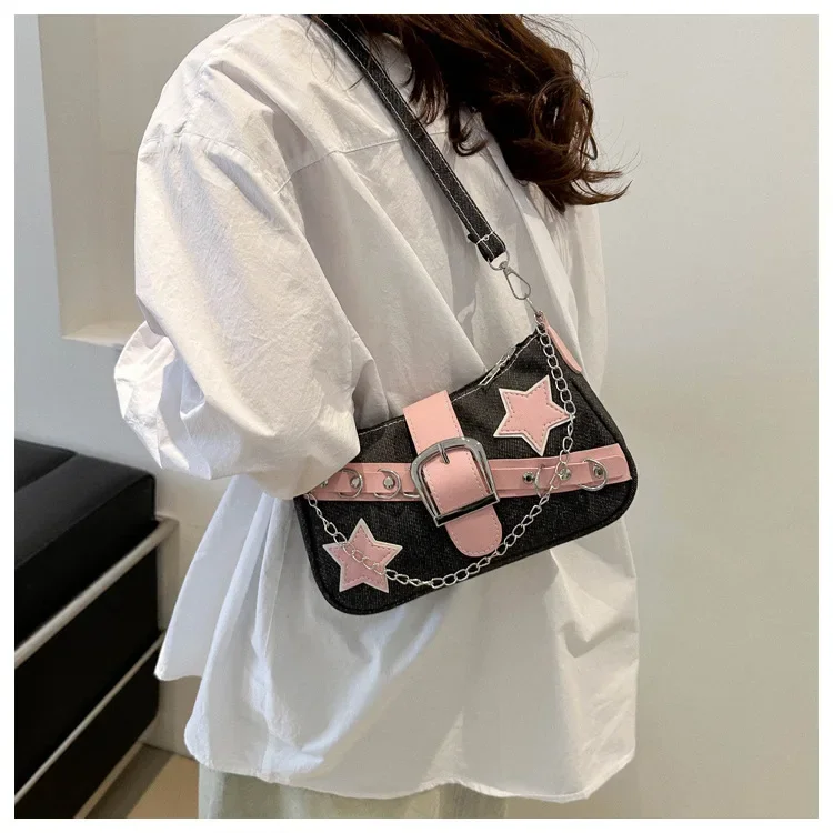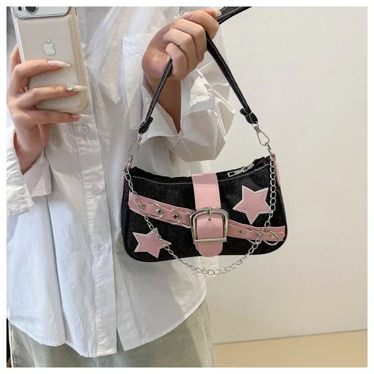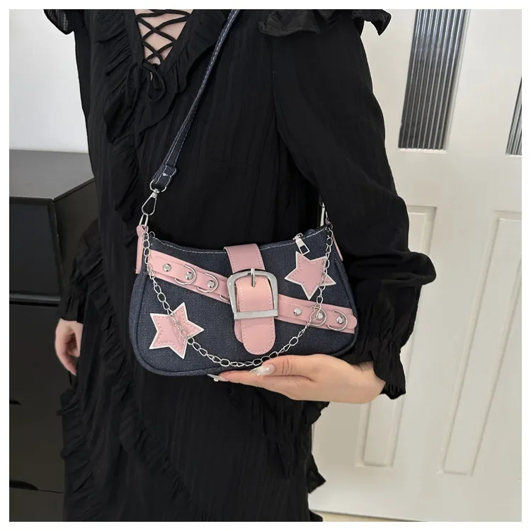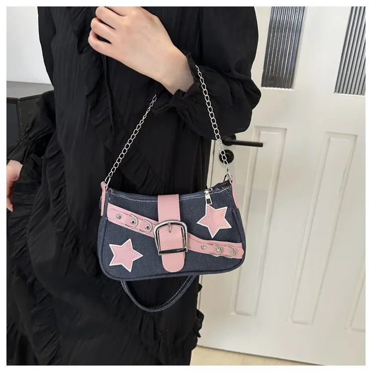 Hip-Hop Hot Girl Fashion Belt Rivet Star Chain Shoulder Bag 2024 New Personalized Crossbody Bag Designer Bags Luxury for Women