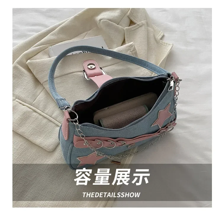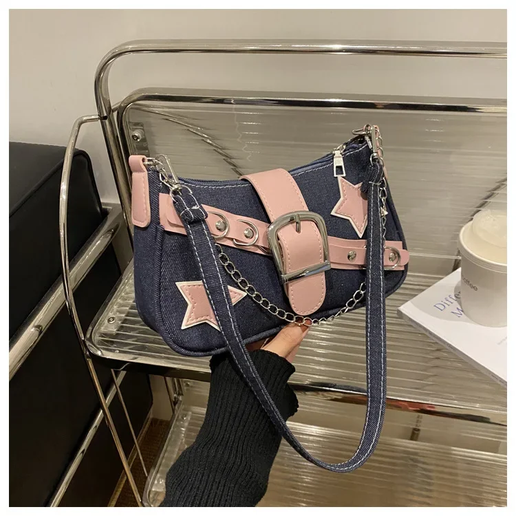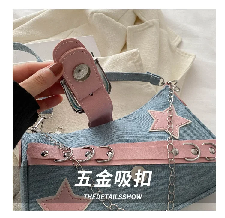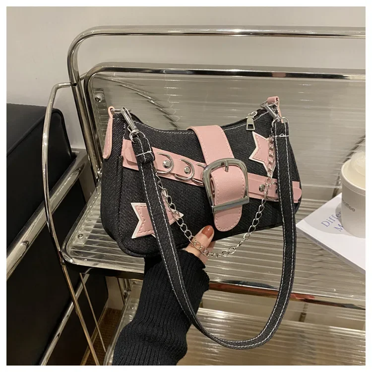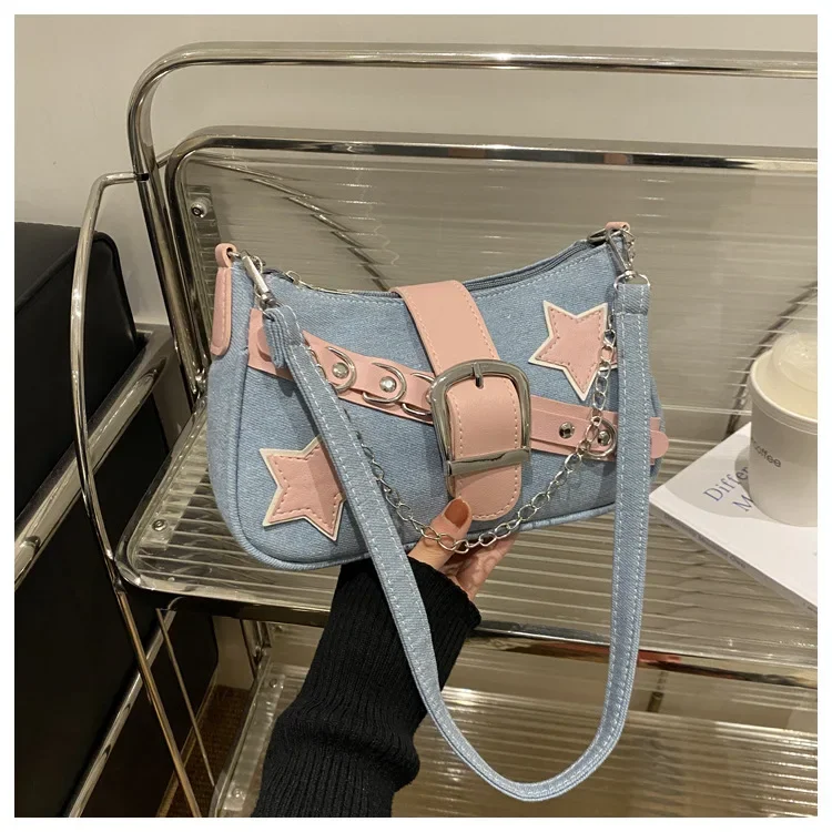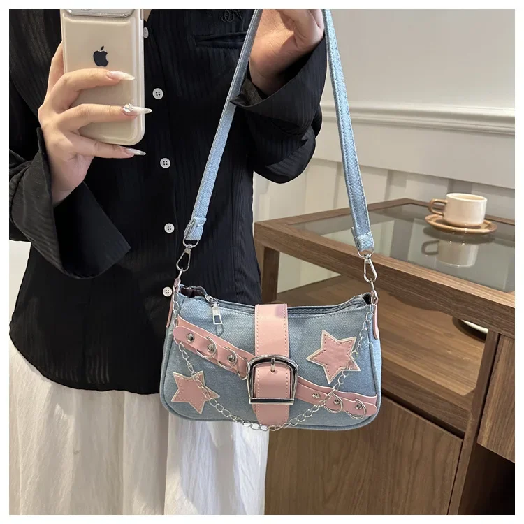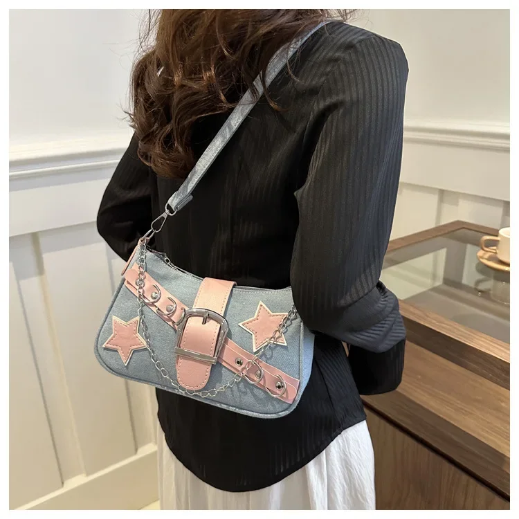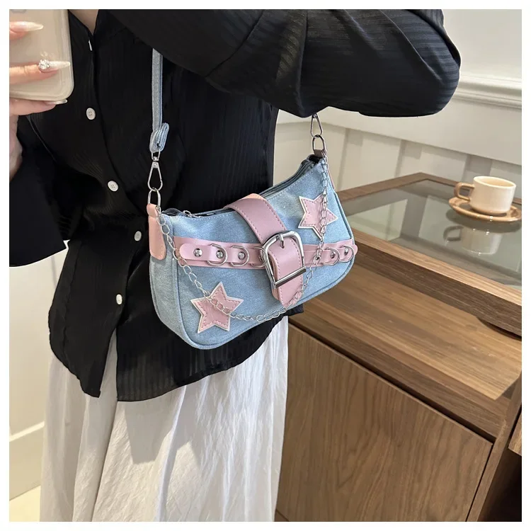 Hip-Hop Hot Girl Fashion Belt Rivet Star Chain Shoulder Bag 2024 New Personalized Crossbody Bag Designer Bags Luxury for Women