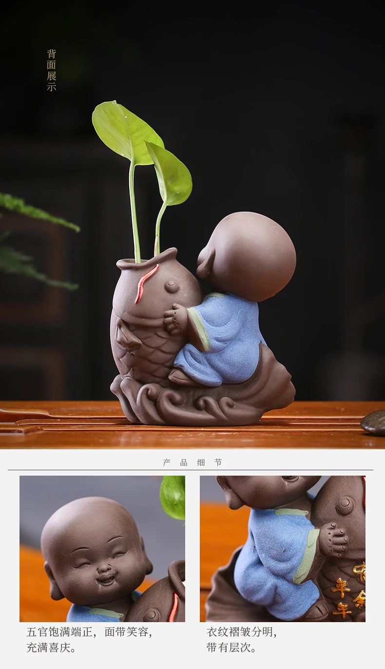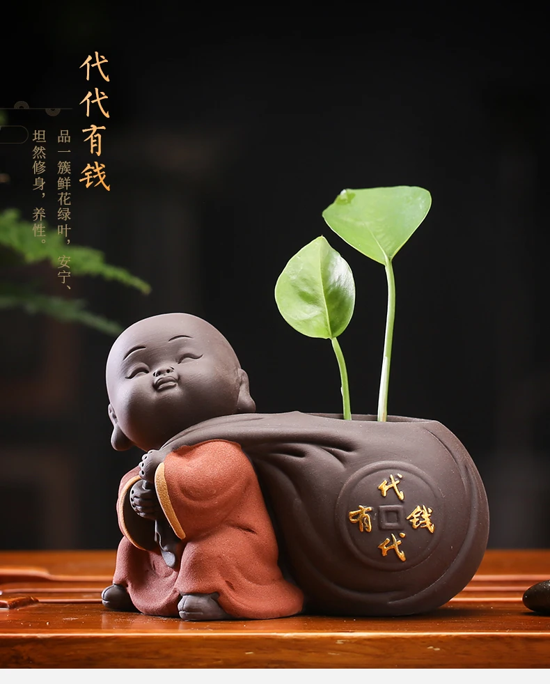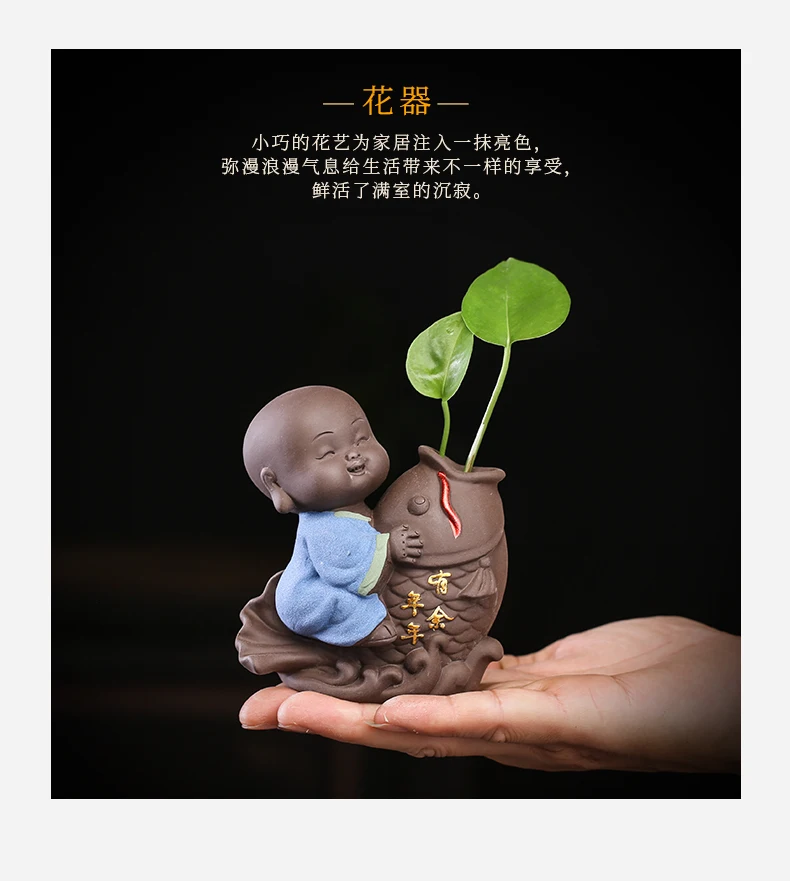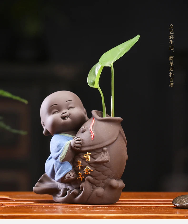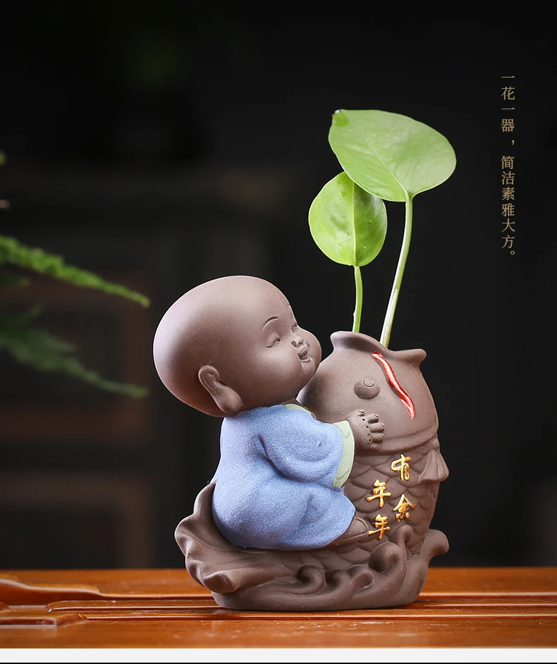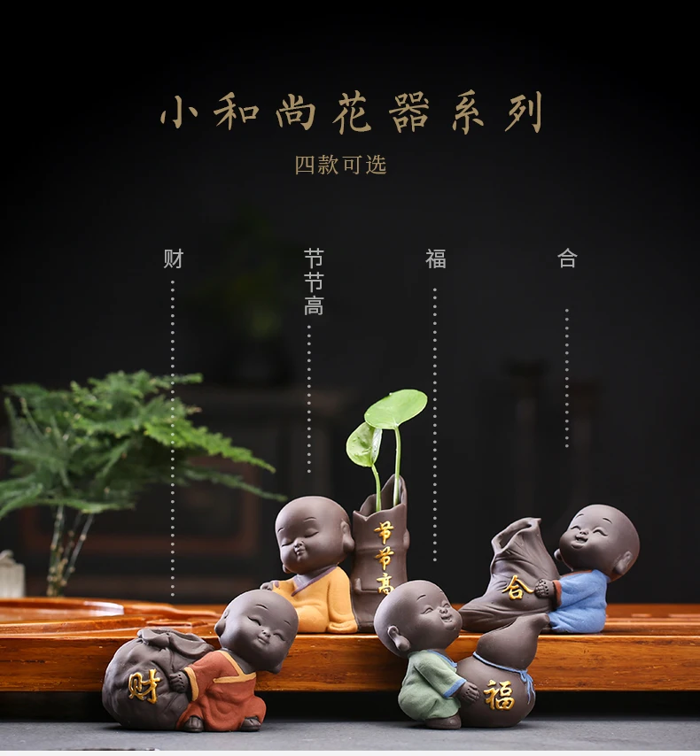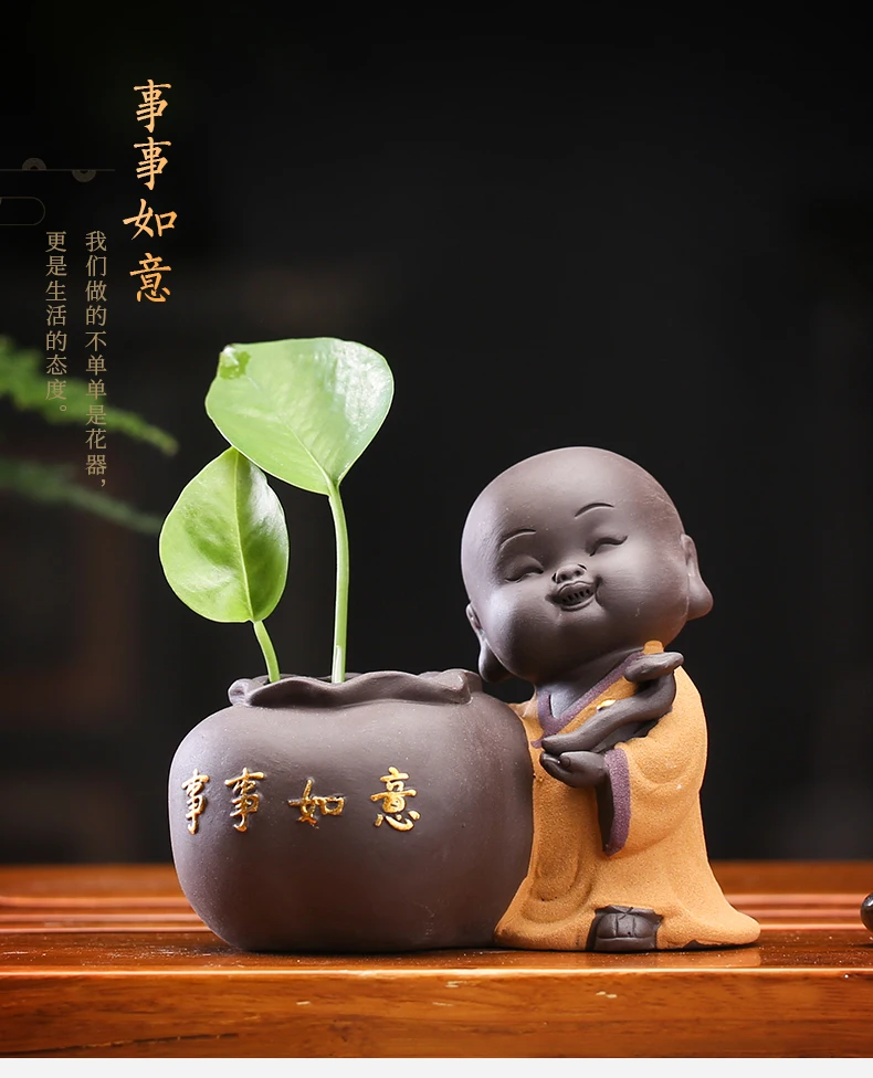 Tea set accessories ceramic tea set pet decoration small Buddha statue monk doll desktop flower pot hydroponic plant decoration