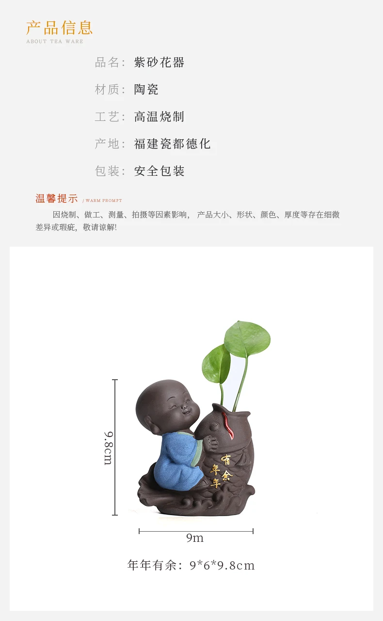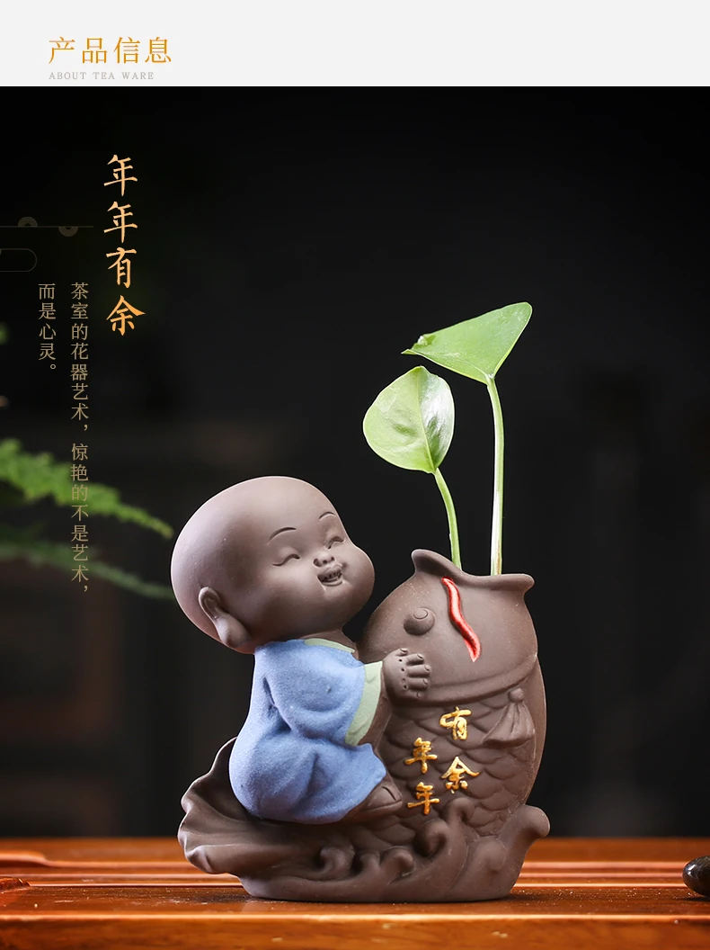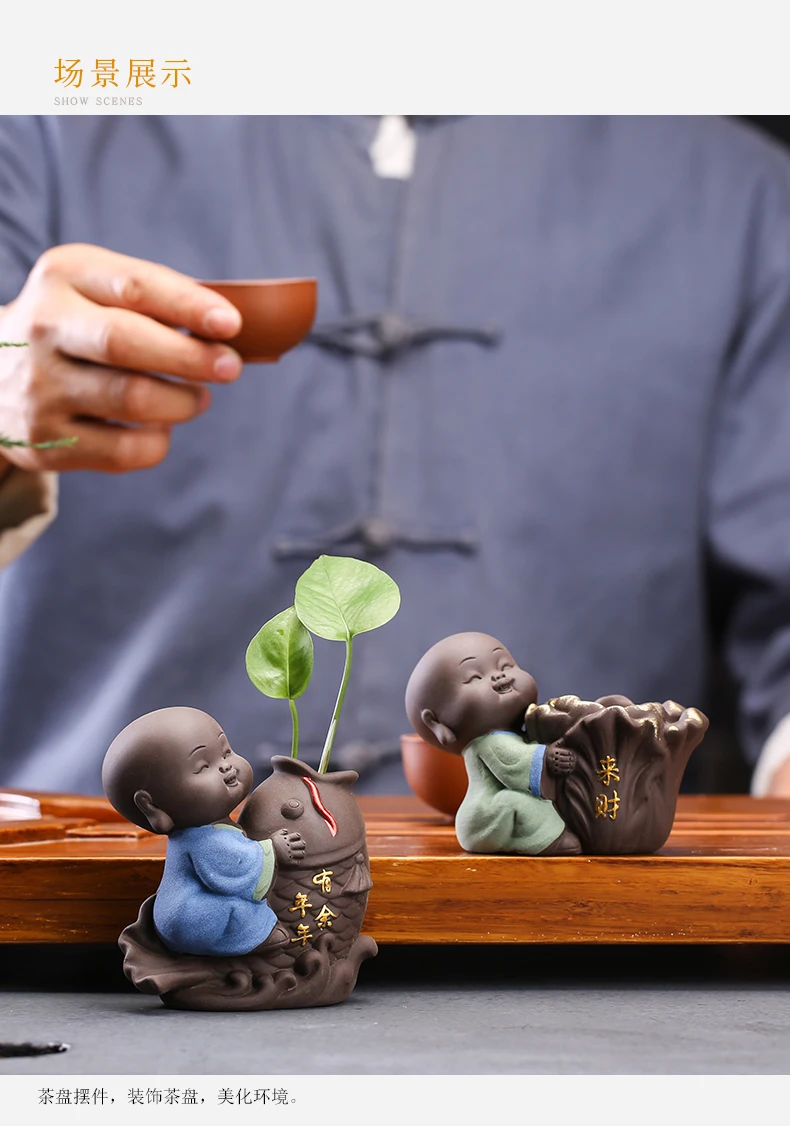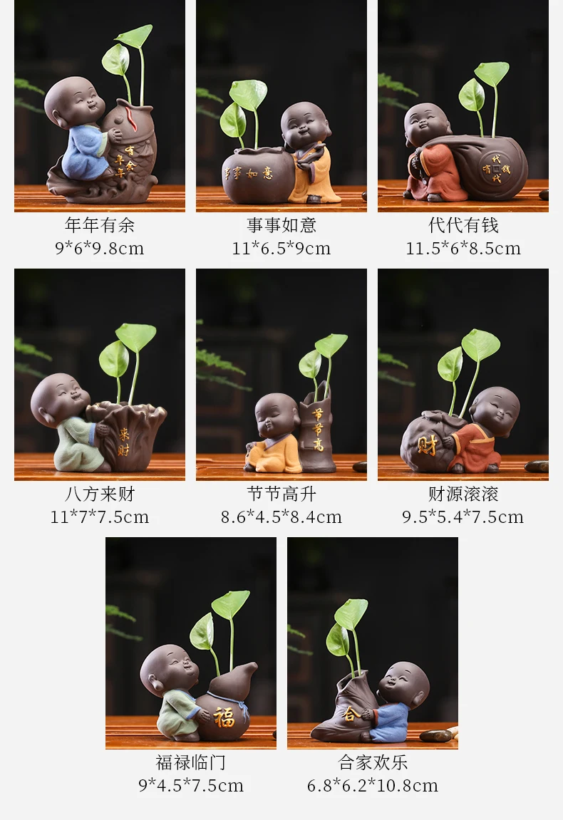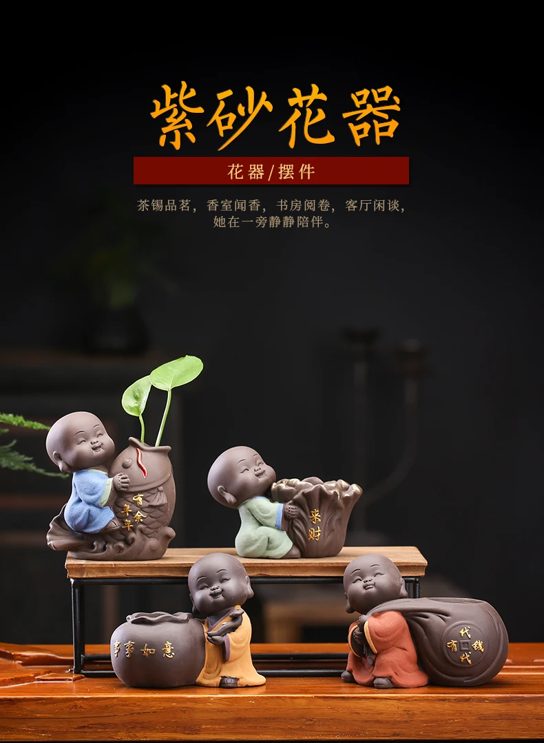 Tea set accessories ceramic tea set pet decoration small Buddha statue monk doll desktop flower pot hydroponic plant decoration