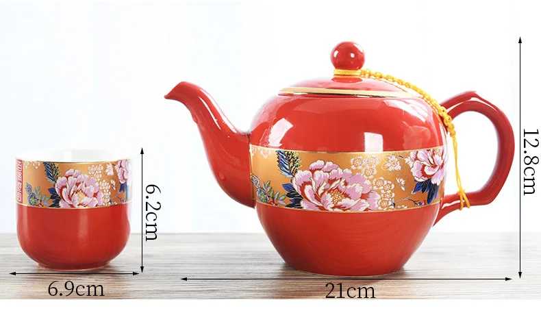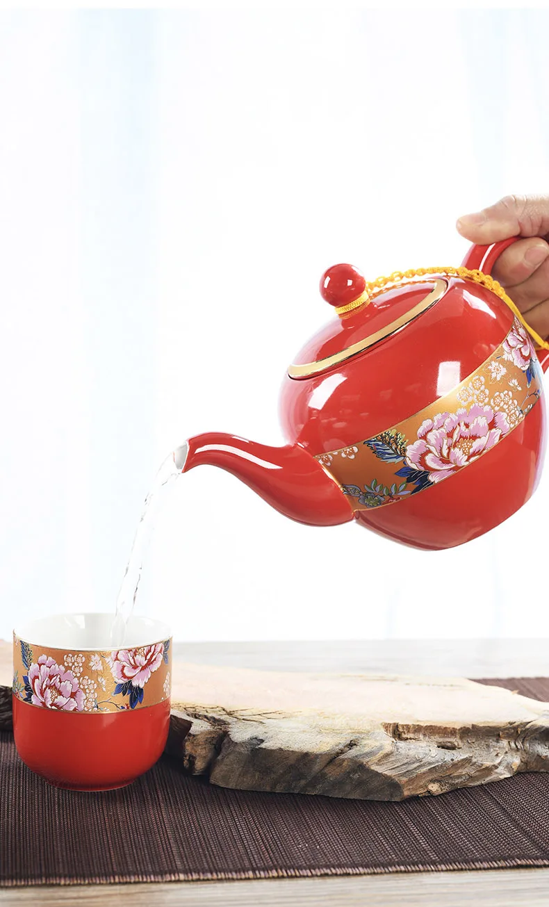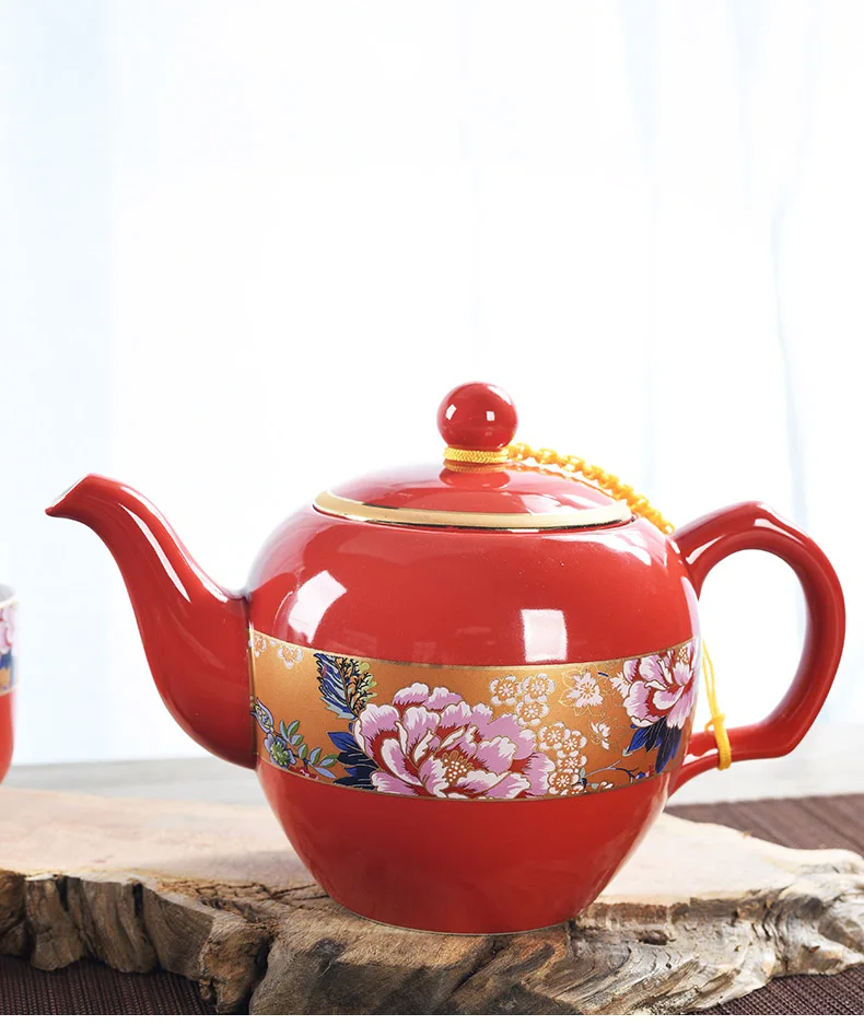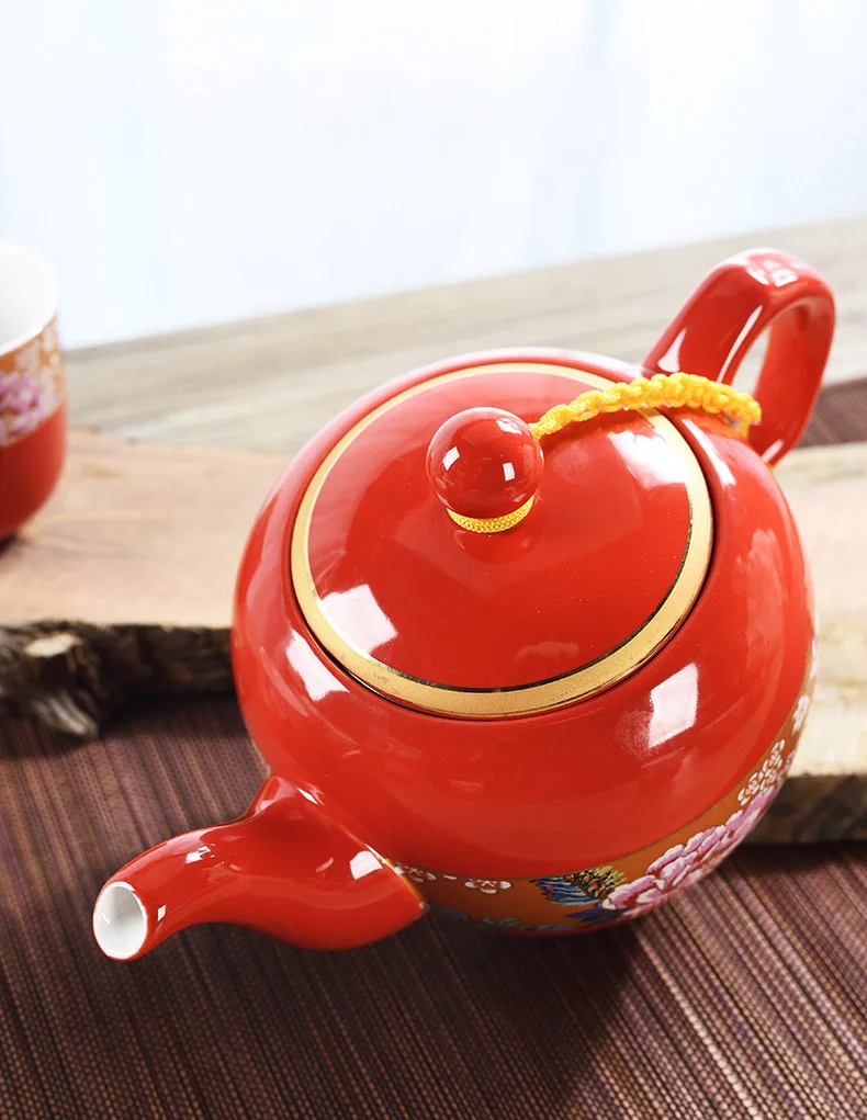 Household Ceramics Chinese Traditional Red Wedding Tea Pot Set Porcelain Kung Fu Teapot Cups Souvenir Gifts For Bride and Groom