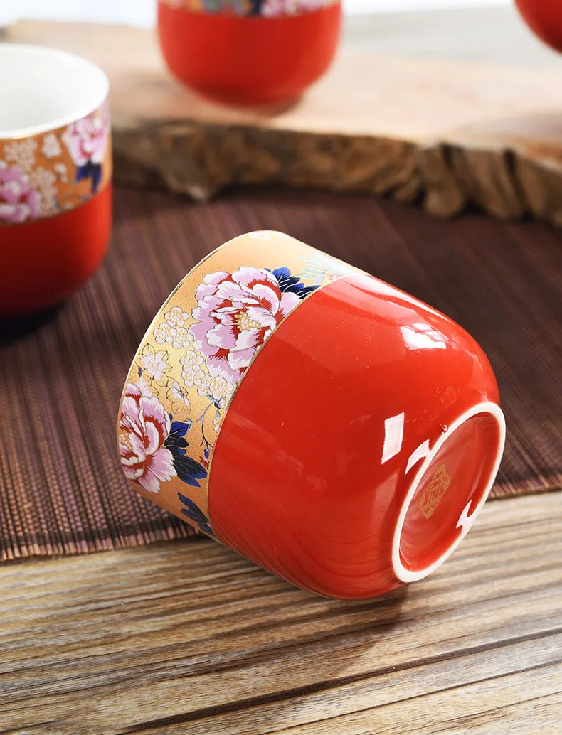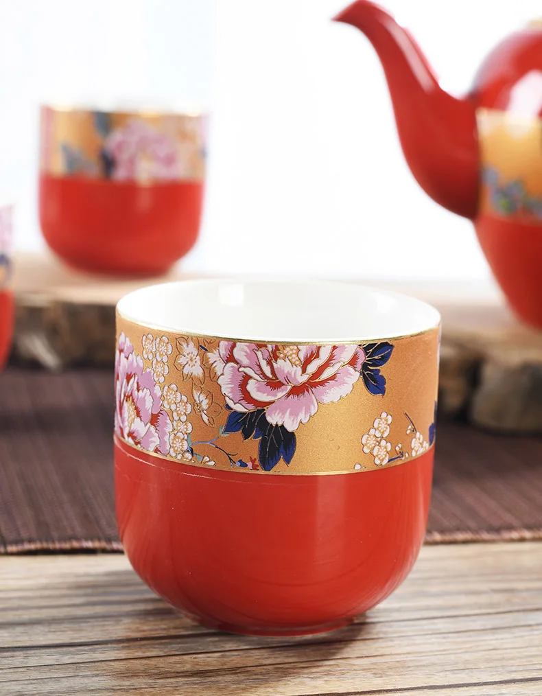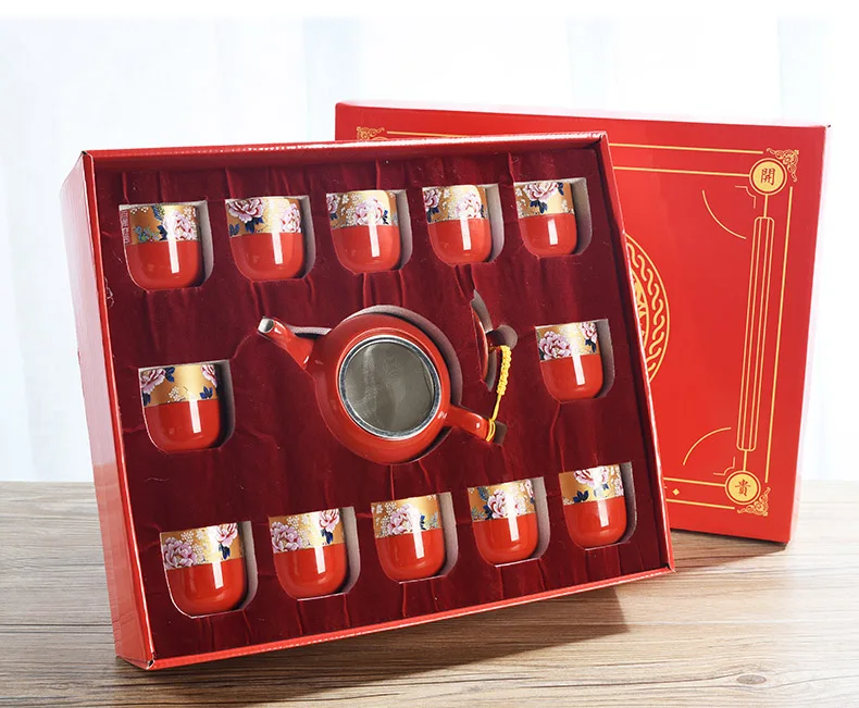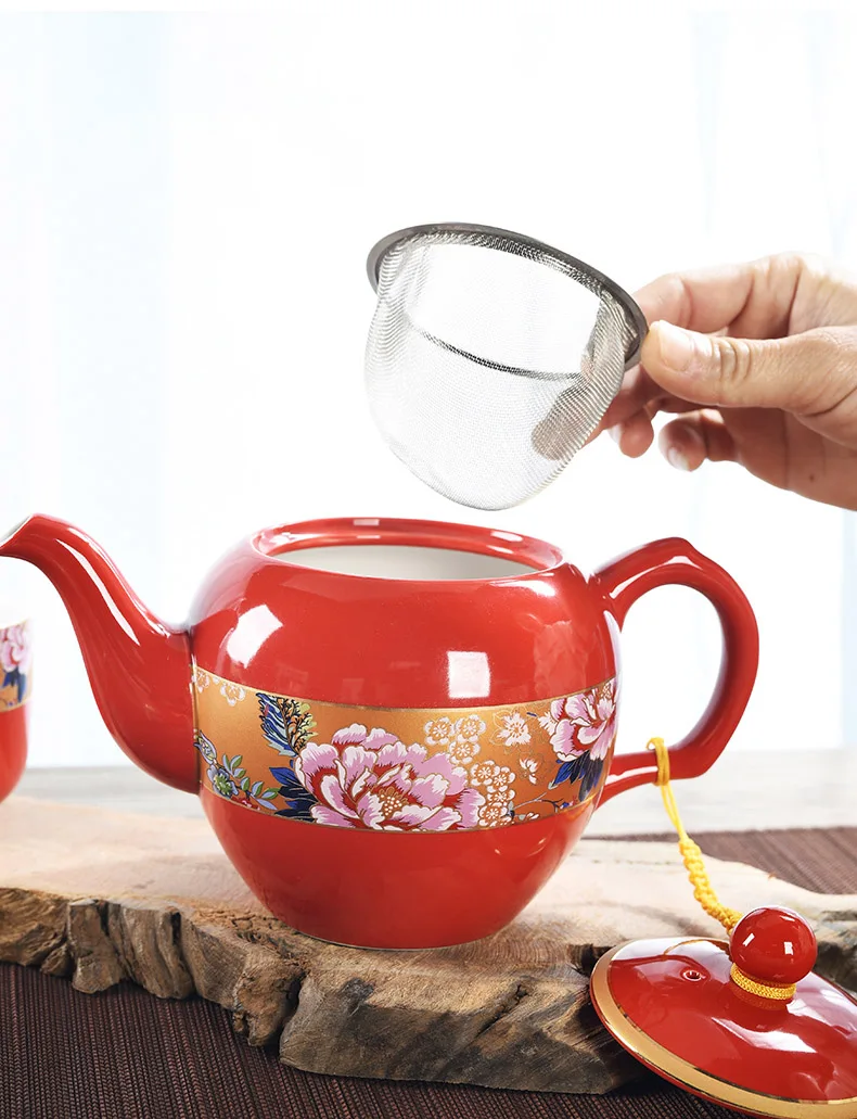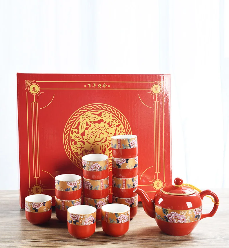 Household Ceramics Chinese Traditional Red Wedding Tea Pot Set Porcelain Kung Fu Teapot Cups Souvenir Gifts For Bride and Groom