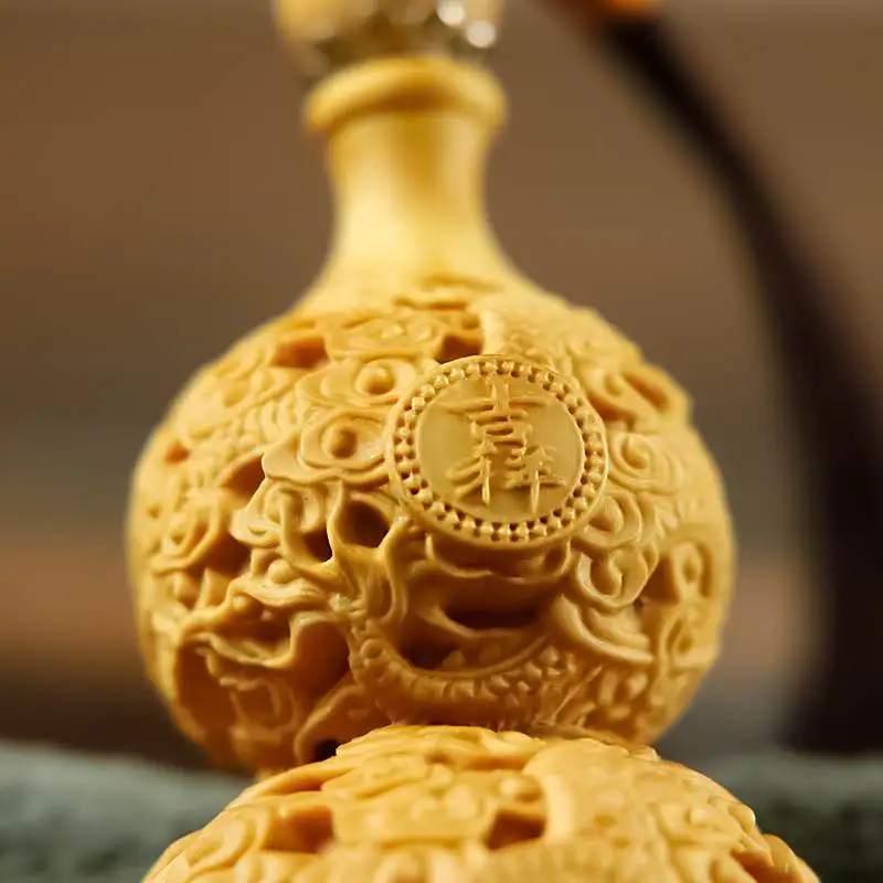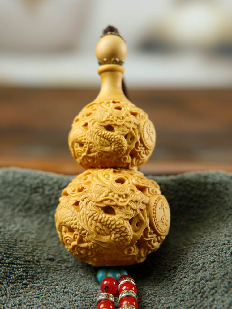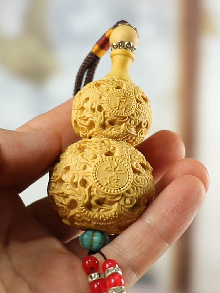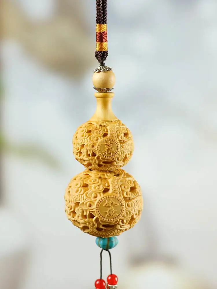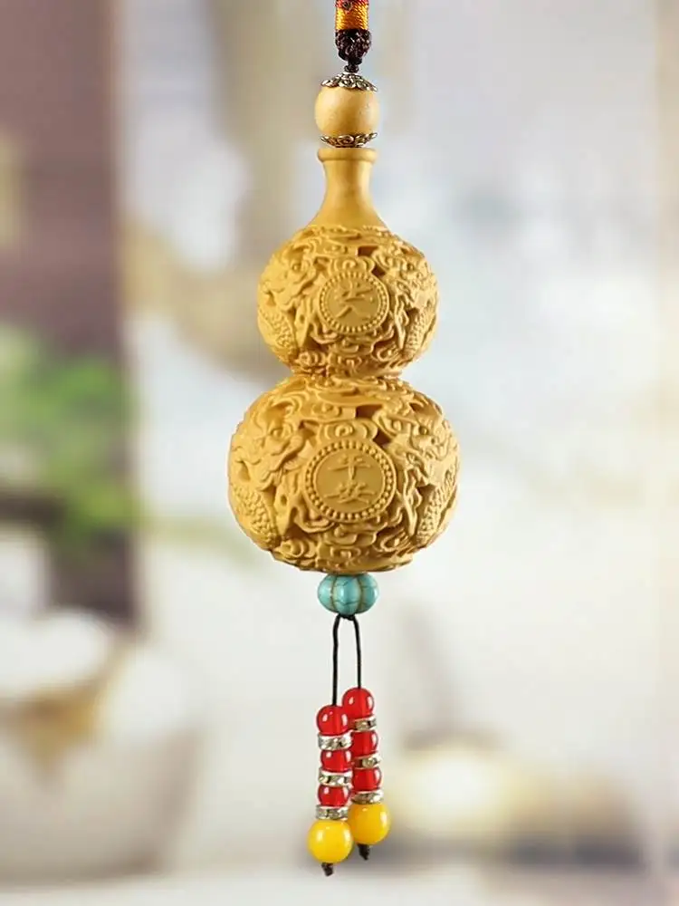 Huangyang wood carving handlebars, gourds, car pendants, small accessories, stationery, safety, fortune, natural solid wood
