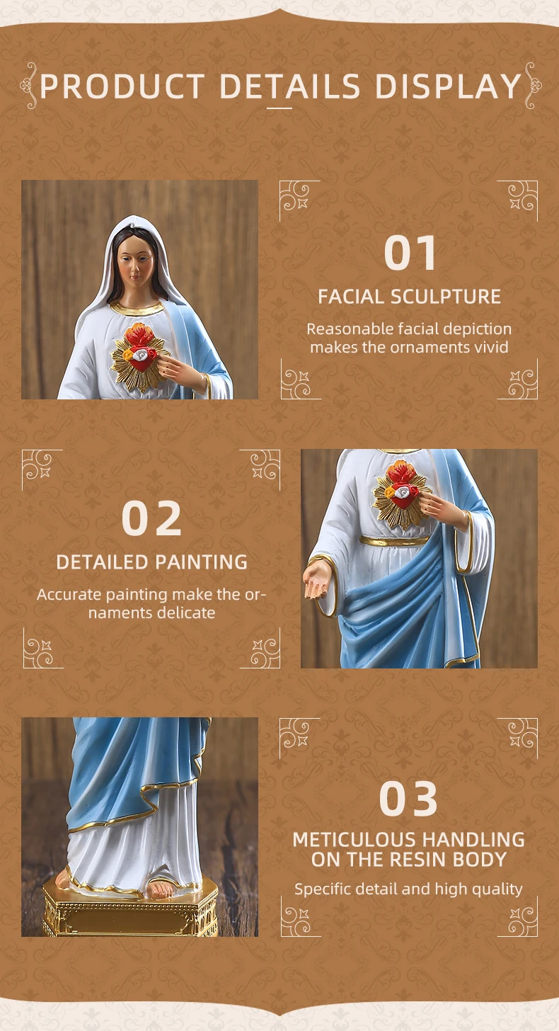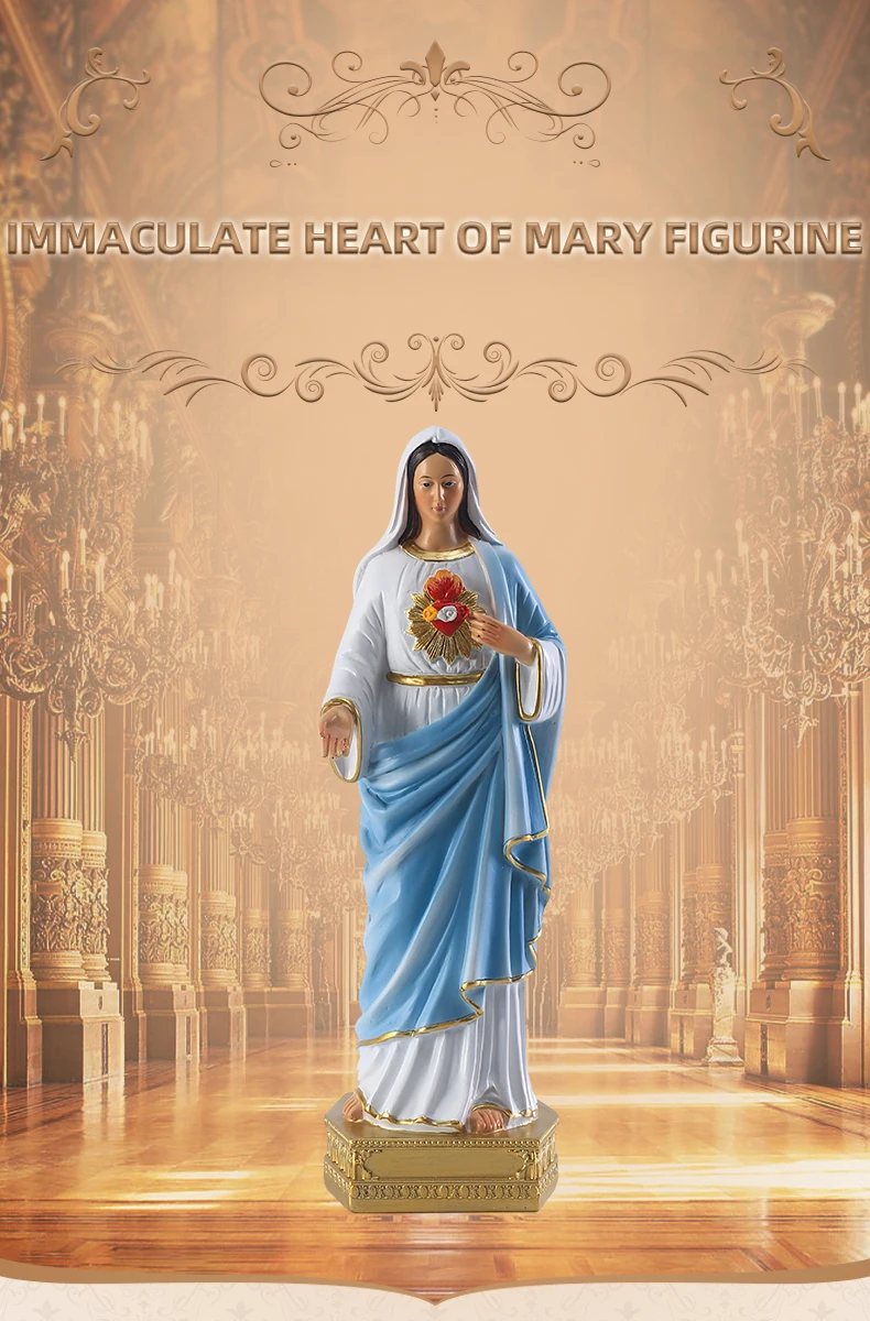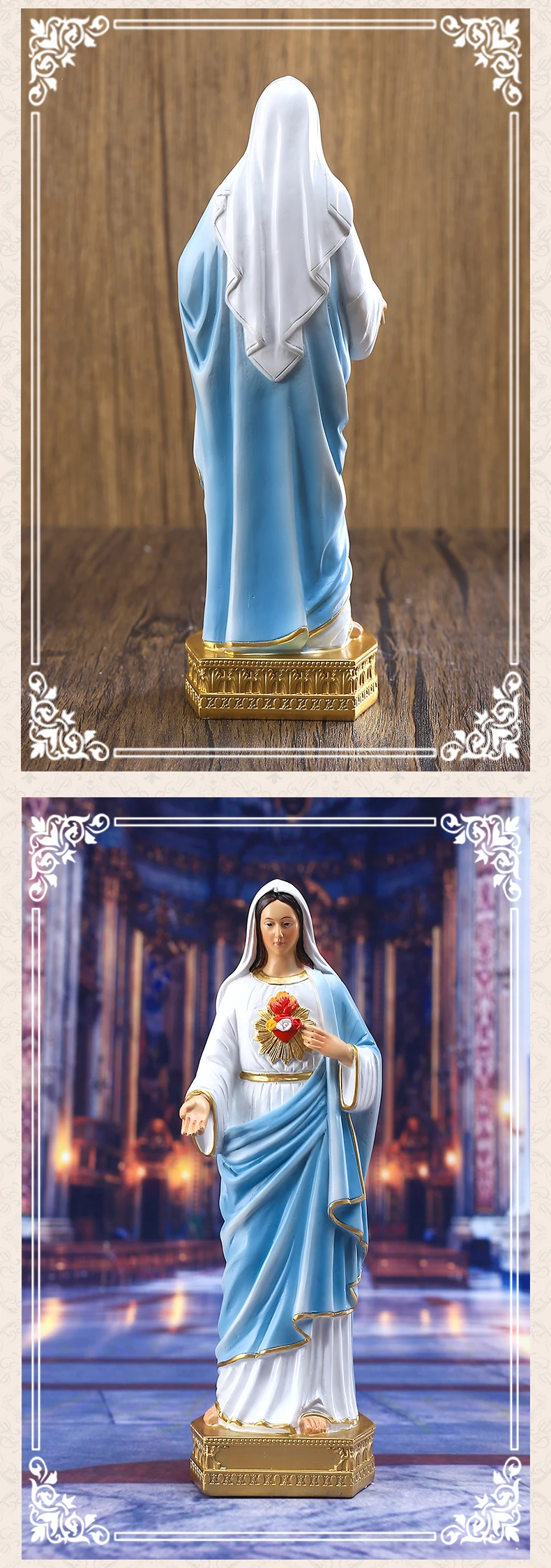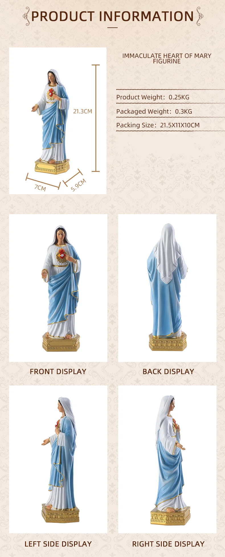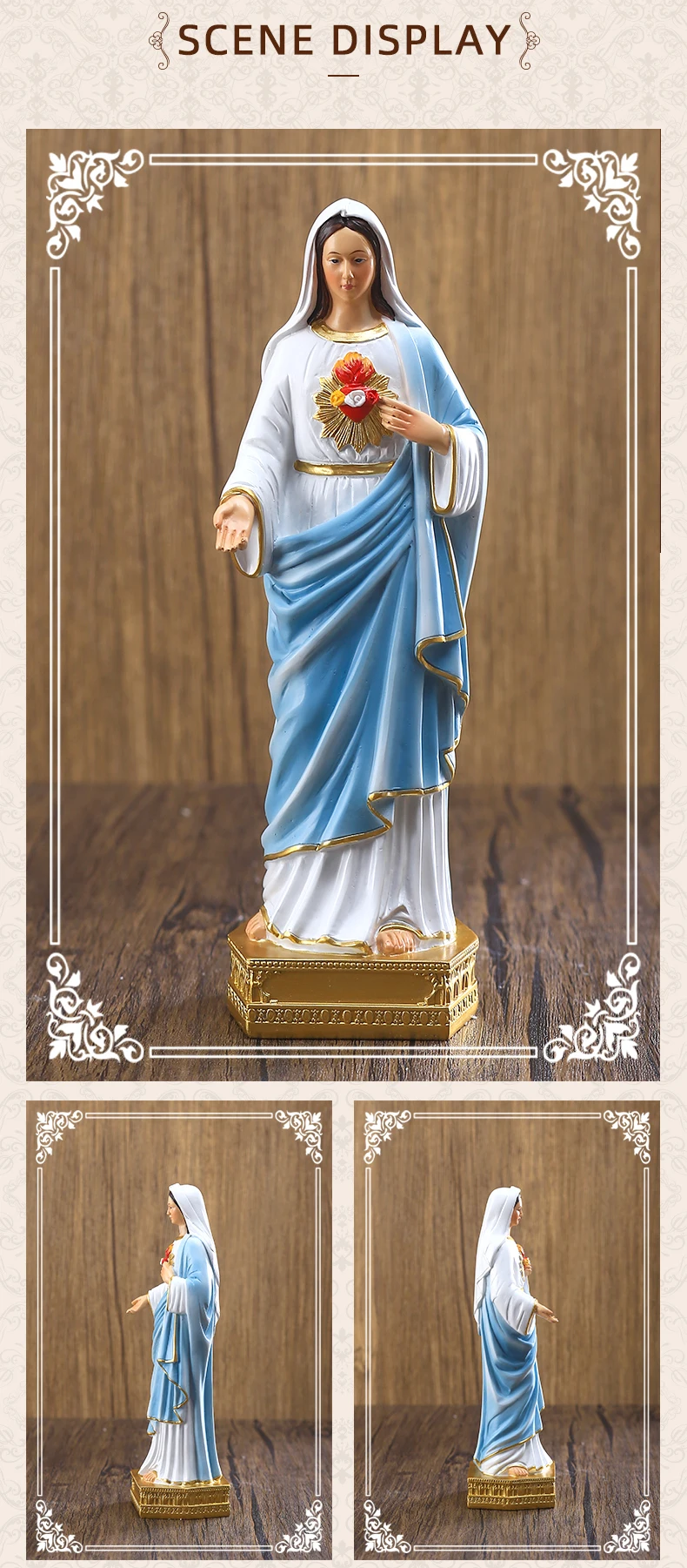 Immaculate Heart Mary Statue Resin Sculpture Decoration Base Figurine Religious Gift Holy Virgin Maria Christian Catholic Crafts