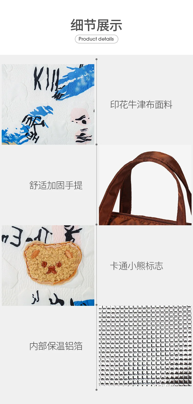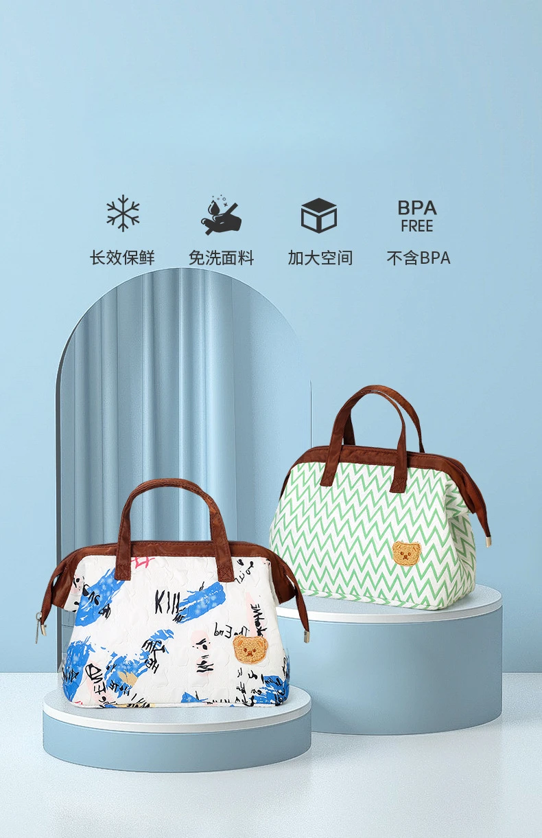 Stylish design with high quality material, tear-resistant, mild waterproof, dirt-proof, aluminum foil liner is easy to clean that is BPA FREE. It is a great gift for your friends or family members.