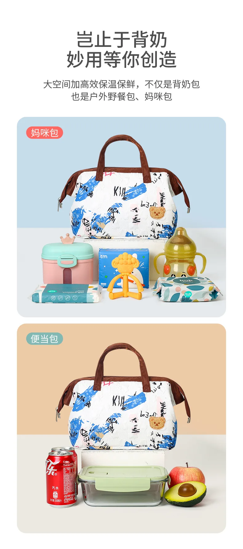 Insulated Lunch Bag for Women/Men, Reusable Lunch Cooler Box Lunch Tote Multi Functional Mother and Baby Bags