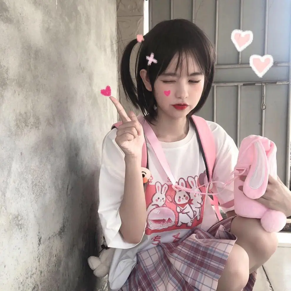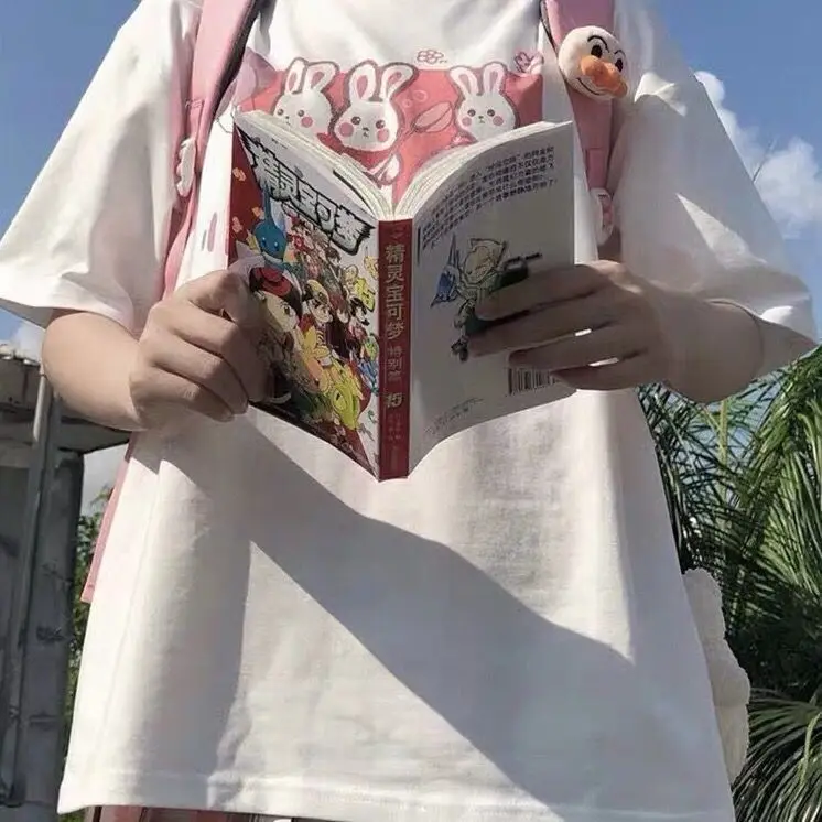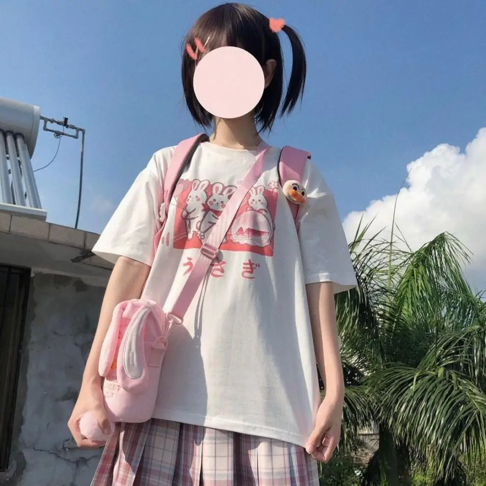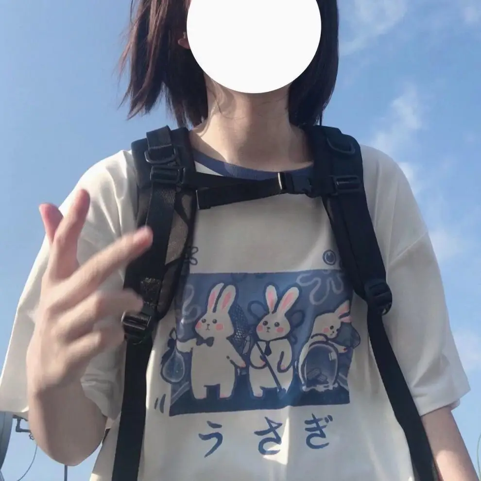 Japan Style Lovely Girly Girl T-shirt Tops Summer Women Lolita Rabbit Printed Tops Kawaii Students T-shirt