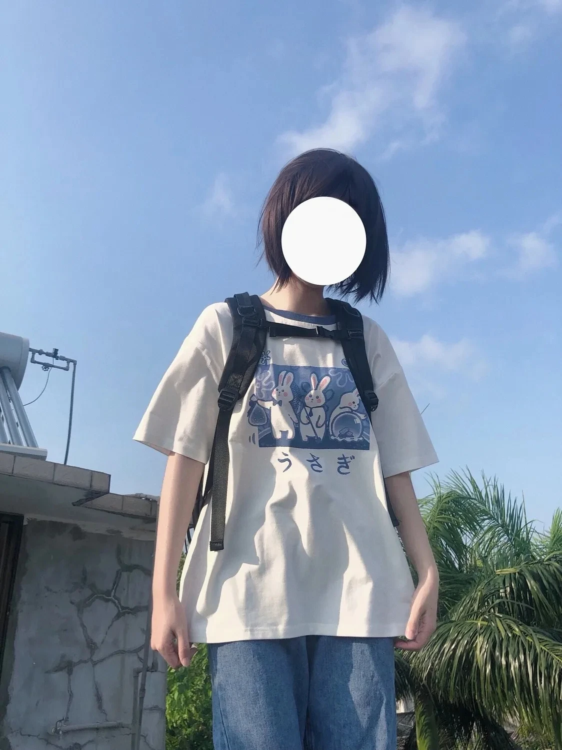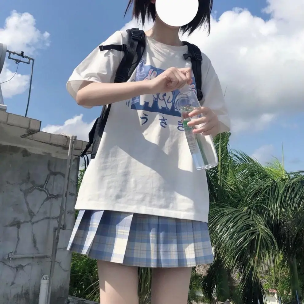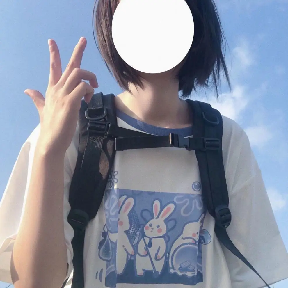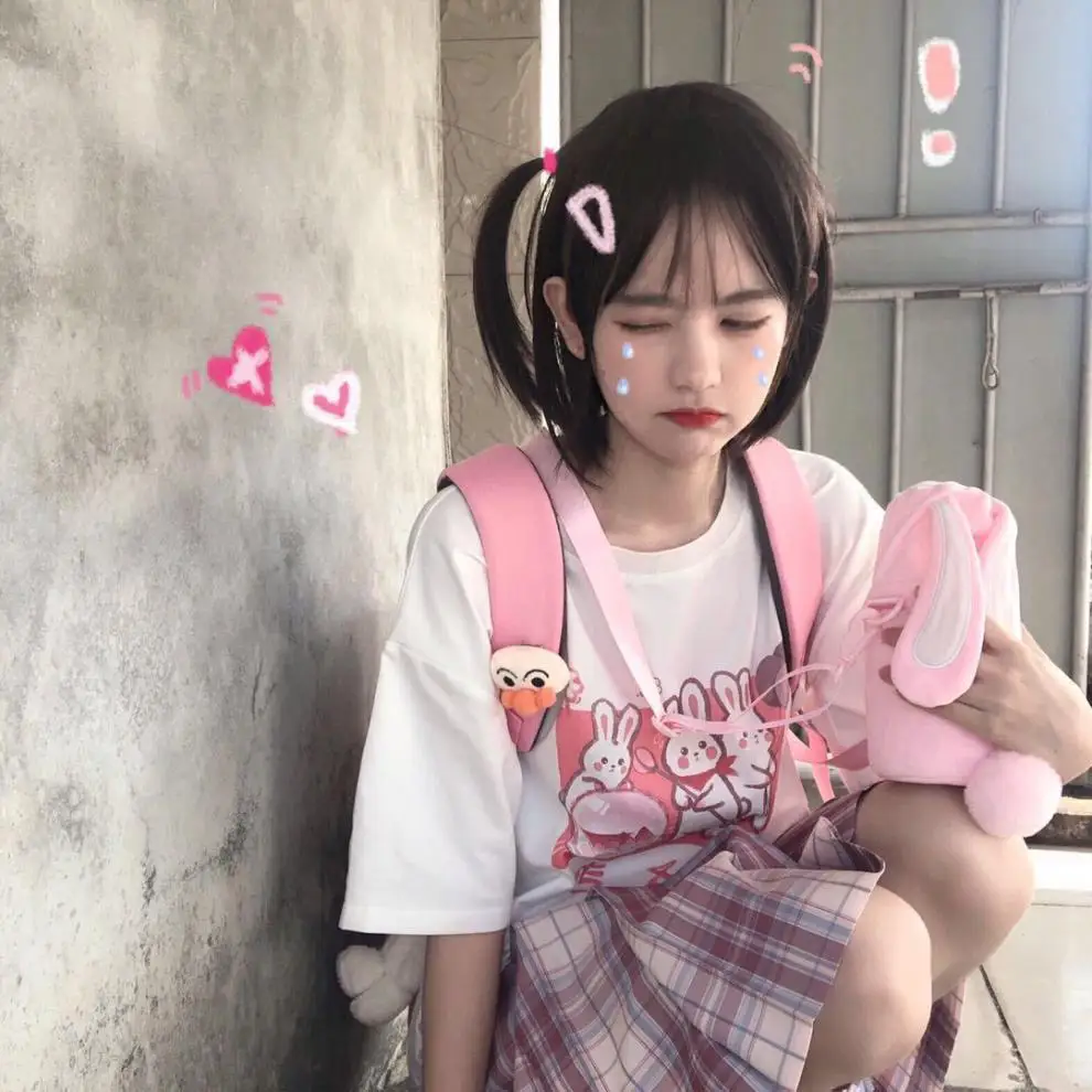 Japan Style Lovely Girly Girl T-shirt Tops Summer Women Lolita Rabbit Printed Tops Kawaii Students T-shirt