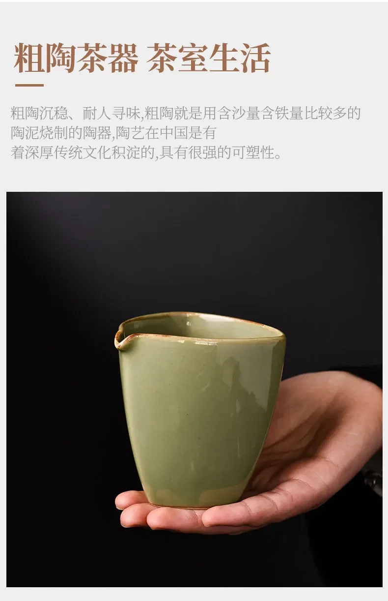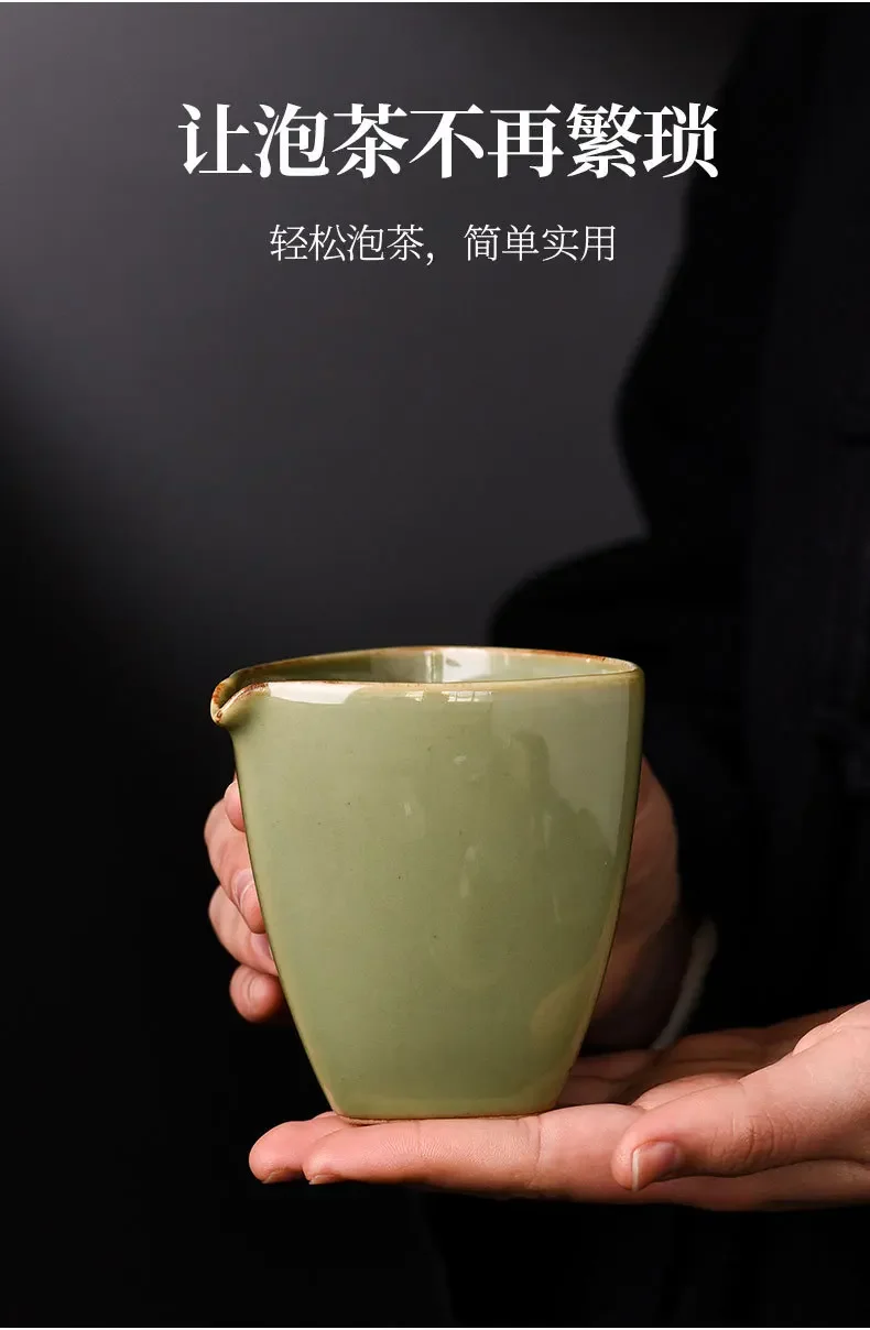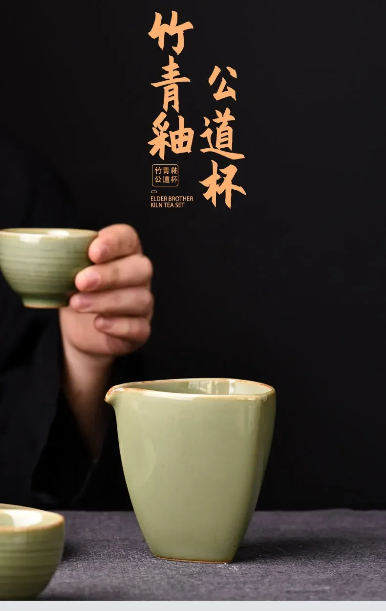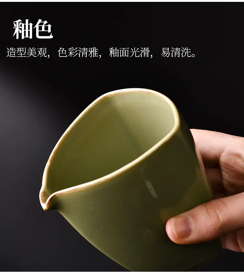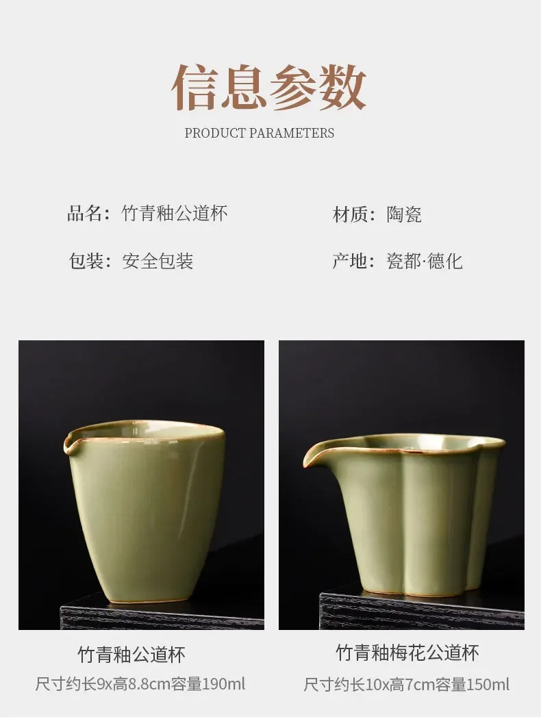 Japanese Antique Ceramic Fair Cup Green Bamboo Glazed Tea Bowl Creative Tea Dispenser High Quality Tea Set Accessories Crafts